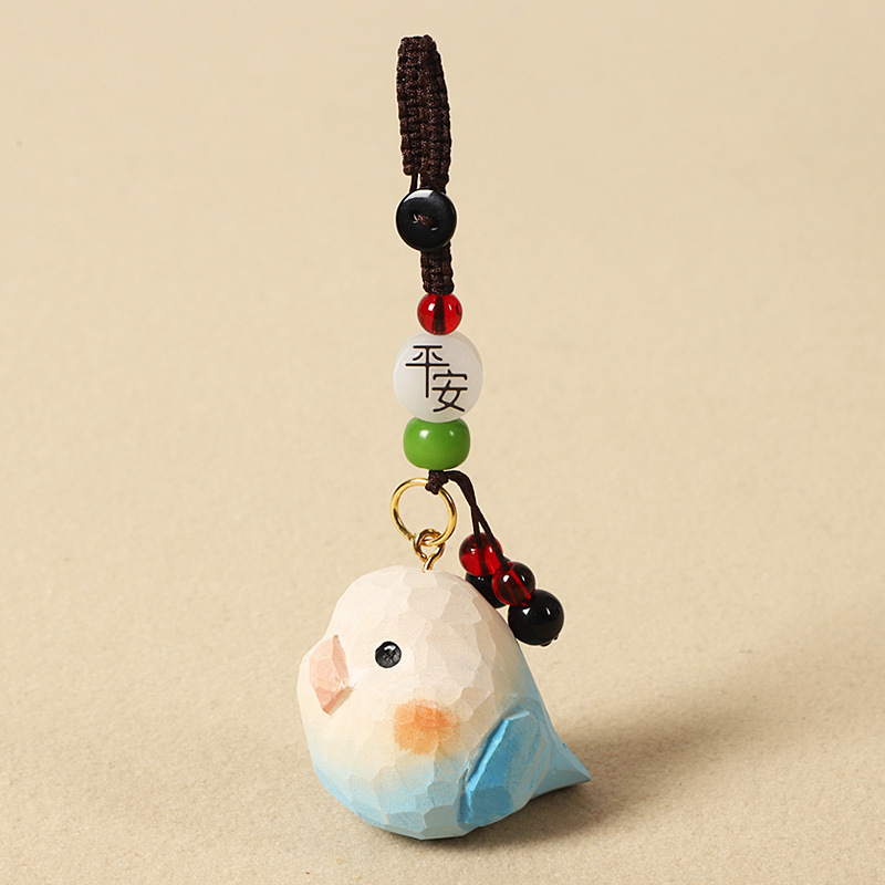 수제 나무 조각 앵무새 자동차 키 체인 펜던트 학교 가방 펜던트 친구와 교사를위한 졸업 선물 생일 선물