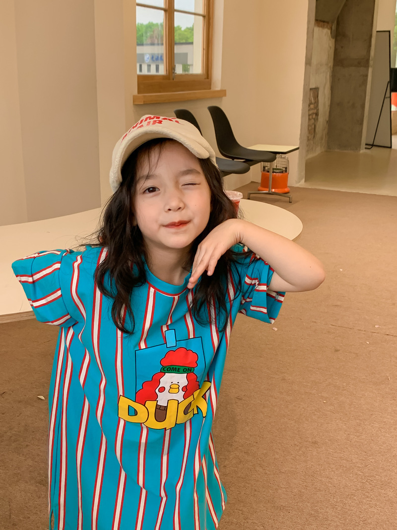 형제와 자매 의류 아동 티셔츠 2025 여름 스타일 소년과 소녀 한국어 버전 스트라이프 프린트 반팔 티셔츠 아동 캐주얼 드레스스토어 가기