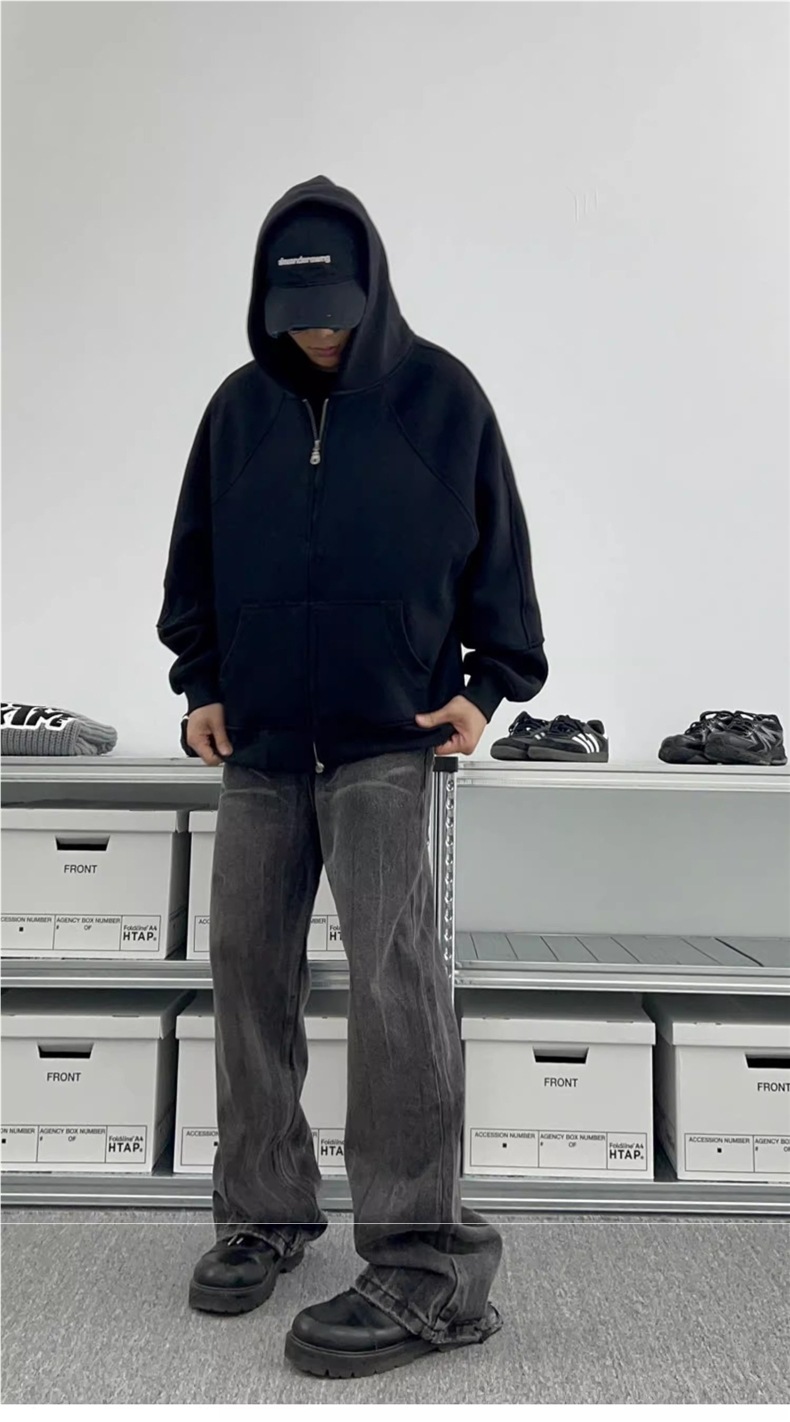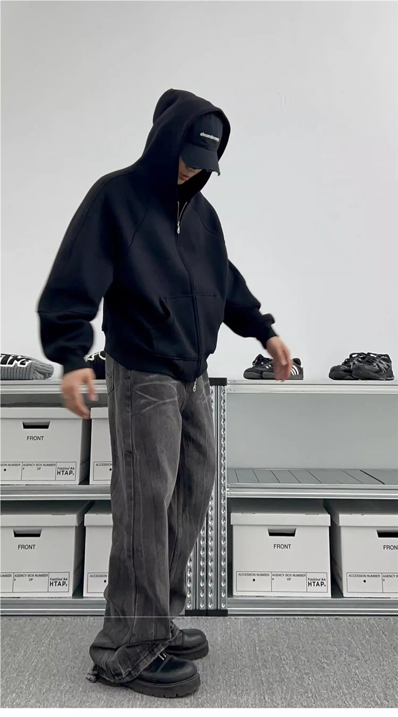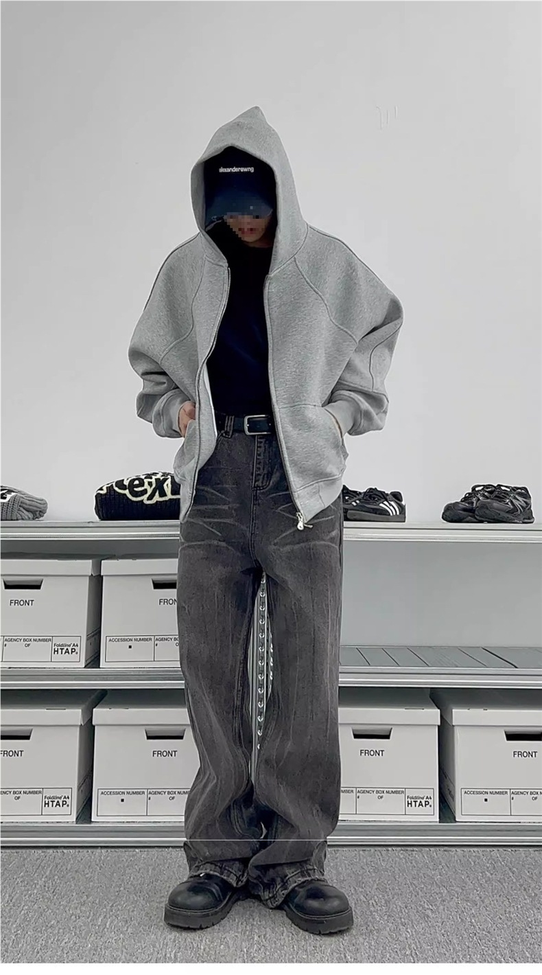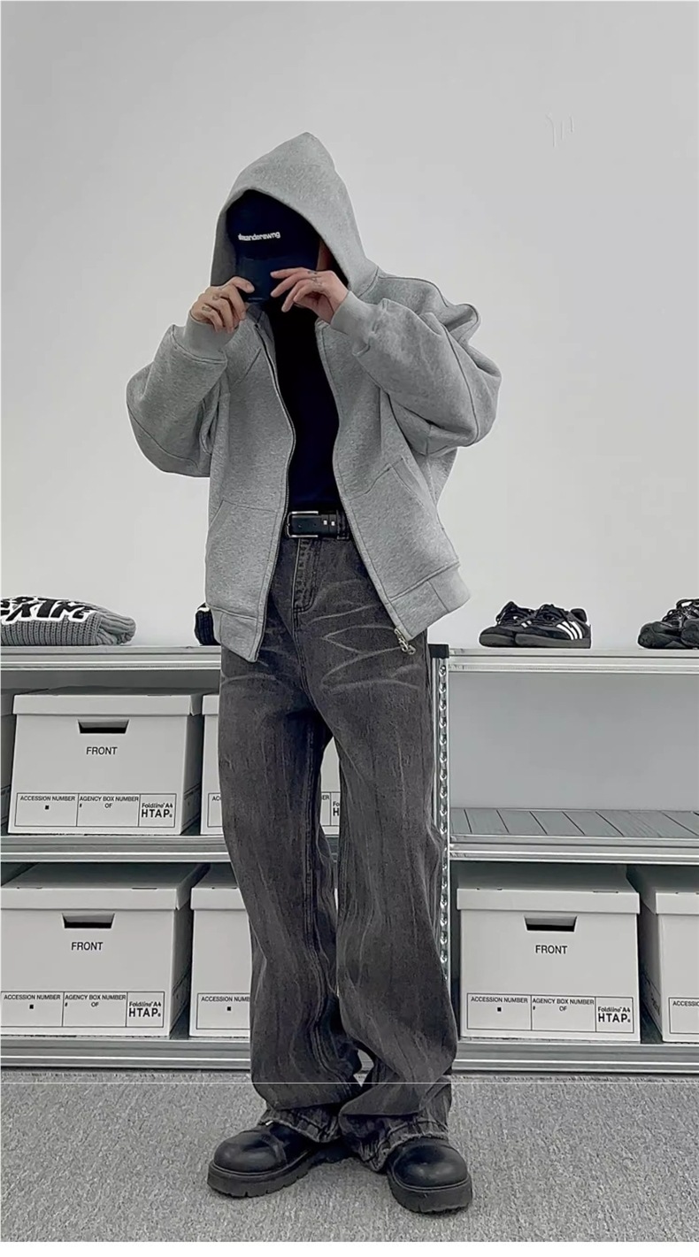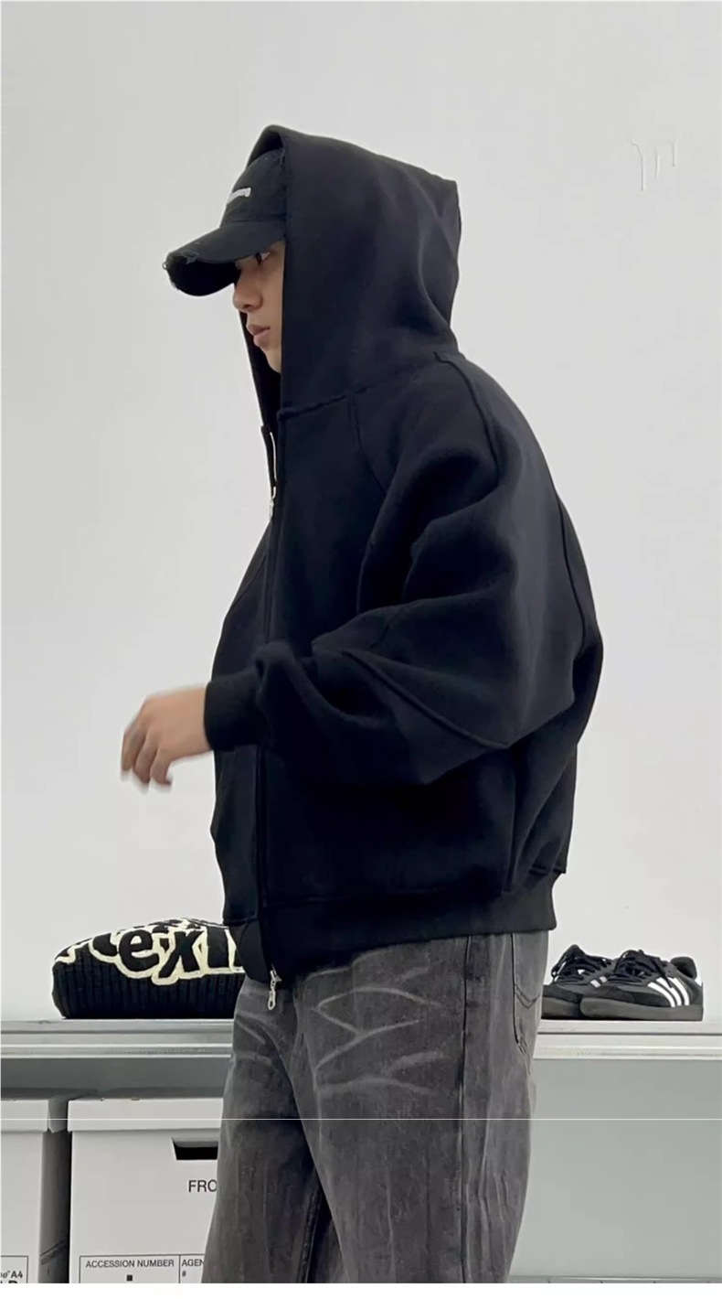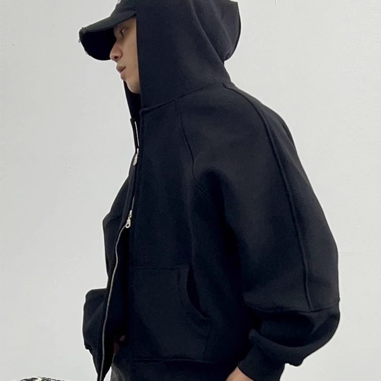 남성과 여성을 위한 크로스보더 미국 헤비급 400G 그레이 카디건 스웨트셔츠 솔리드 컬러 기본 후드 짧은 양방향 지퍼 후드티스토어 가기