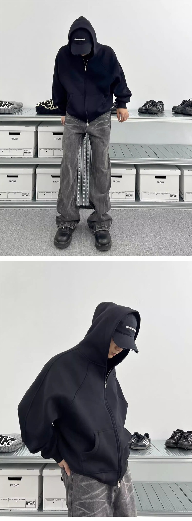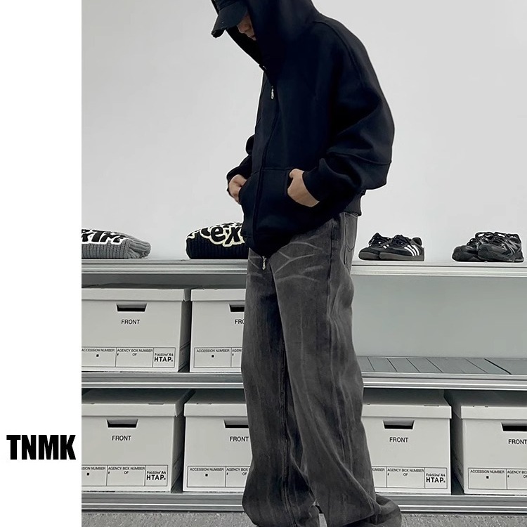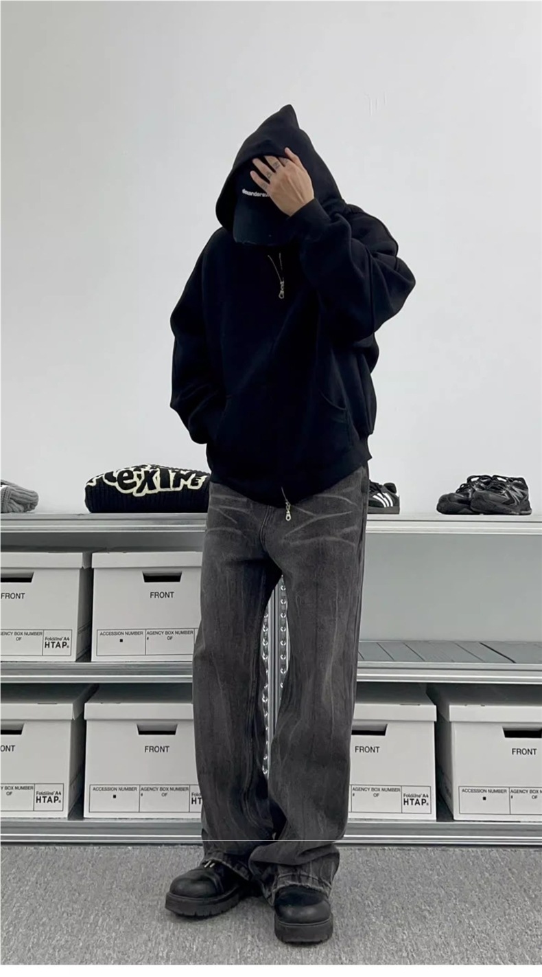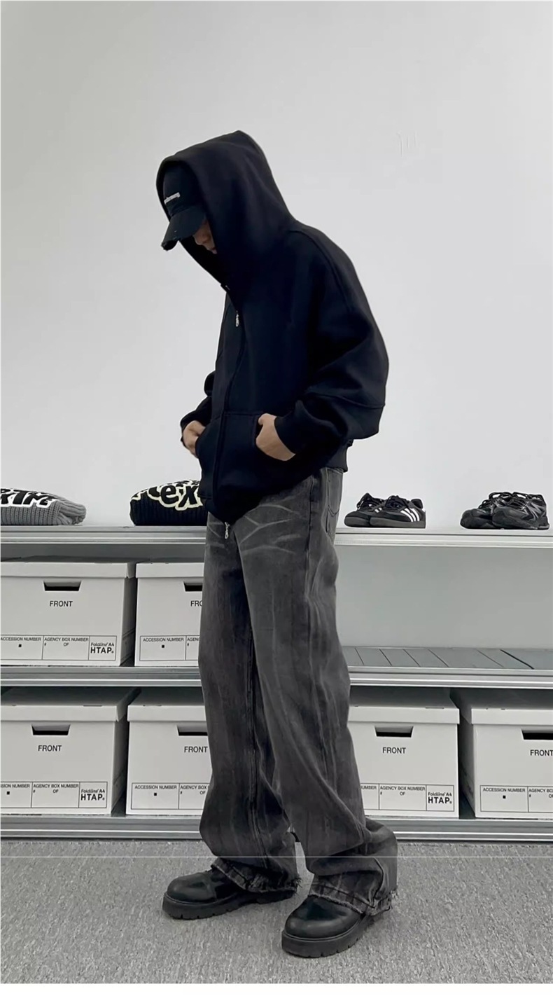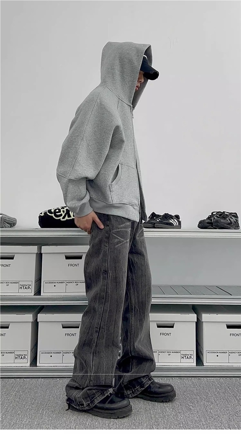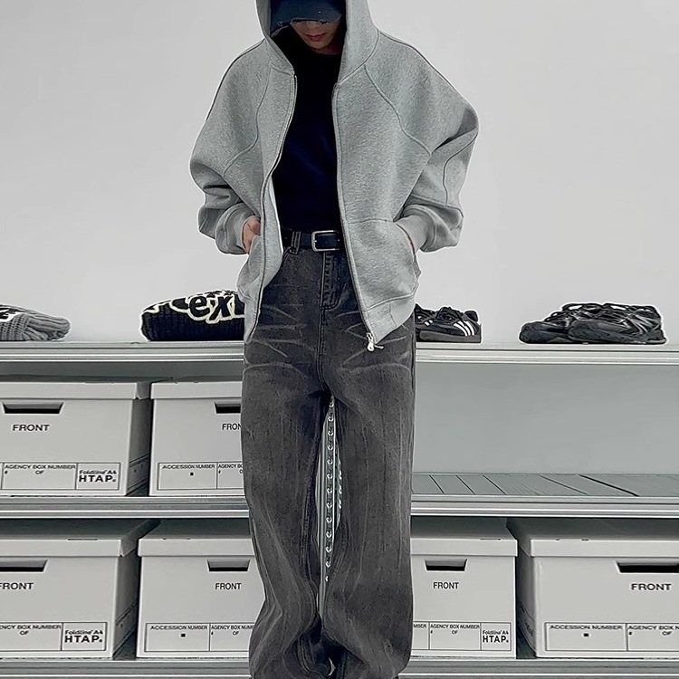 남성과 여성을 위한 크로스보더 미국 헤비급 400G 그레이 카디건 스웨트셔츠 솔리드 컬러 기본 후드 짧은 양방향 지퍼 후드티스토어 가기