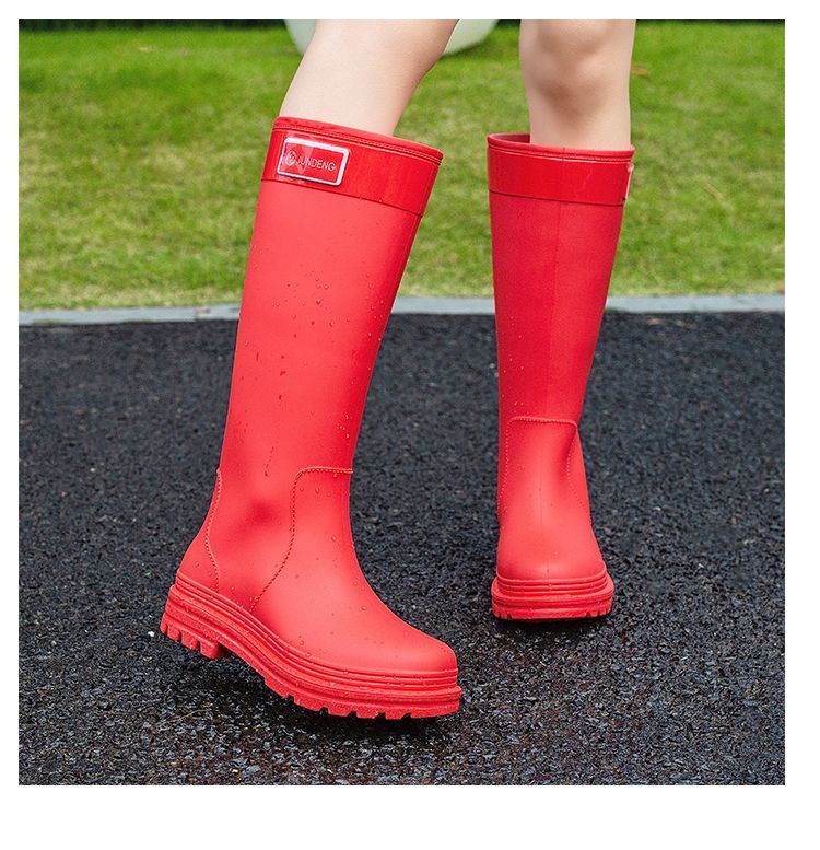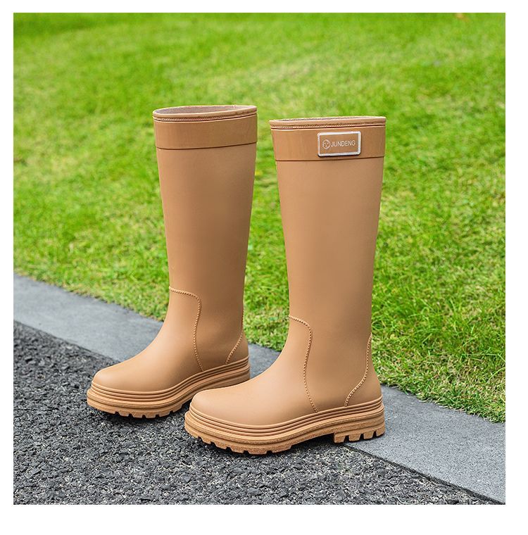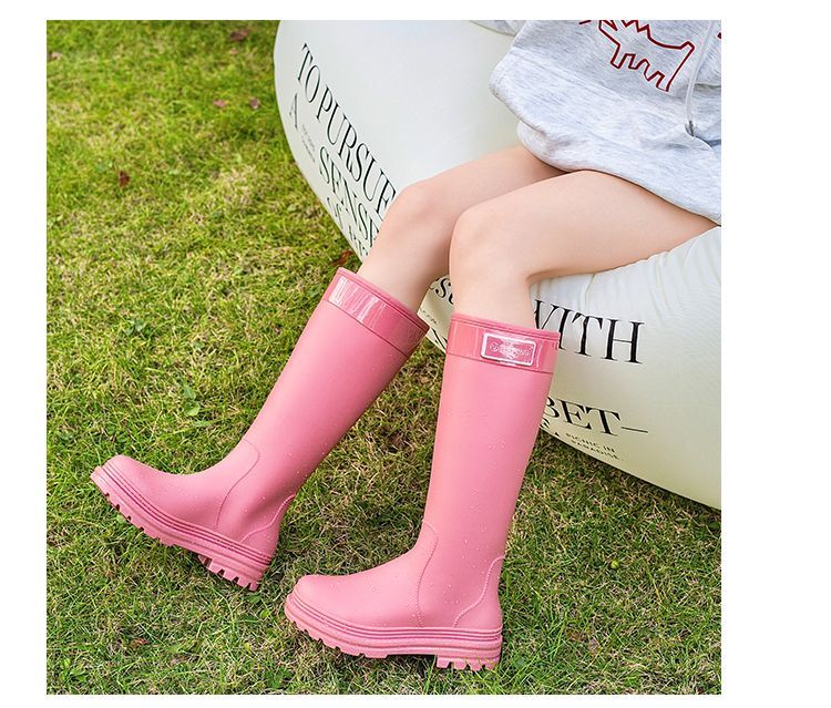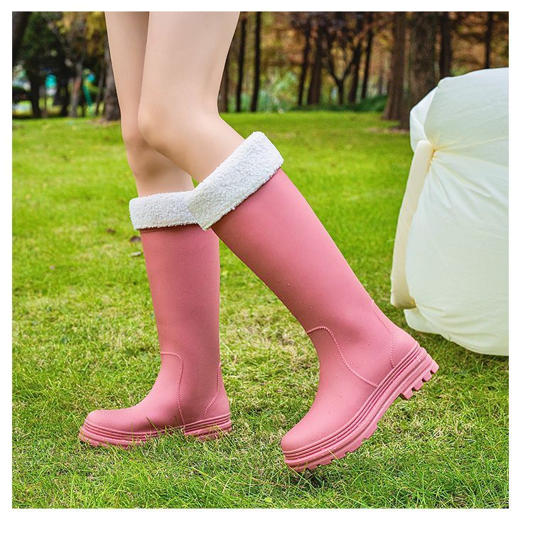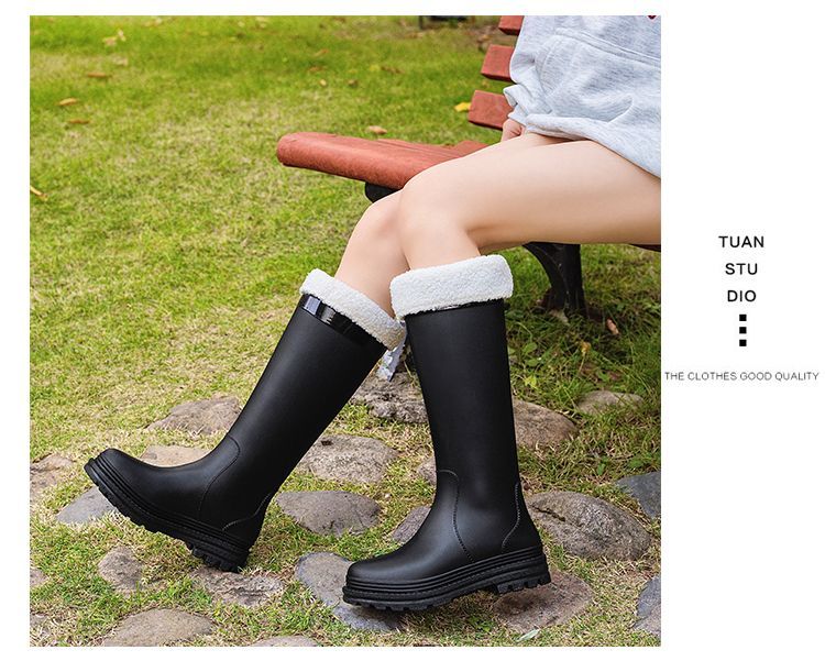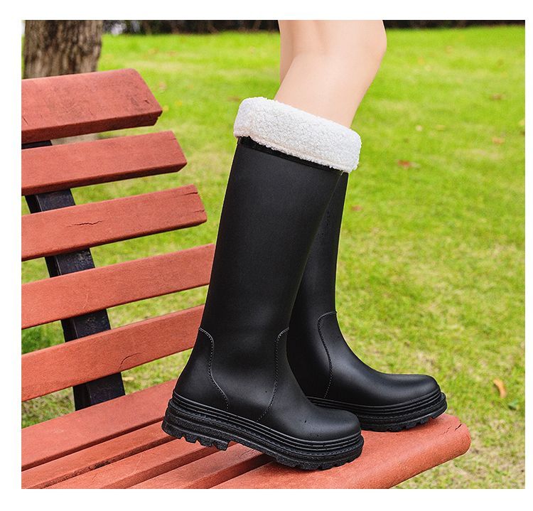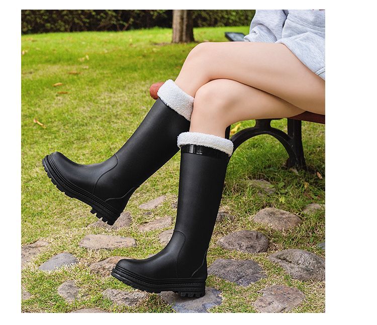 여성용 하이탑 레인부츠 성인 38cm 무릎 높이 장화 방수 미끄럼 방지 패션 아우터 고무 신발 워터 슈즈 플러스 벨벳스토어 가기