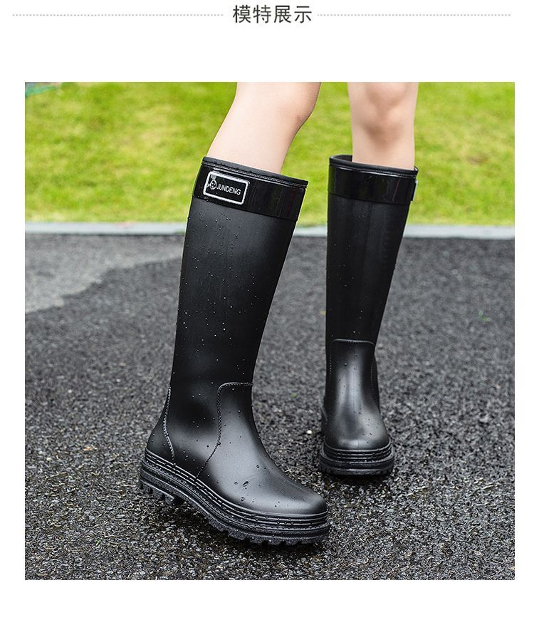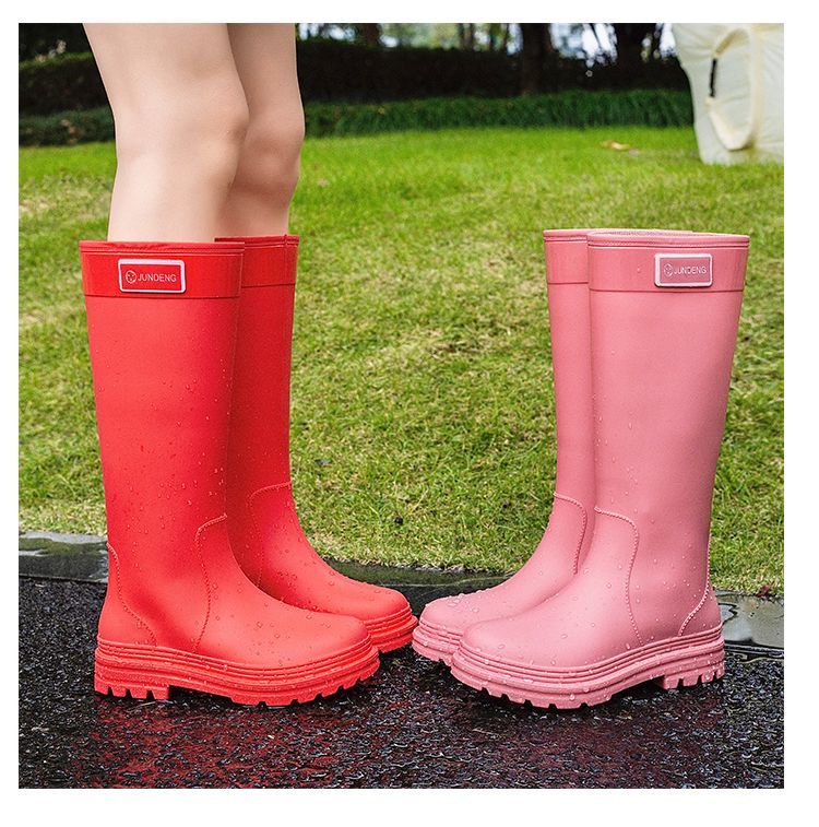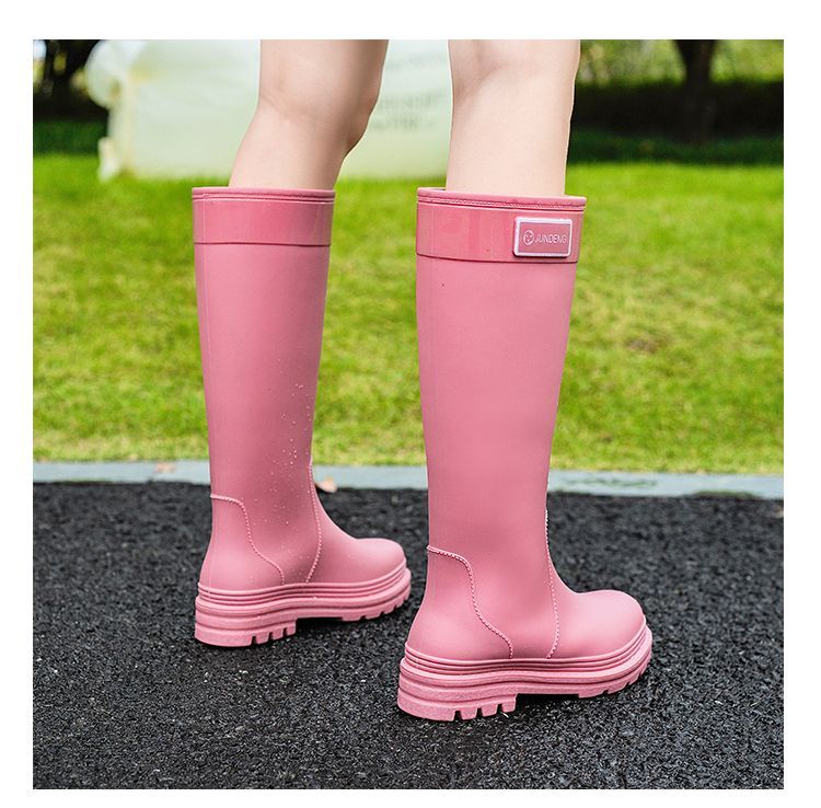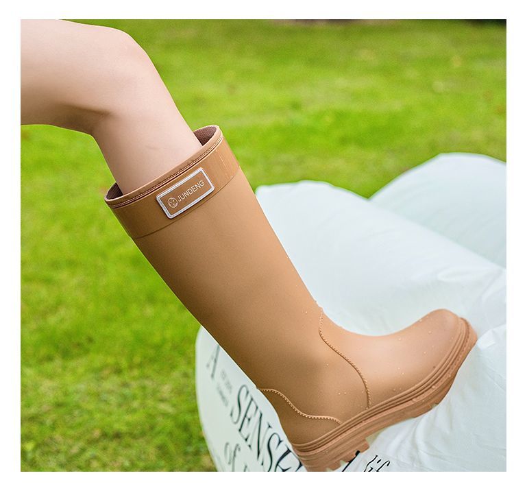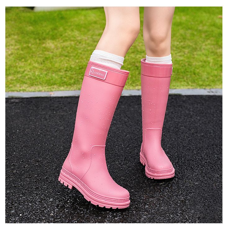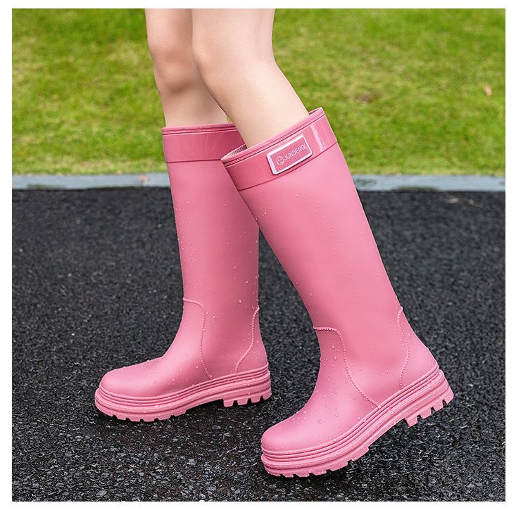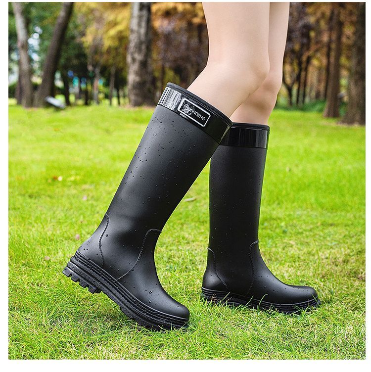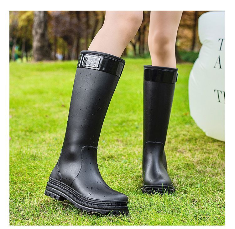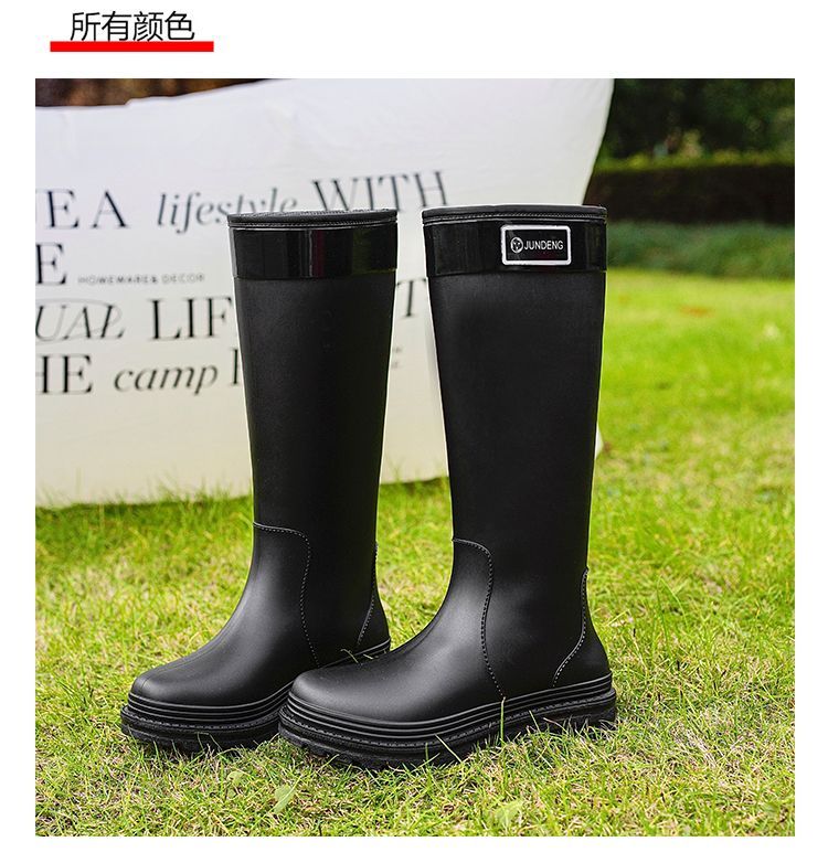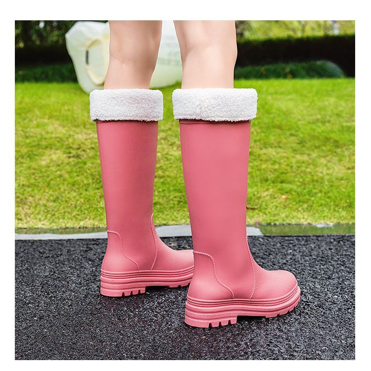 여성용 하이탑 레인부츠 성인 38cm 무릎 높이 장화 방수 미끄럼 방지 패션 아우터 고무 신발 워터 슈즈 플러스 벨벳
