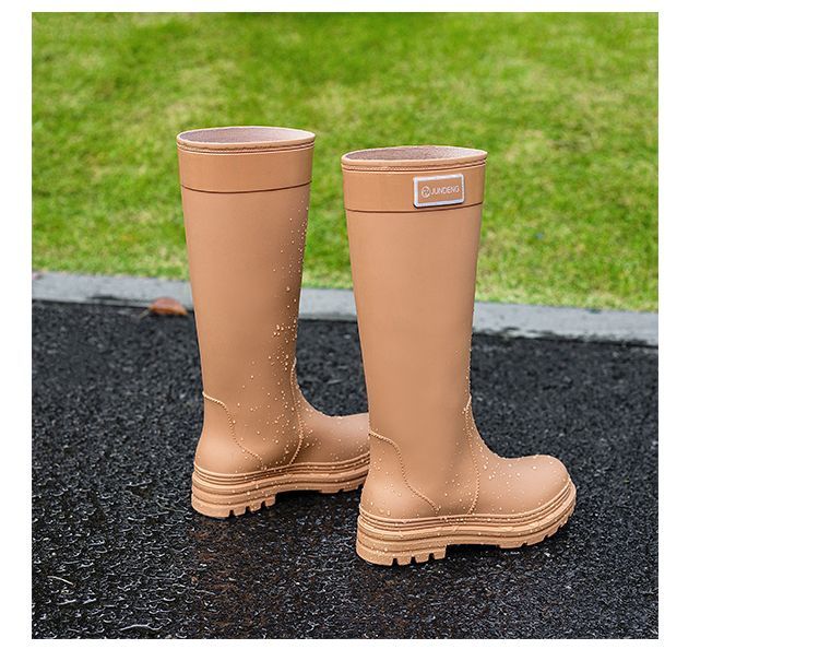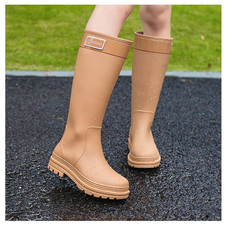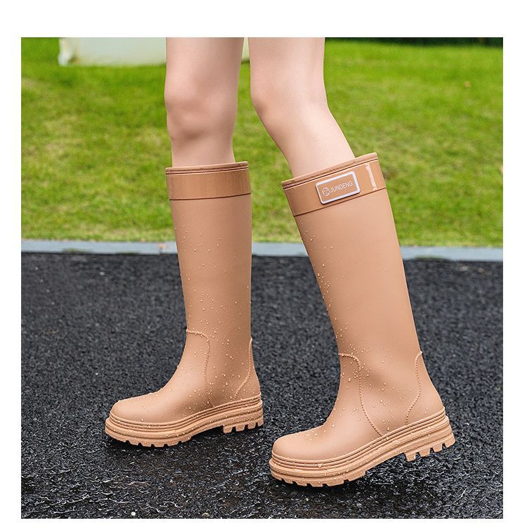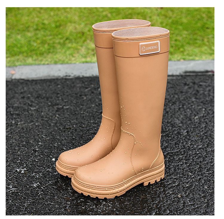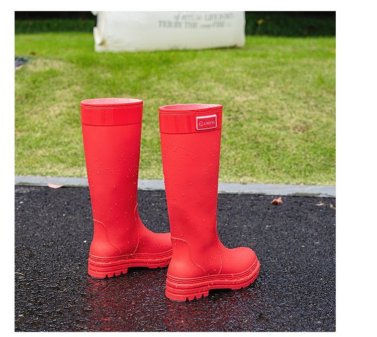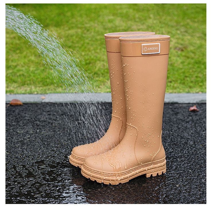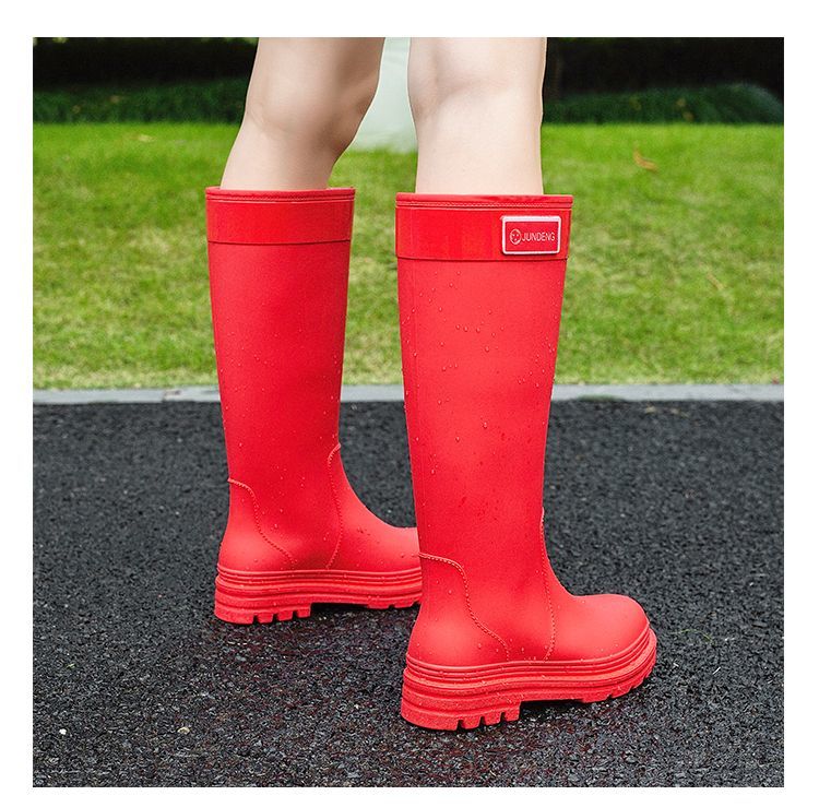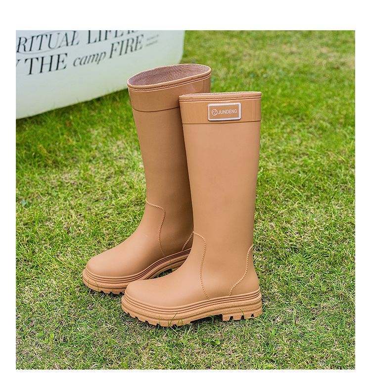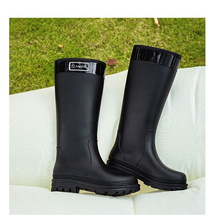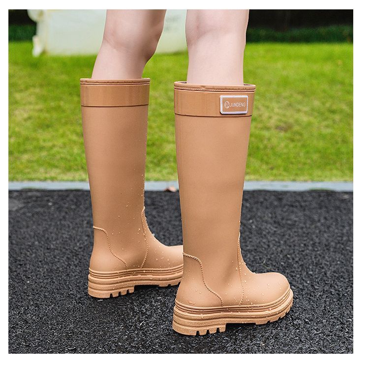 여성용 하이탑 레인부츠 성인 38cm 무릎 높이 장화 방수 미끄럼 방지 패션 아우터 고무 신발 워터 슈즈 플러스 벨벳