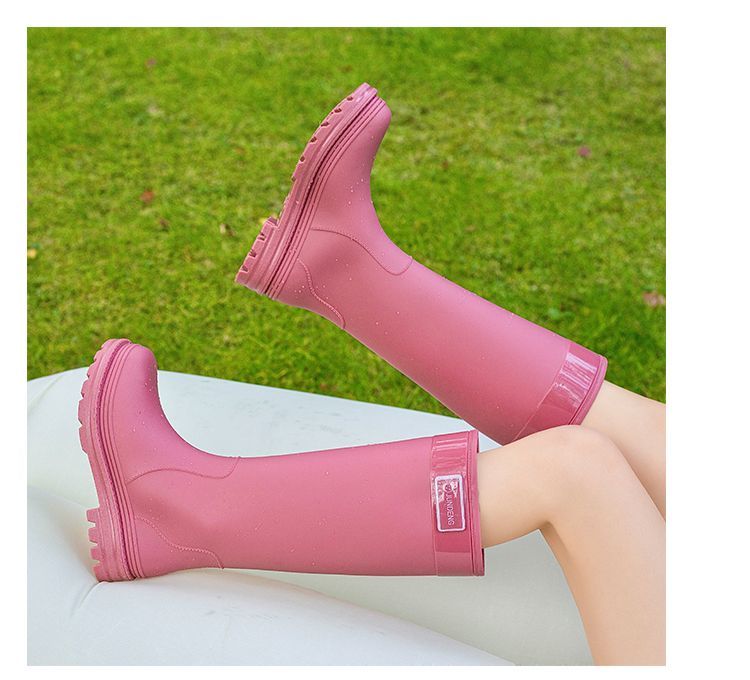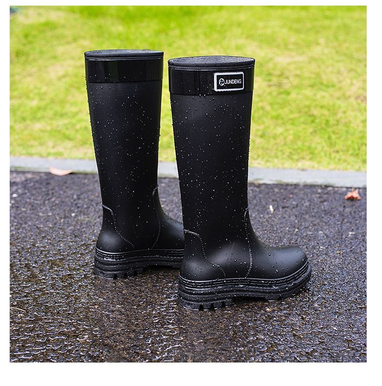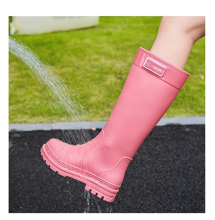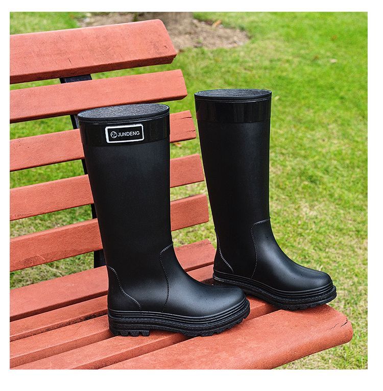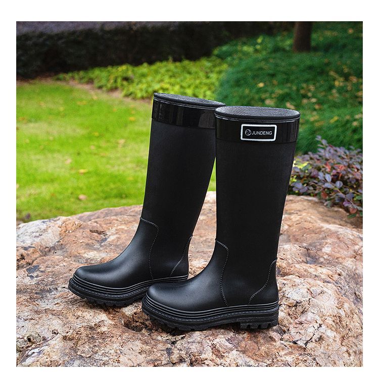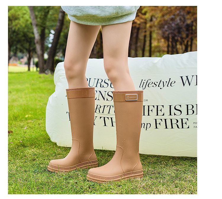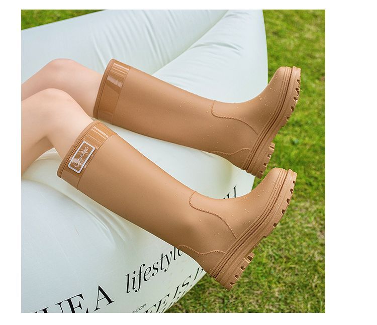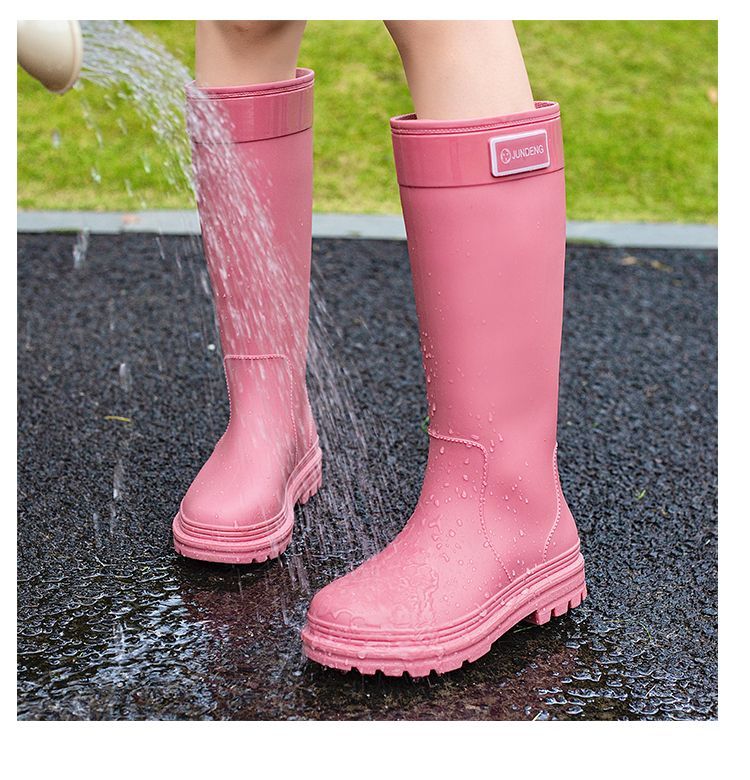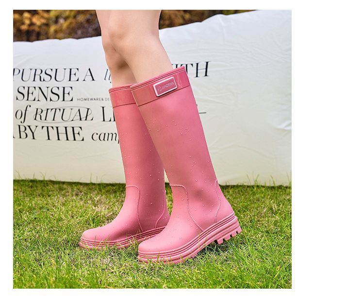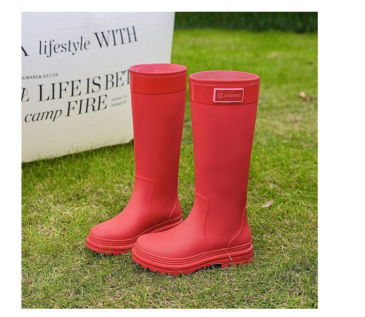 여성용 하이탑 레인부츠 성인 38cm 무릎 높이 장화 방수 미끄럼 방지 패션 아우터 고무 신발 워터 슈즈 플러스 벨벳