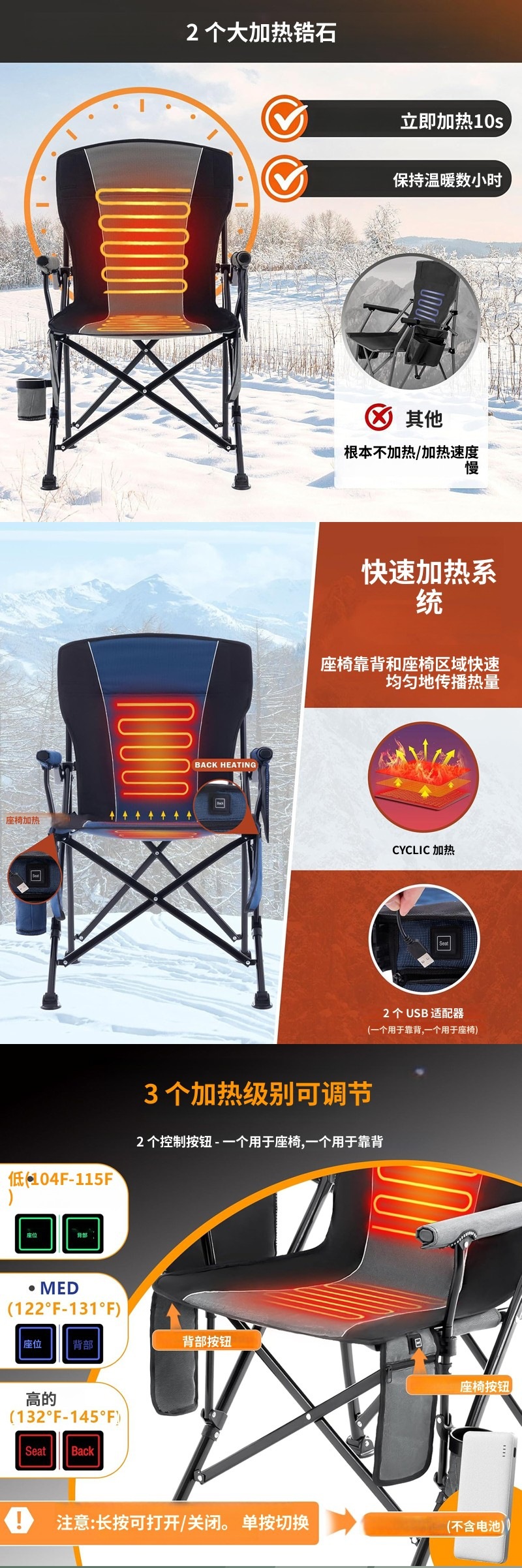 가열식 야외 접이식 의자, 휴대용 해변 의자, 안락 의자, 낚시 의자, 캠핑 바베큐 레저 홈 스케치 의자