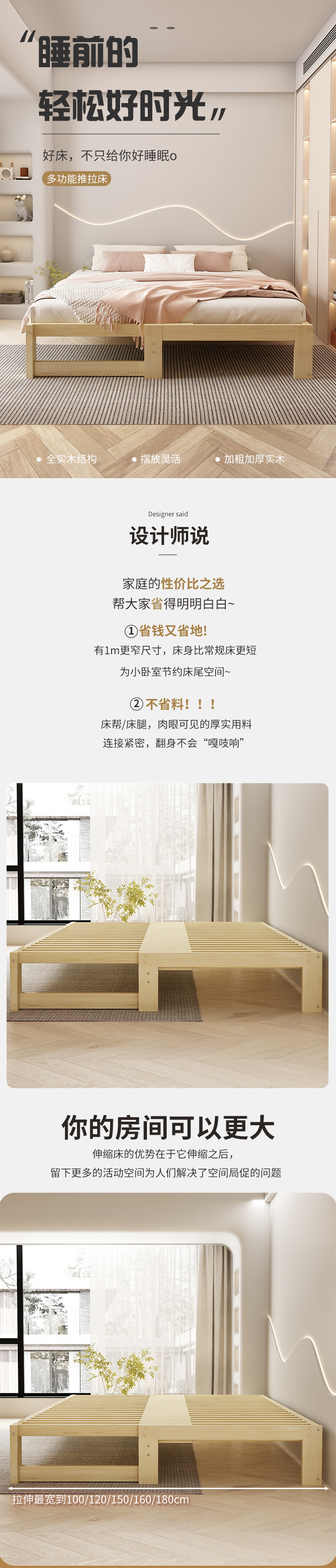 단단한 나무 접이식 소파 침대, 다기능 접이식 침대, 소형 가정용 당김 침대, 푸시풀 올인원, 이중 목적, 간단한 텔레스코픽스토어 가기