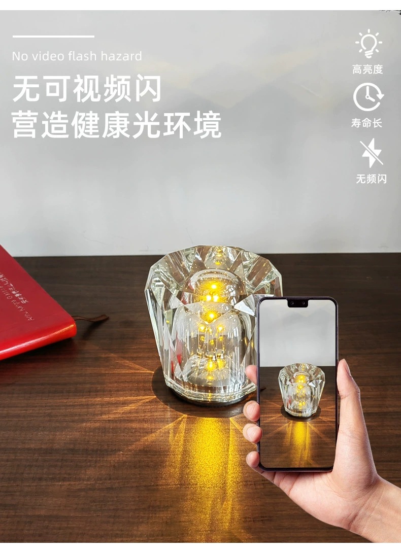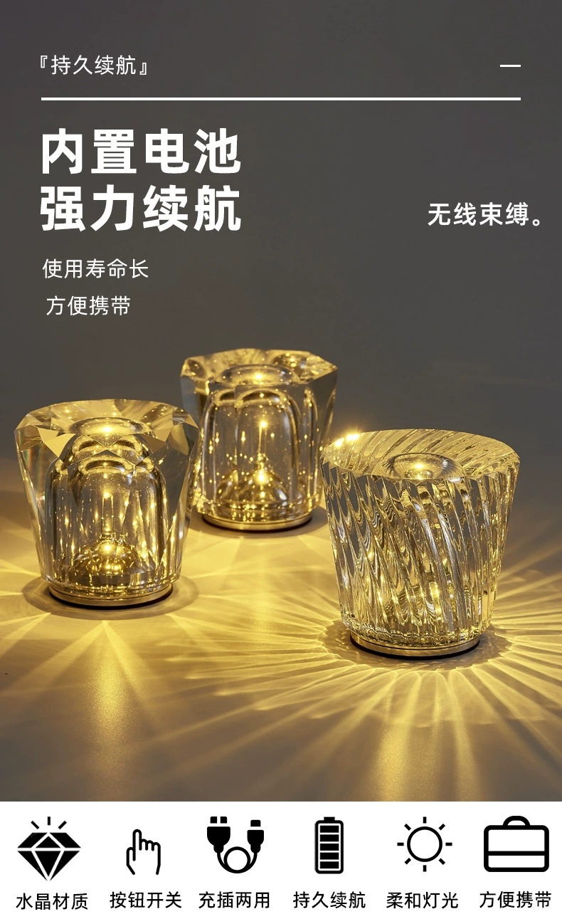 크리스탈 다이아몬드 휴대용 무선 야간 조명 침실 캔들 램프 바 분위기 테이블 램프 충전식 야외 분위기 조명스토어 가기