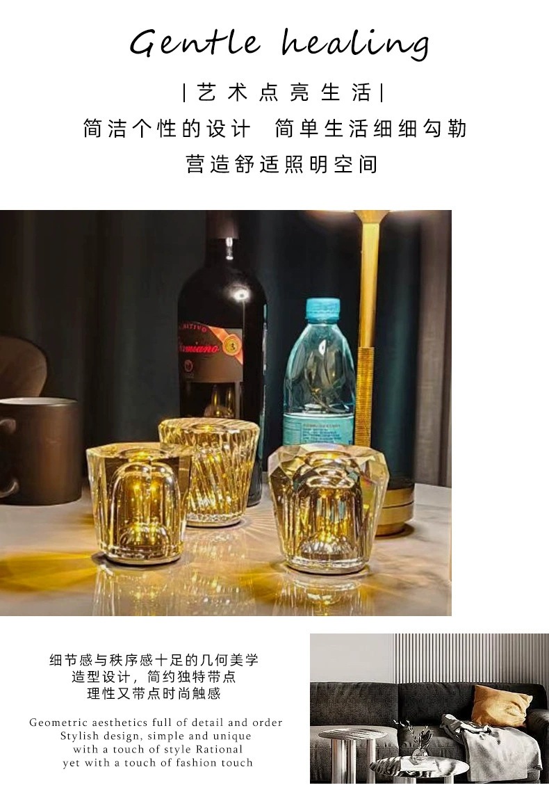 크리스탈 다이아몬드 휴대용 무선 야간 조명 침실 캔들 램프 바 분위기 테이블 램프 충전식 야외 분위기 조명