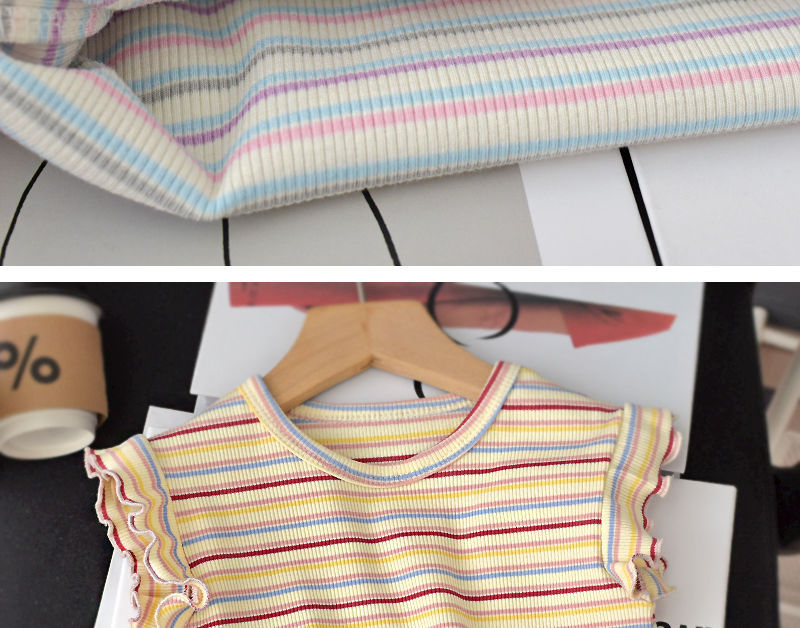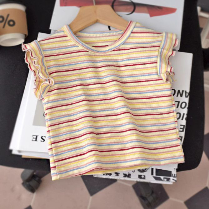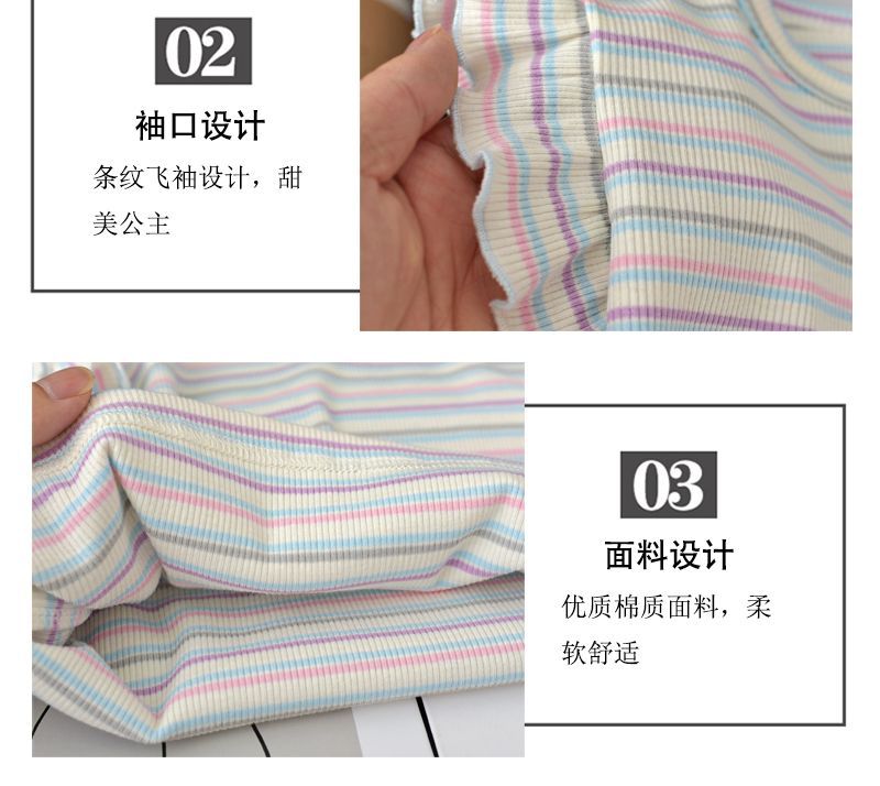 2025 여자 반팔 티셔츠 여름 얼음 실크 얇은 스타일 베이비 탑 한국 스타일 스트라이프 라운드 넥 바닥 셔츠 유행