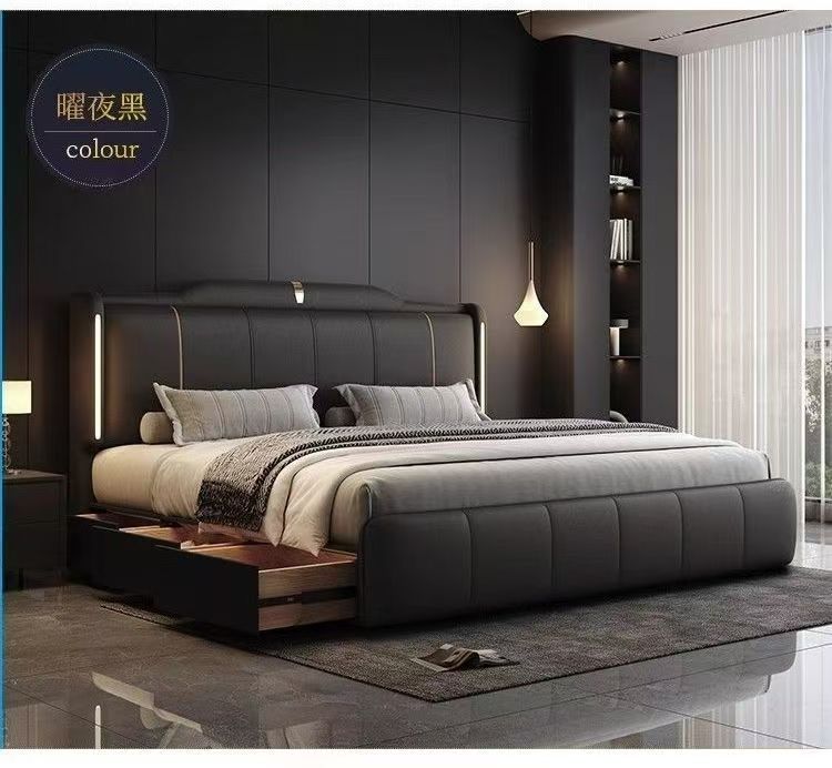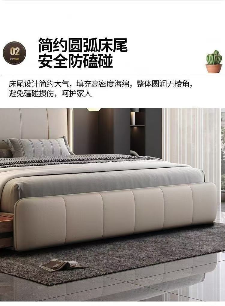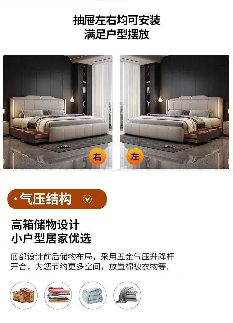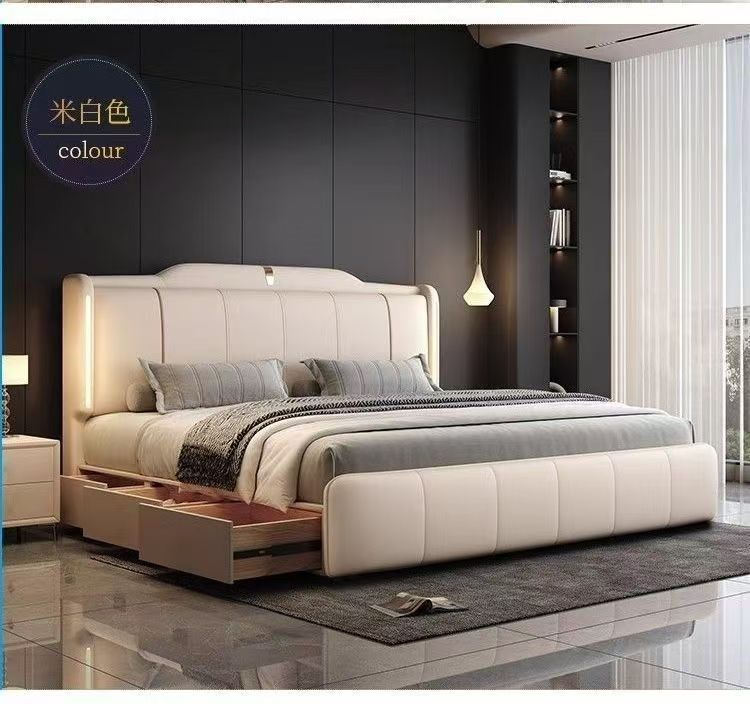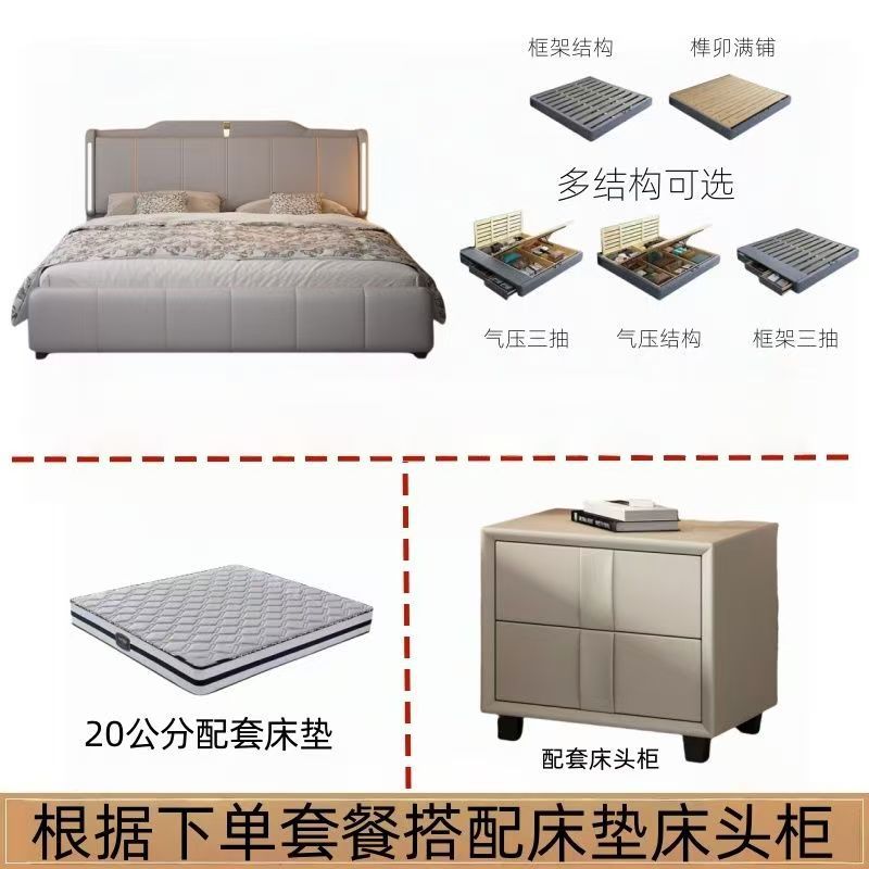 이탈리안 스타일 침대 1.8m 더블 침대 하이 엔드 분위기있는 빛 럭셔리 가죽 크림 현대 간단한 마스터 침실 수납 대형 웨딩 침대