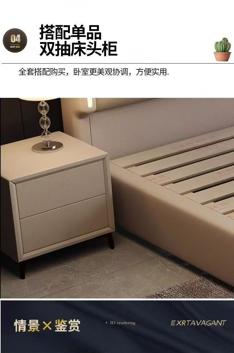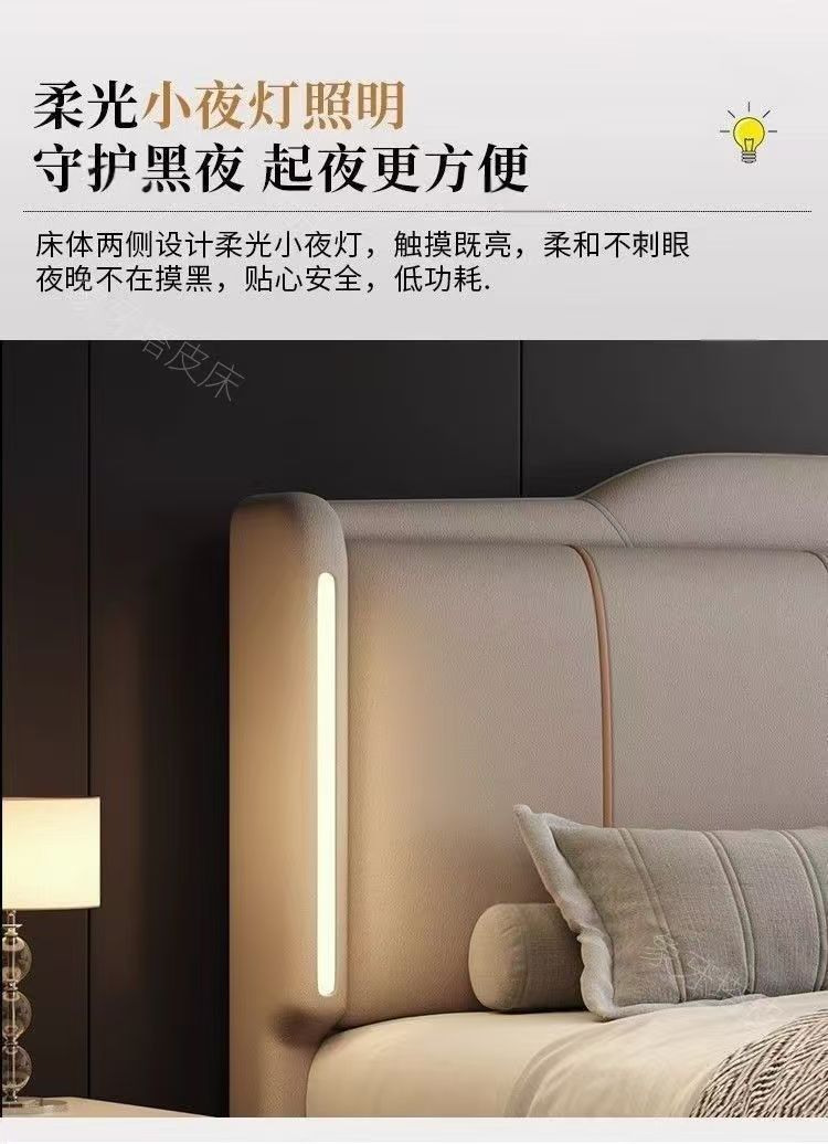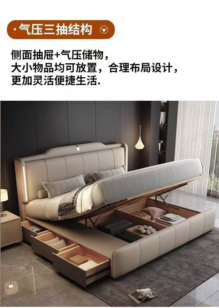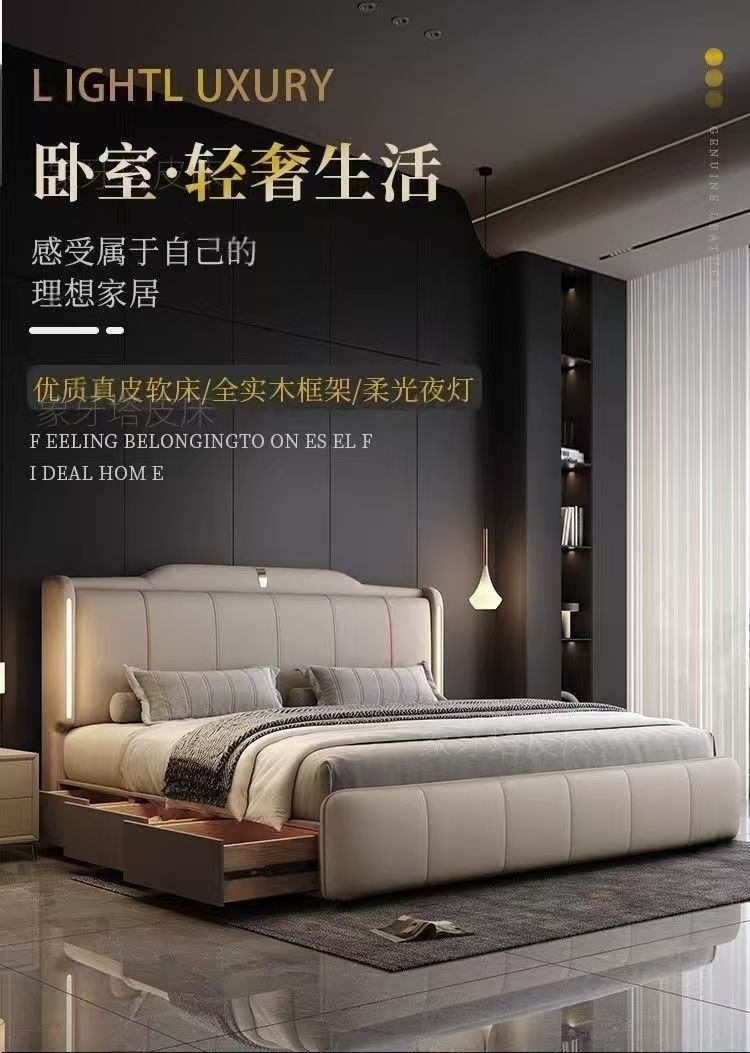 이탈리안 스타일 침대 1.8m 더블 침대 하이 엔드 분위기있는 빛 럭셔리 가죽 크림 현대 간단한 마스터 침실 수납 대형 웨딩 침대스토어 가기