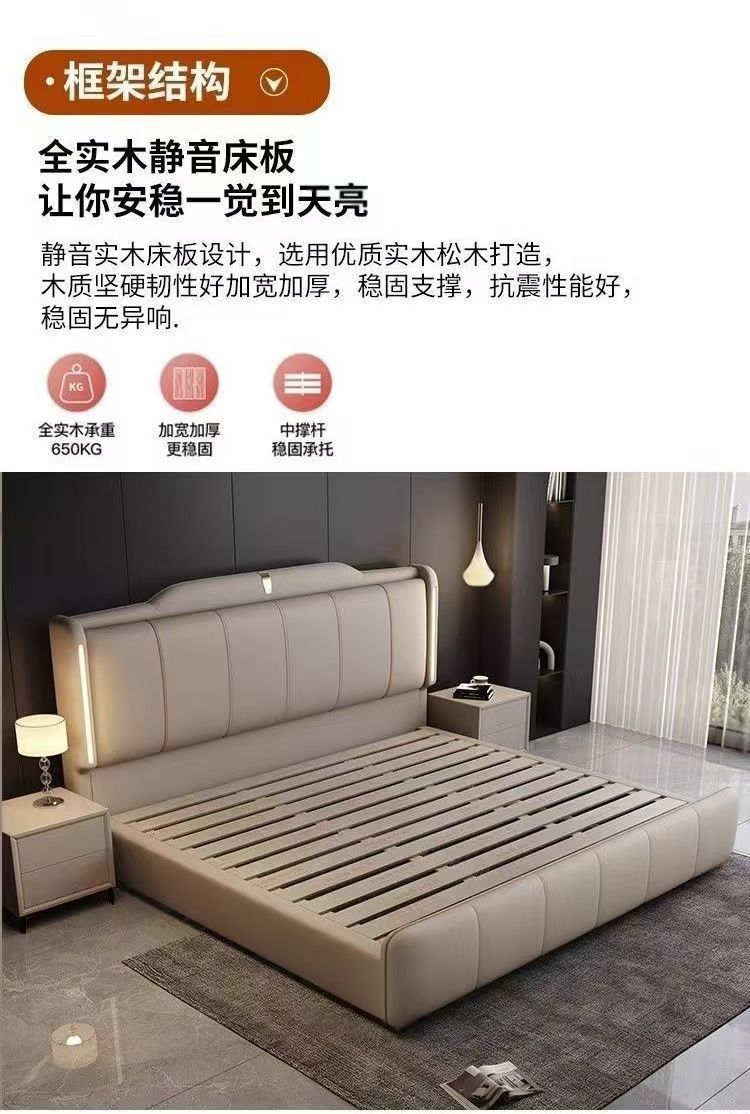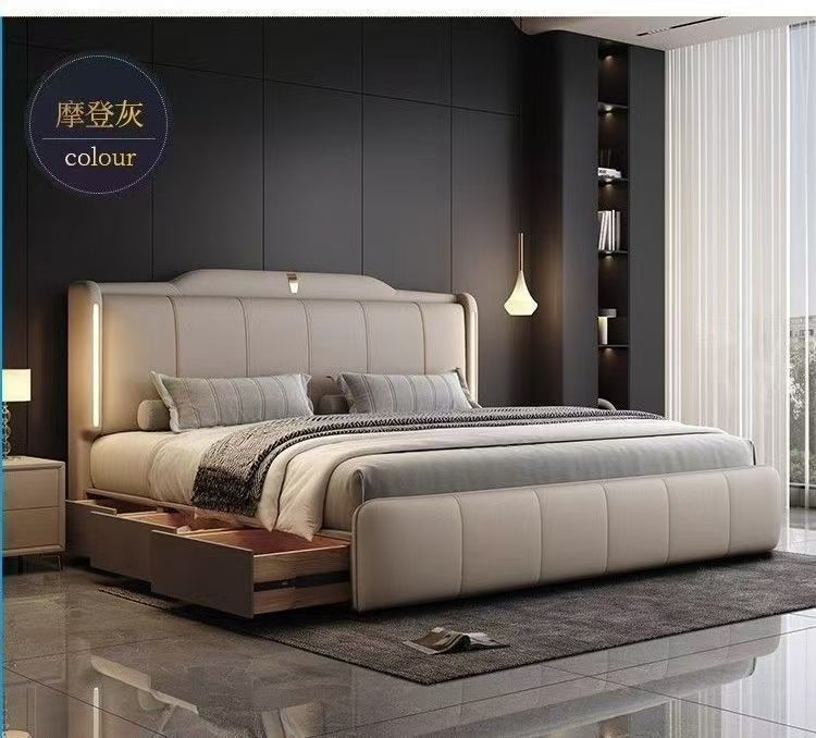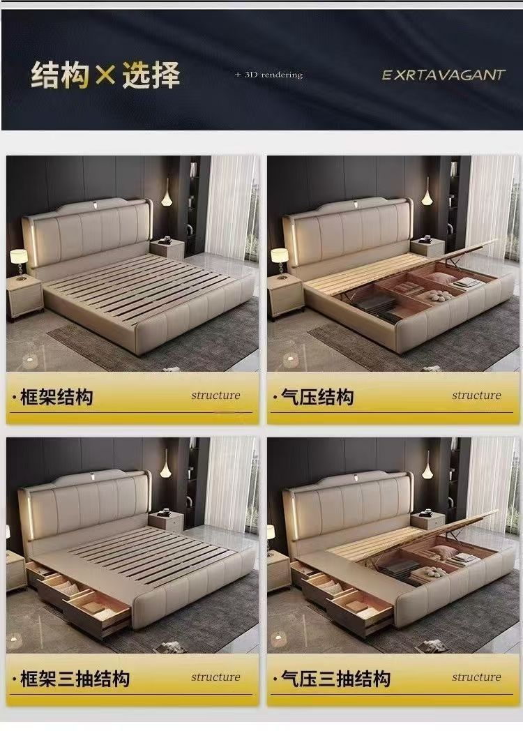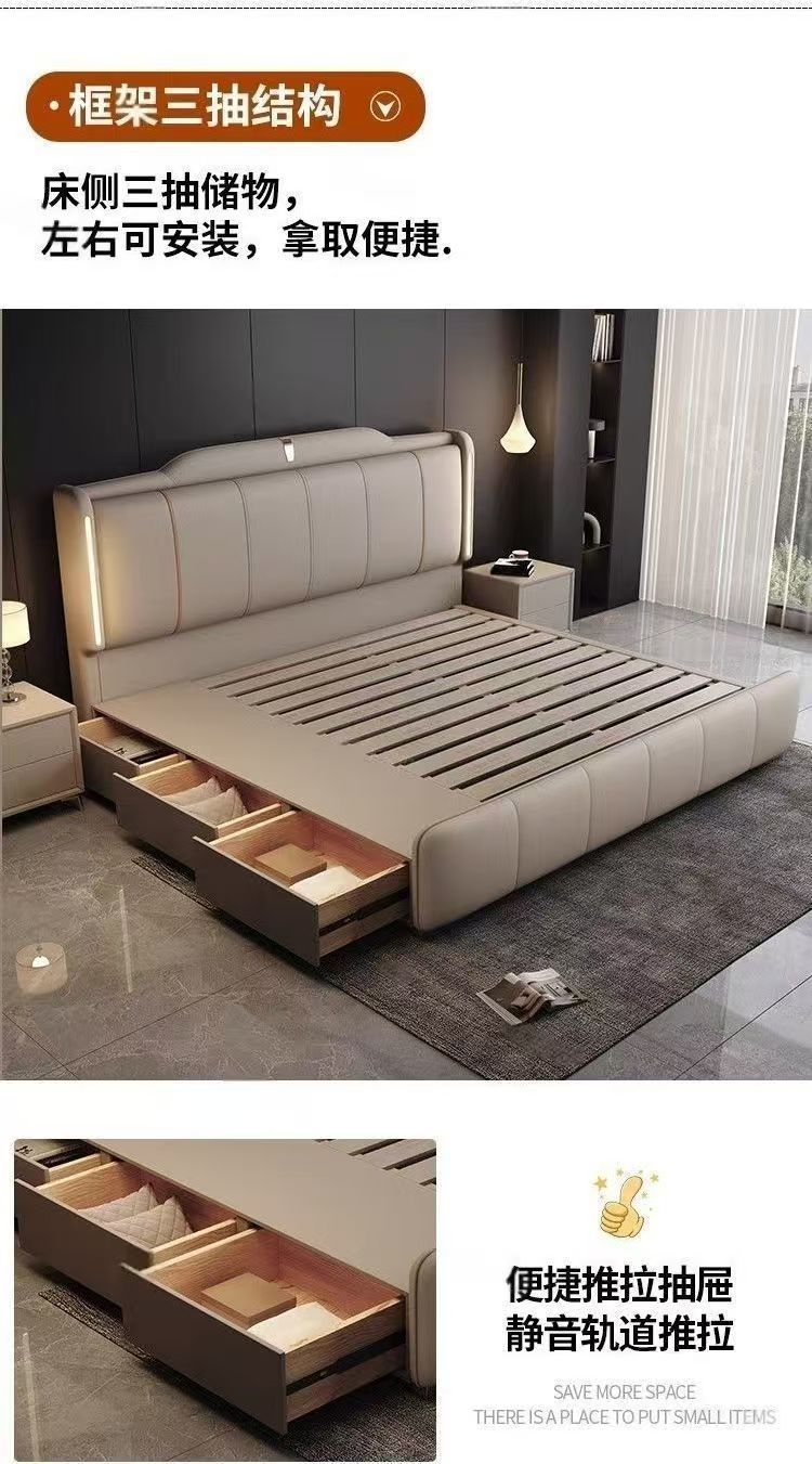 이탈리안 스타일 침대 1.8m 더블 침대 하이 엔드 분위기있는 빛 럭셔리 가죽 크림 현대 간단한 마스터 침실 수납 대형 웨딩 침대스토어 가기
