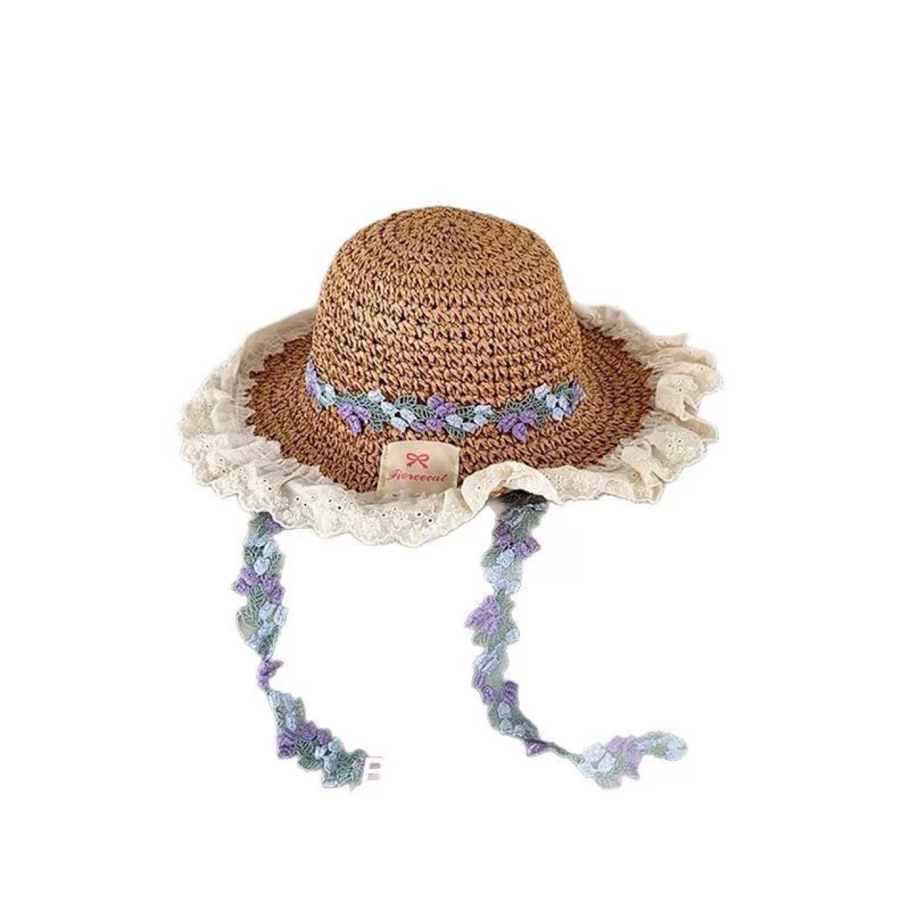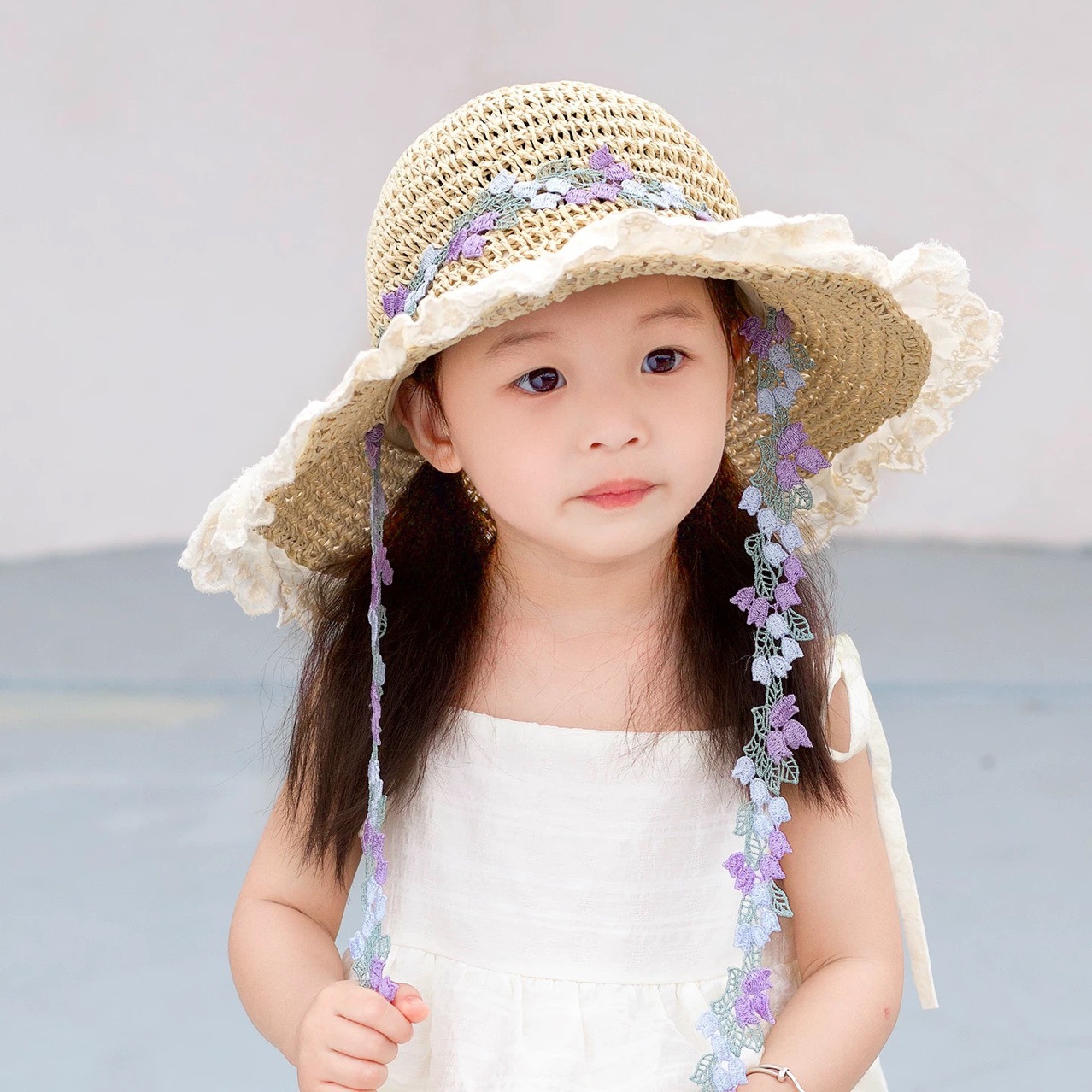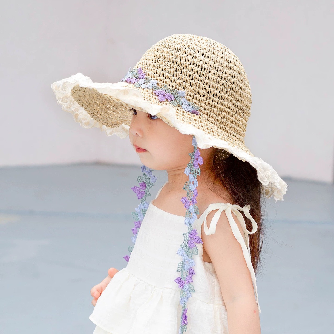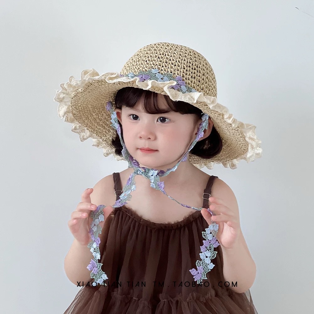 여자 아기를 위한 어린이 모자, 달콤한 공주 꽃 리본, 세련된 밀짚 어부 모자, 여자 여름 양산 밀짚 모자