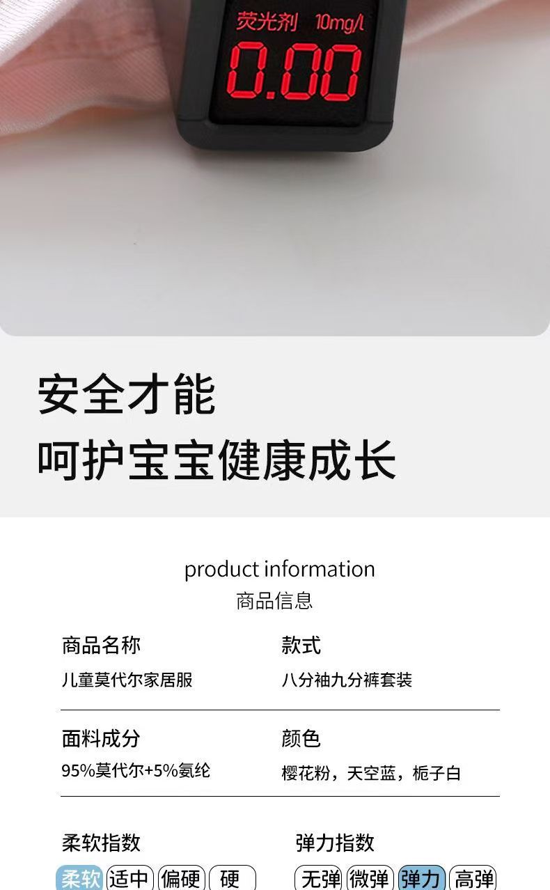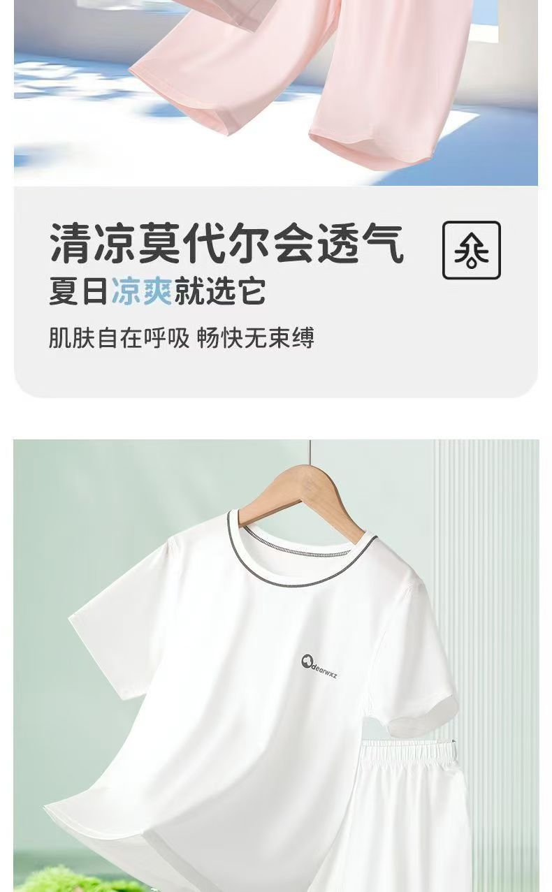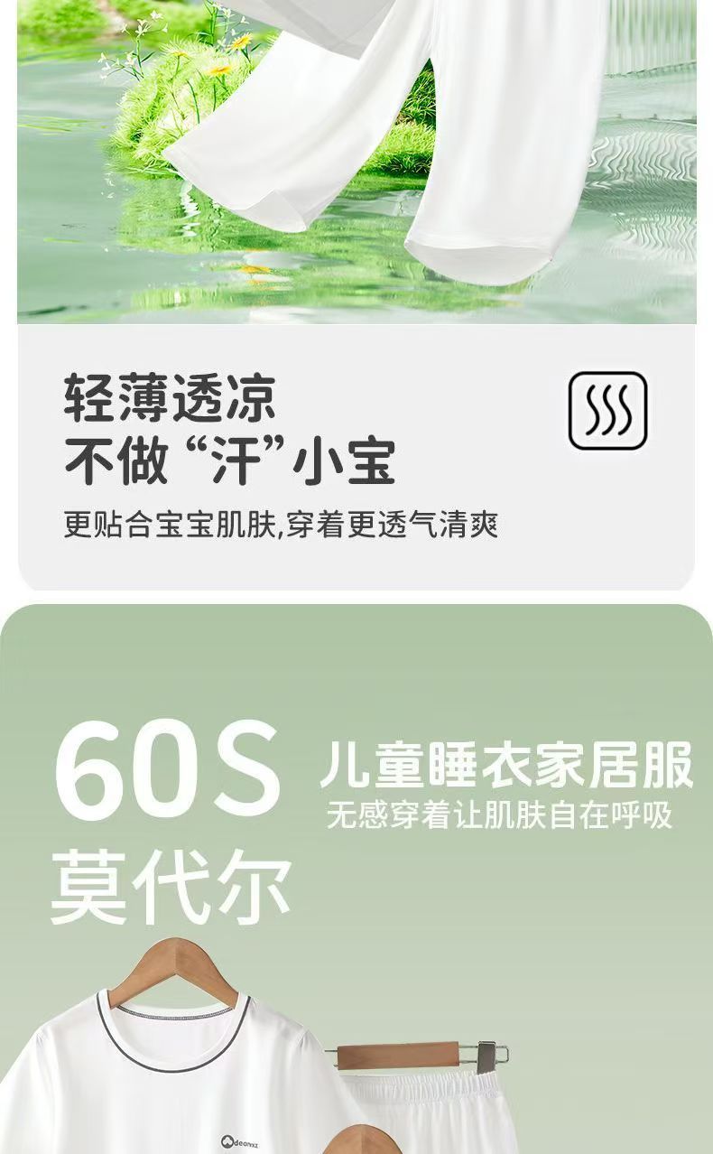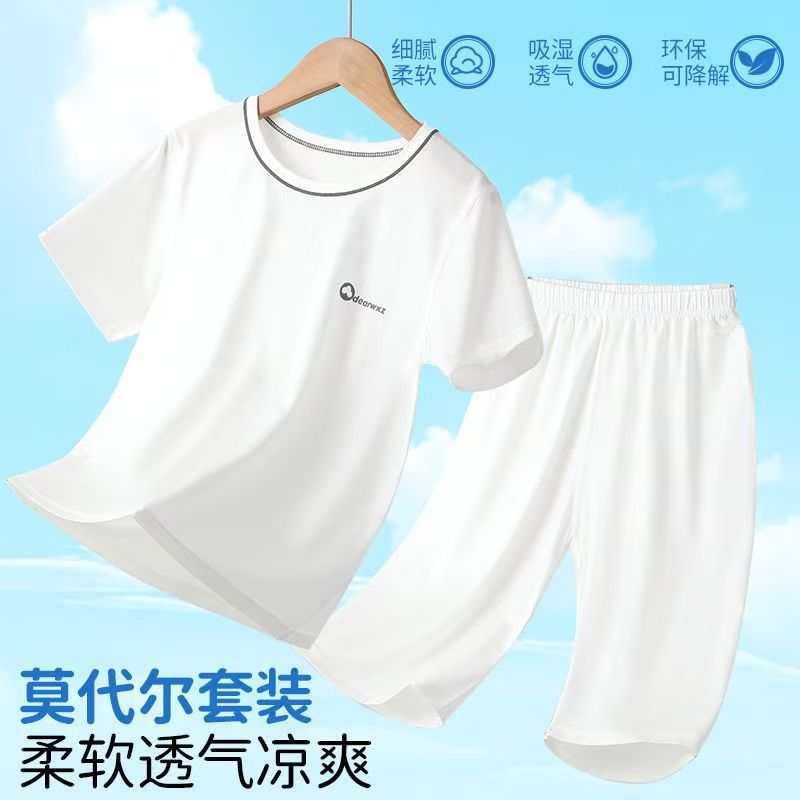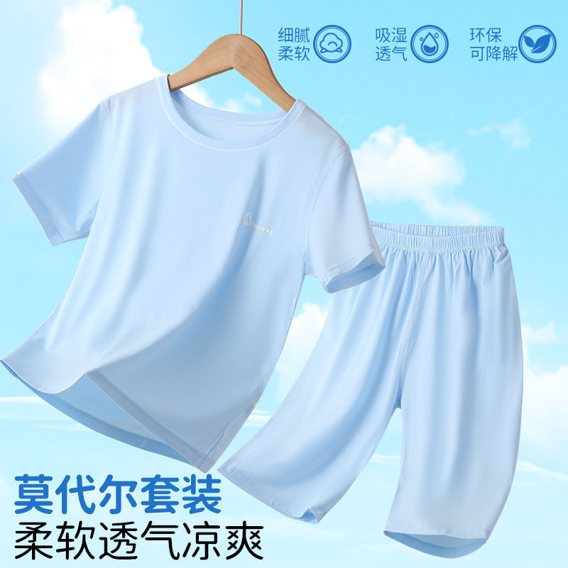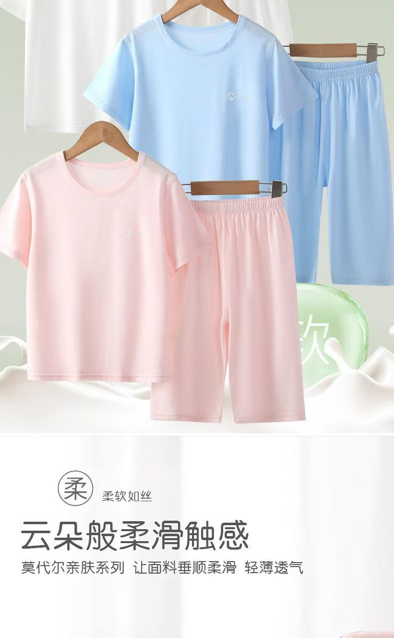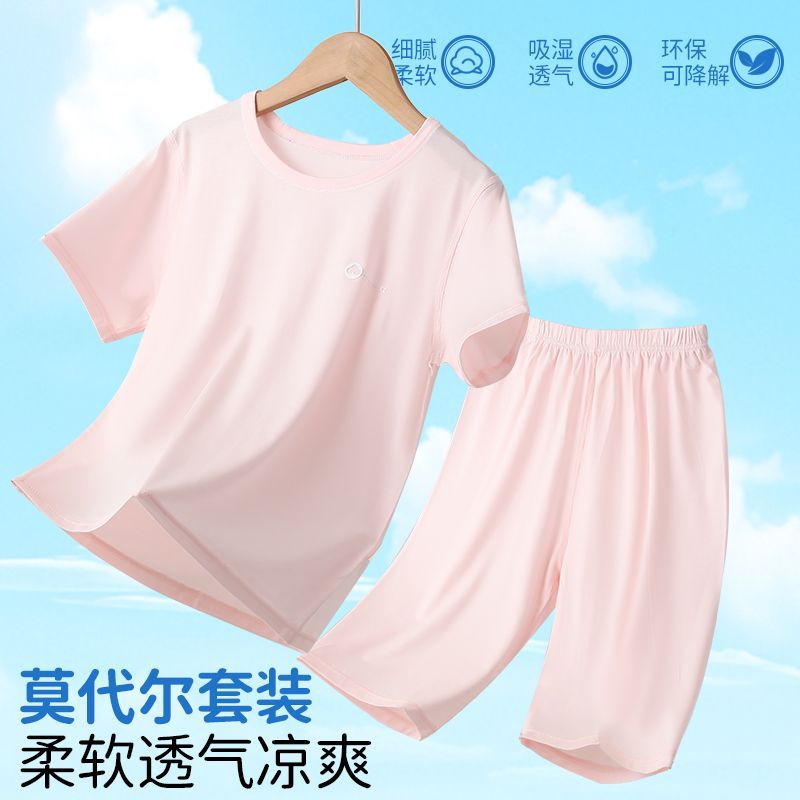 【A급 품질】모달 아동 잠옷 세트 얇은 남아 홈웨어 여아 여름 7부 소매