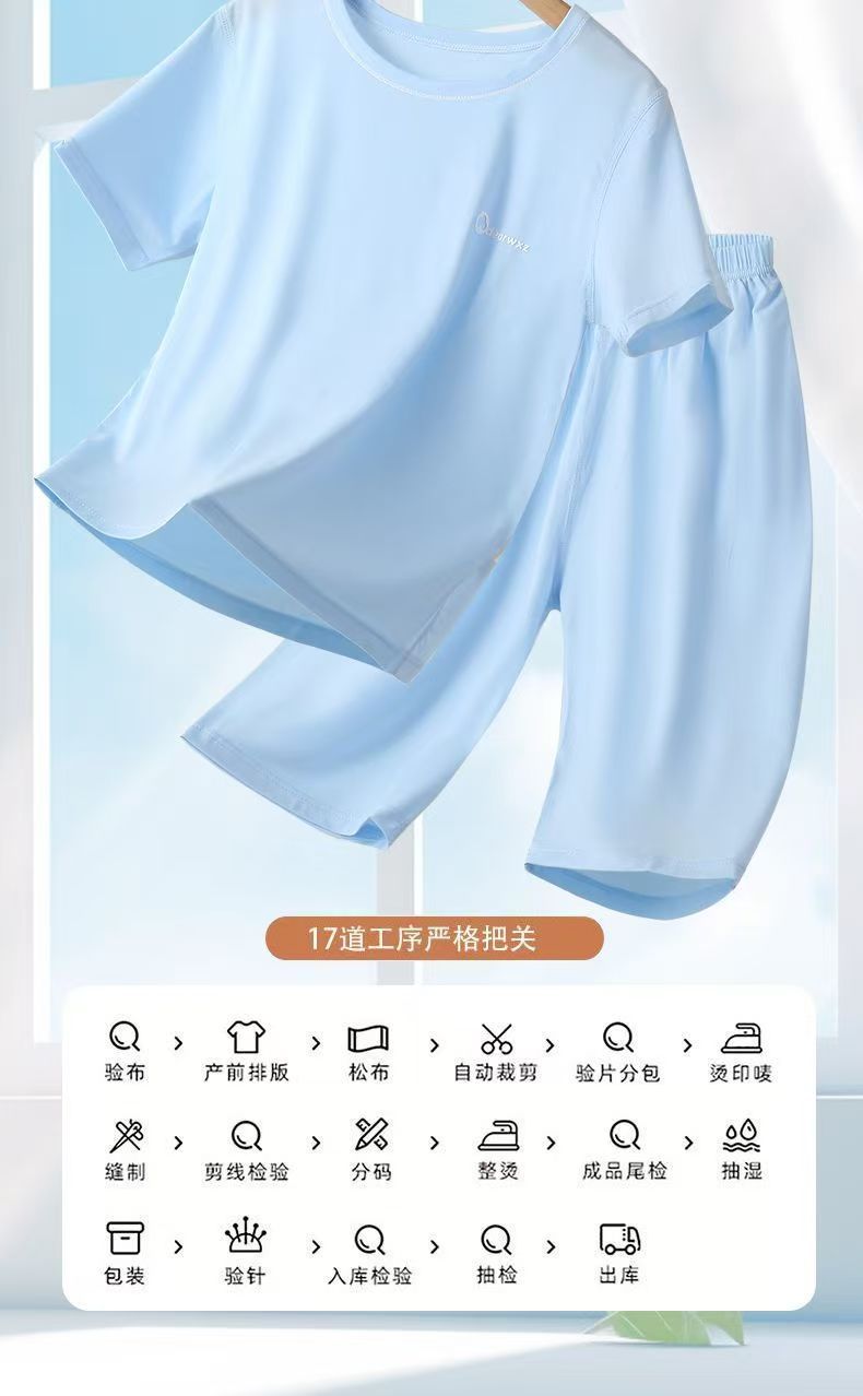【A급 품질】모달 아동 잠옷 세트 얇은 남아 홈웨어 여아 여름 7부 소매스토어 가기