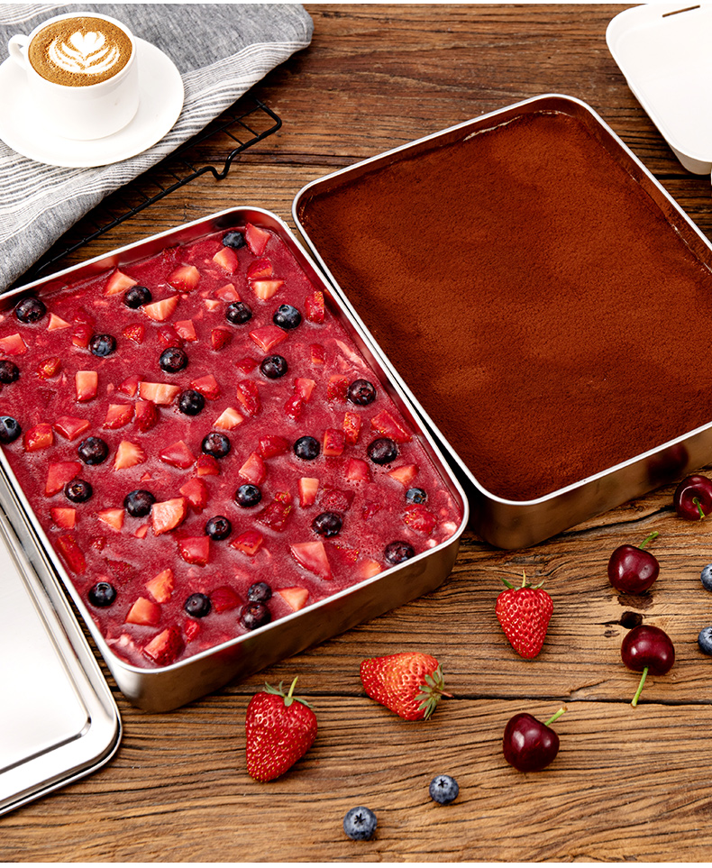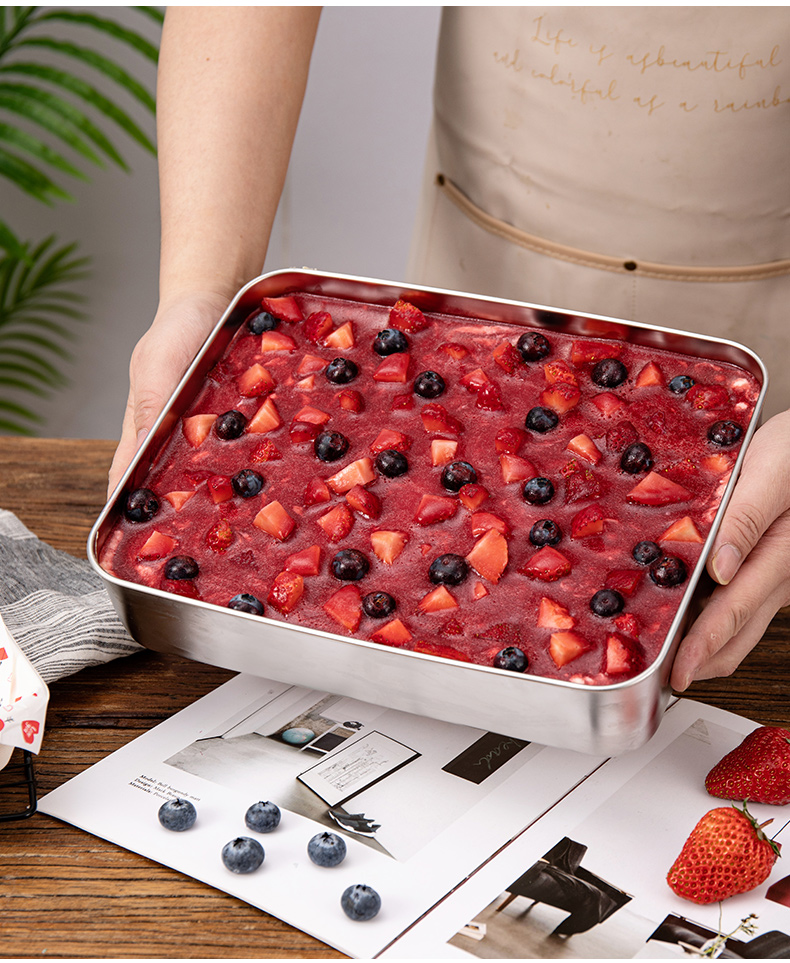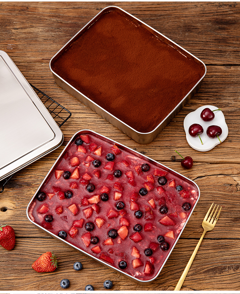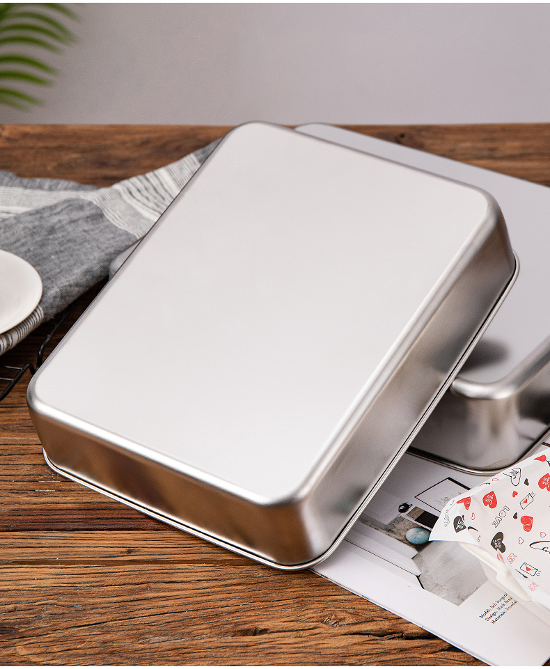 티라미수 트레이 용기 만들기 스테인레스 스틸 직사각형 사각형 접시 인터넷 연예인 케이크 베이킹 팬 철 상자 깊은 접시