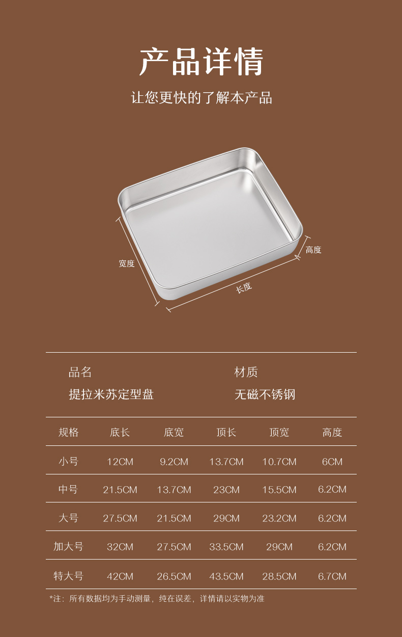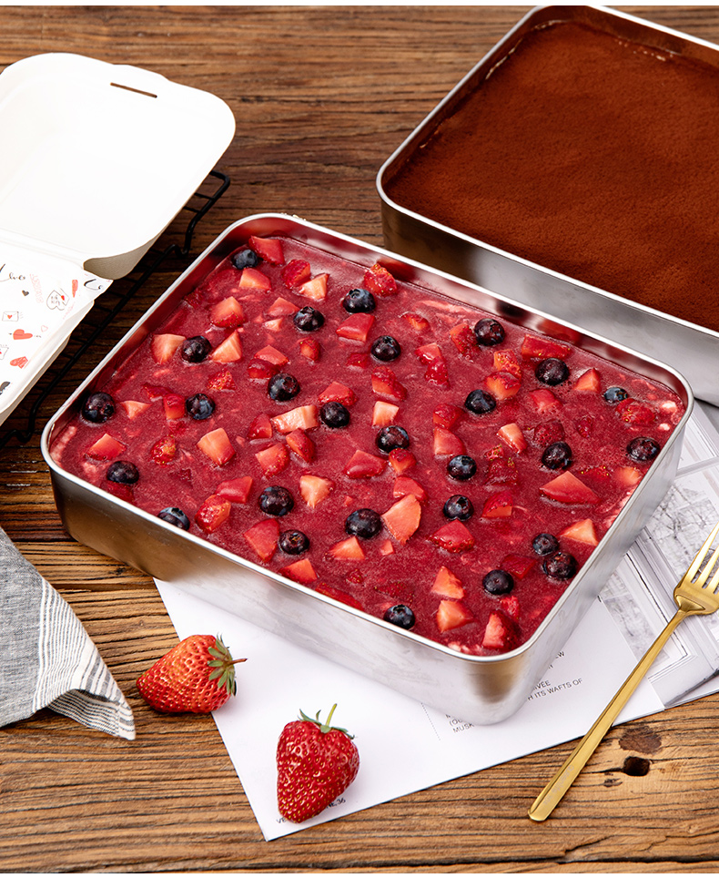 티라미수 트레이 용기 만들기 스테인레스 스틸 직사각형 사각형 접시 인터넷 연예인 케이크 베이킹 팬 철 상자 깊은 접시스토어 가기