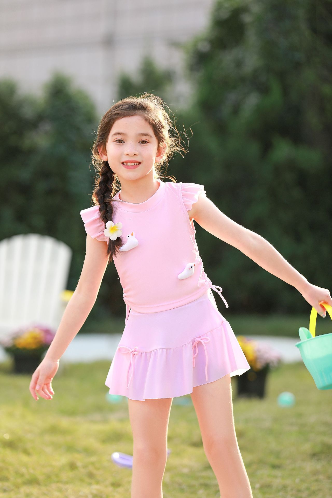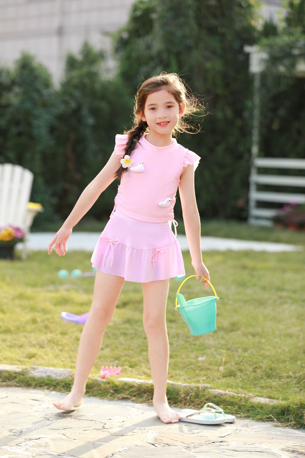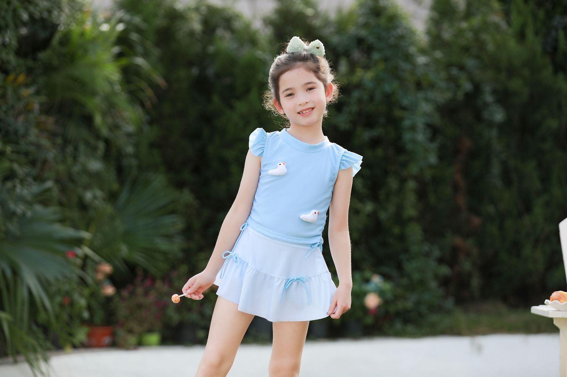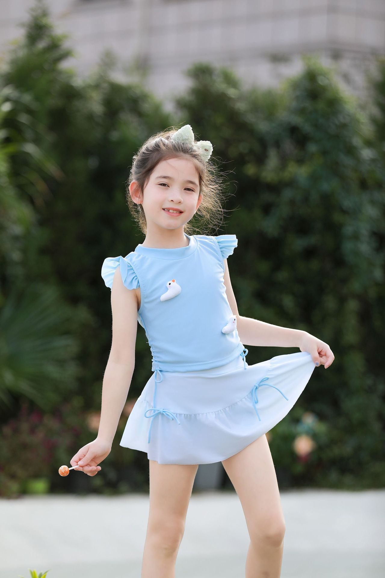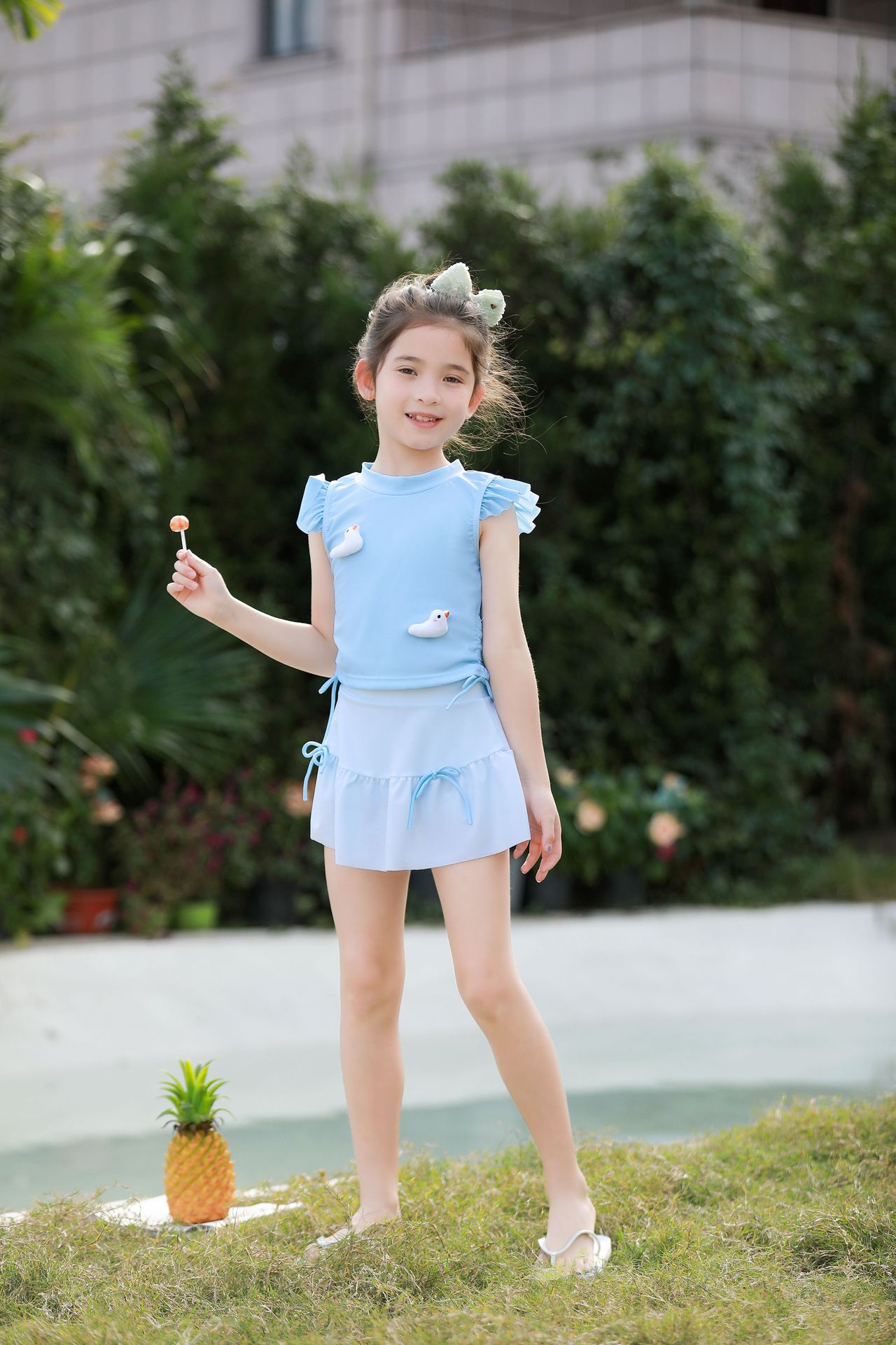여름 새 여자 여자 귀여운 공주 스타일 스플릿 수영복 어린이 수영복 고탄성 통기성 수영복
