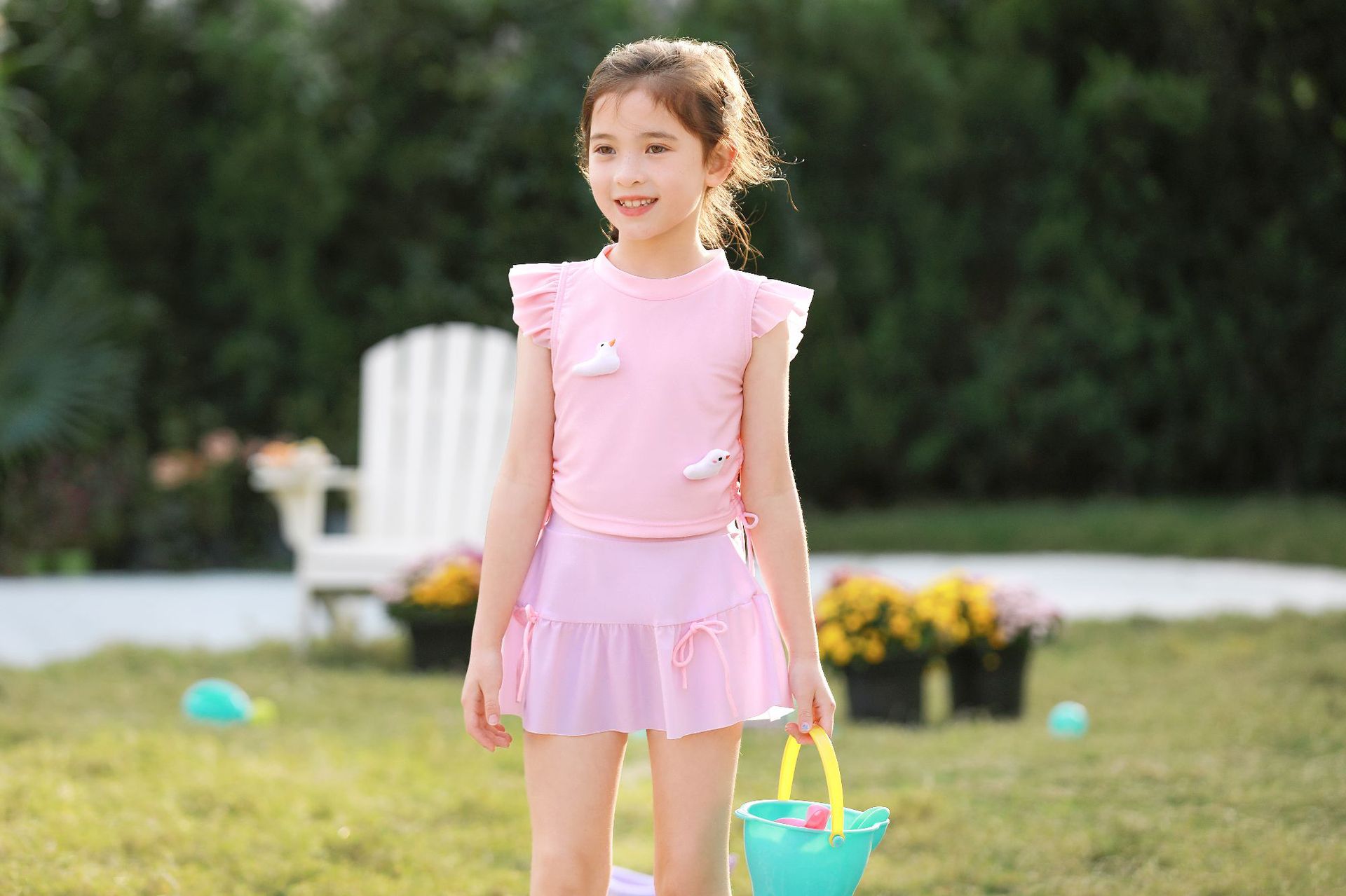 여름 새 여자 여자 귀여운 공주 스타일 스플릿 수영복 어린이 수영복 고탄성 통기성 수영복스토어 가기