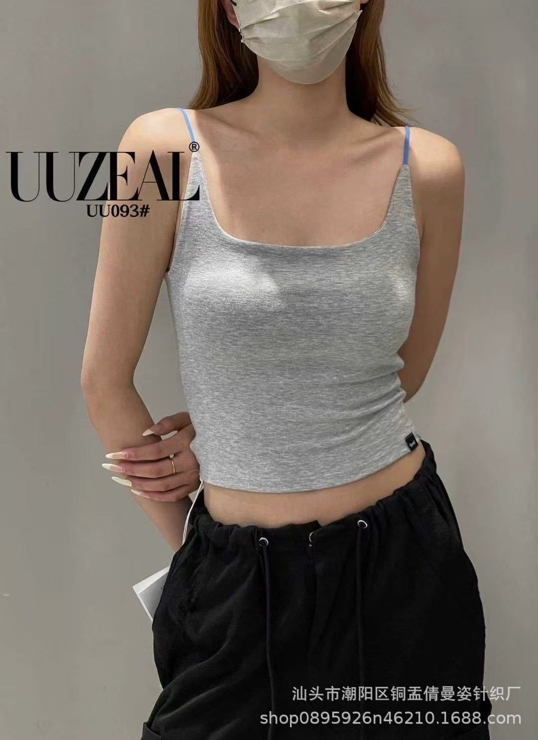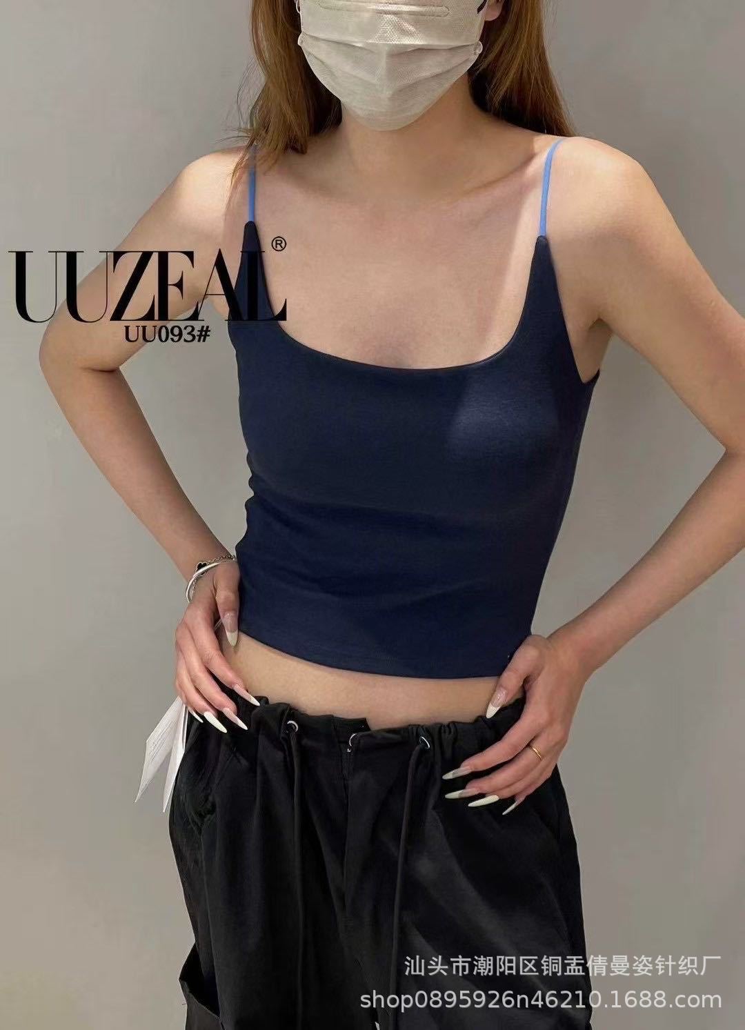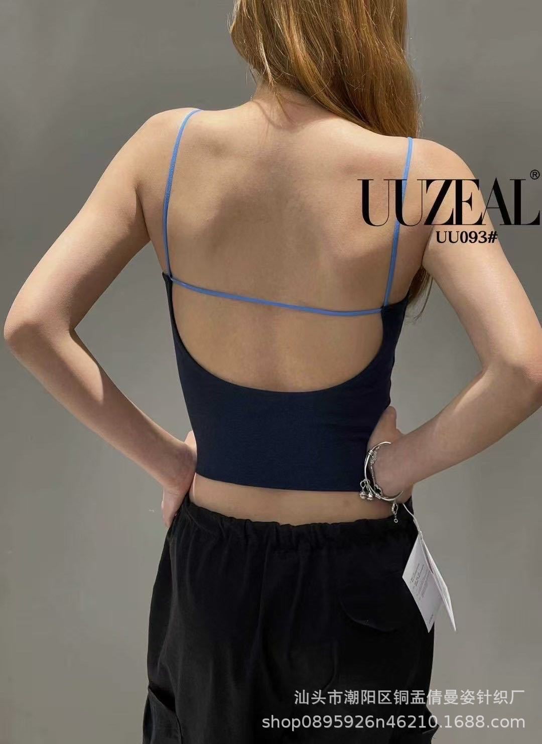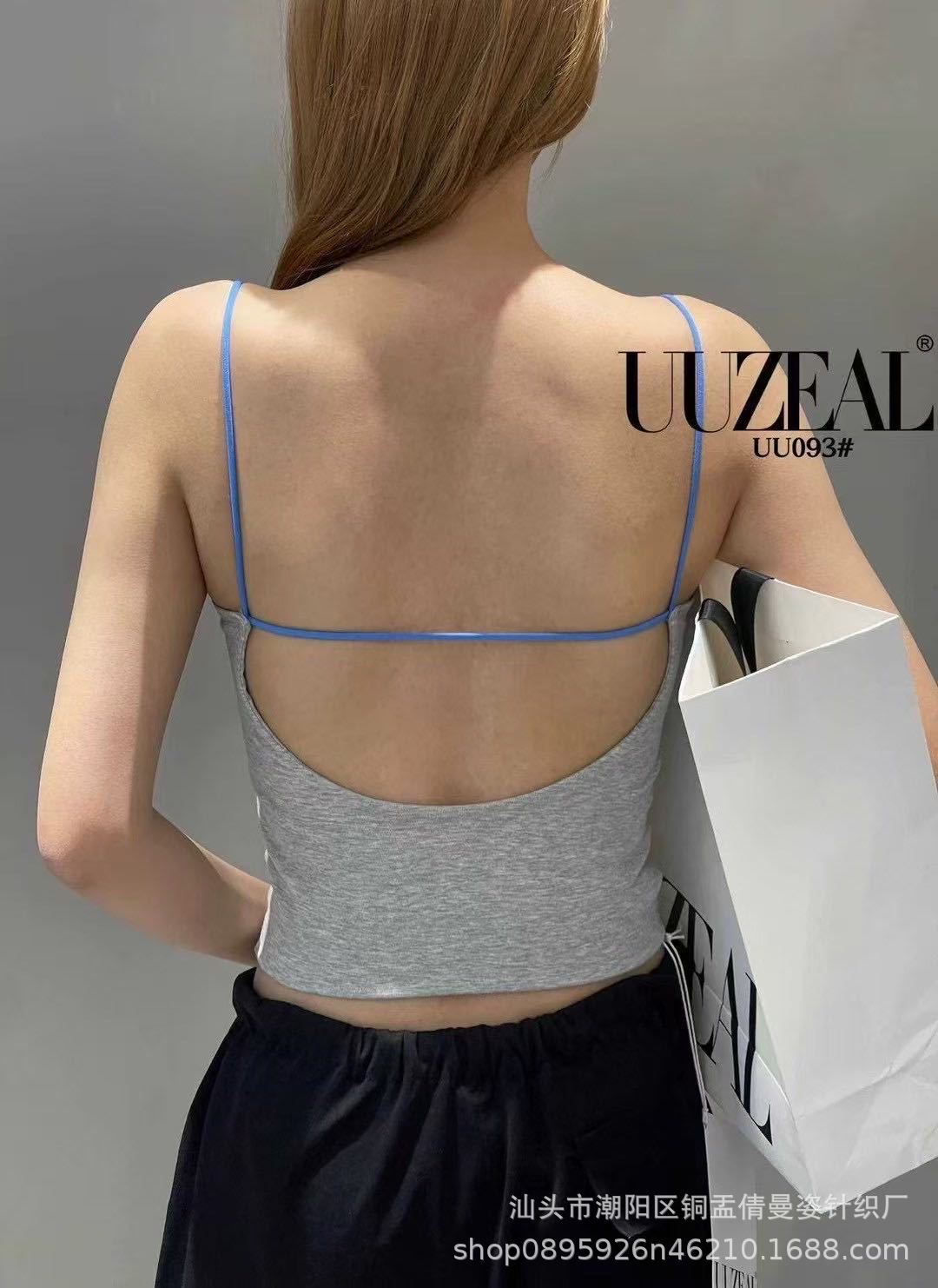 Uuzeal 봄 여름 새로운 디자인 대비 색상 슬림 슬링 여성 핫 소녀 조끼 가슴 패드 아름다운 뒤 순수한 욕망 탑