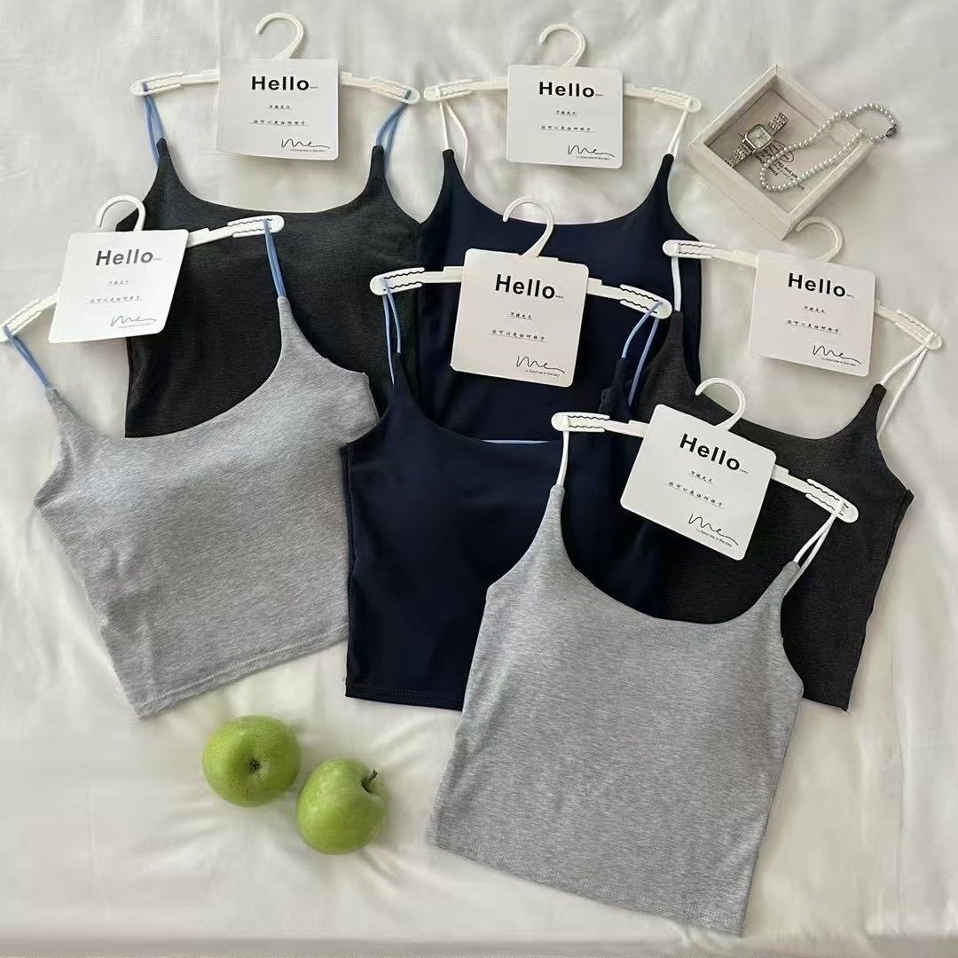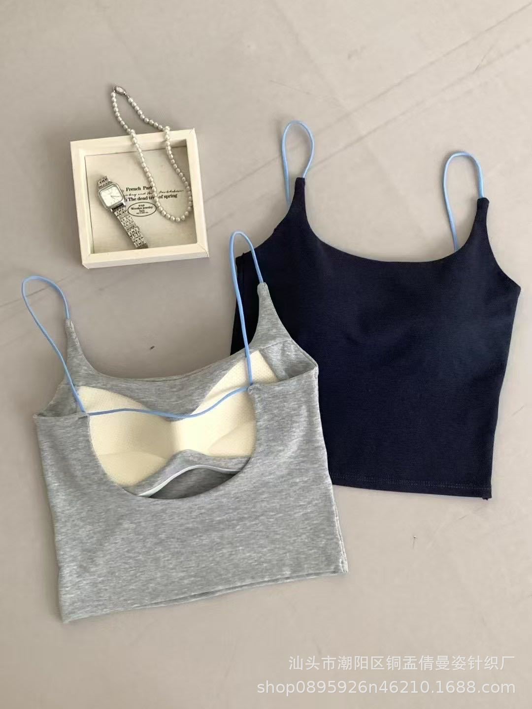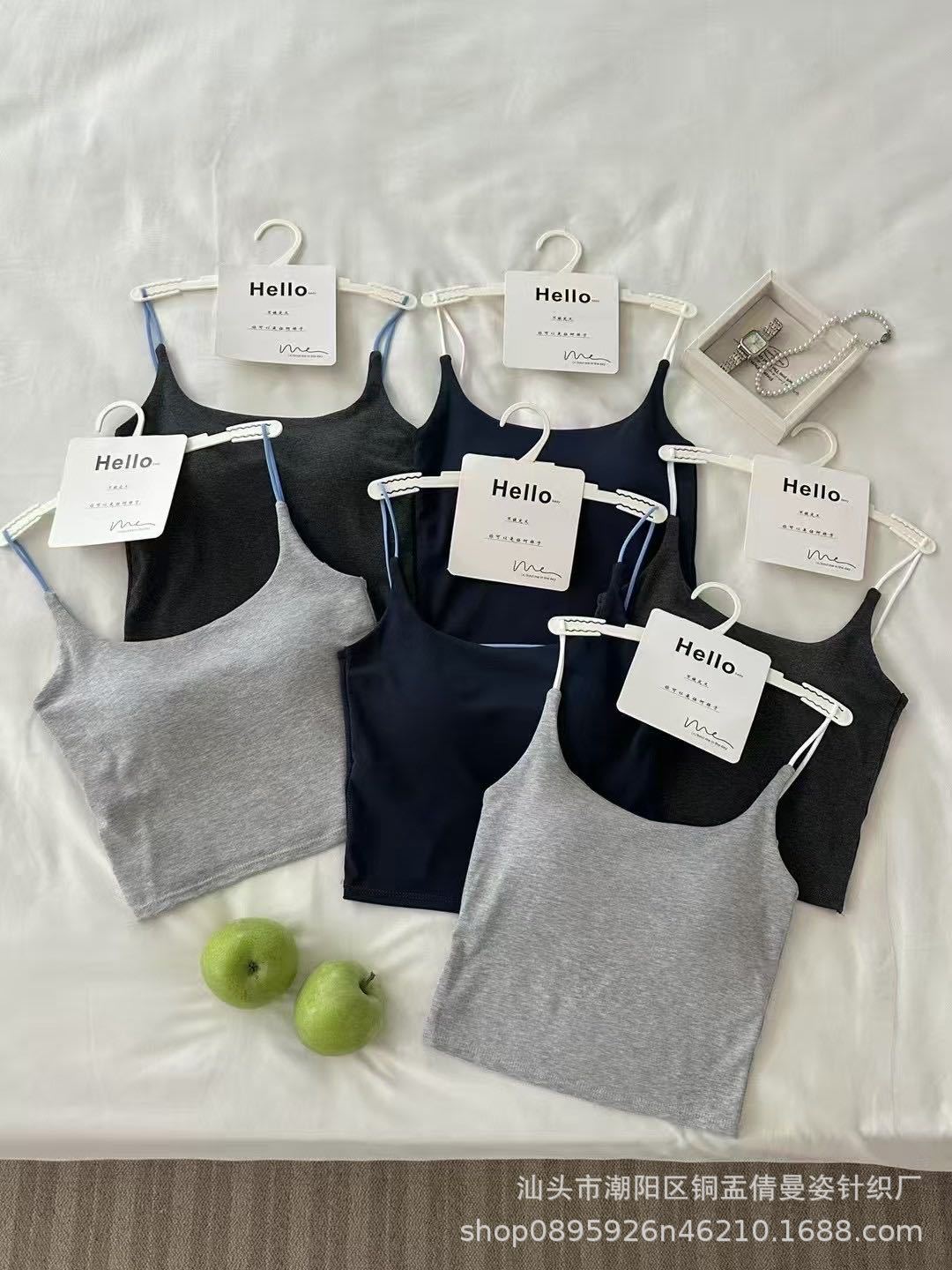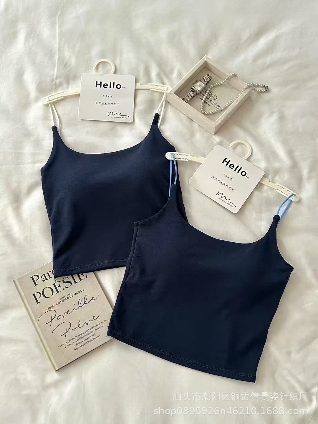 Uuzeal 봄 여름 새로운 디자인 대비 색상 슬림 슬링 여성 핫 소녀 조끼 가슴 패드 아름다운 뒤 순수한 욕망 탑