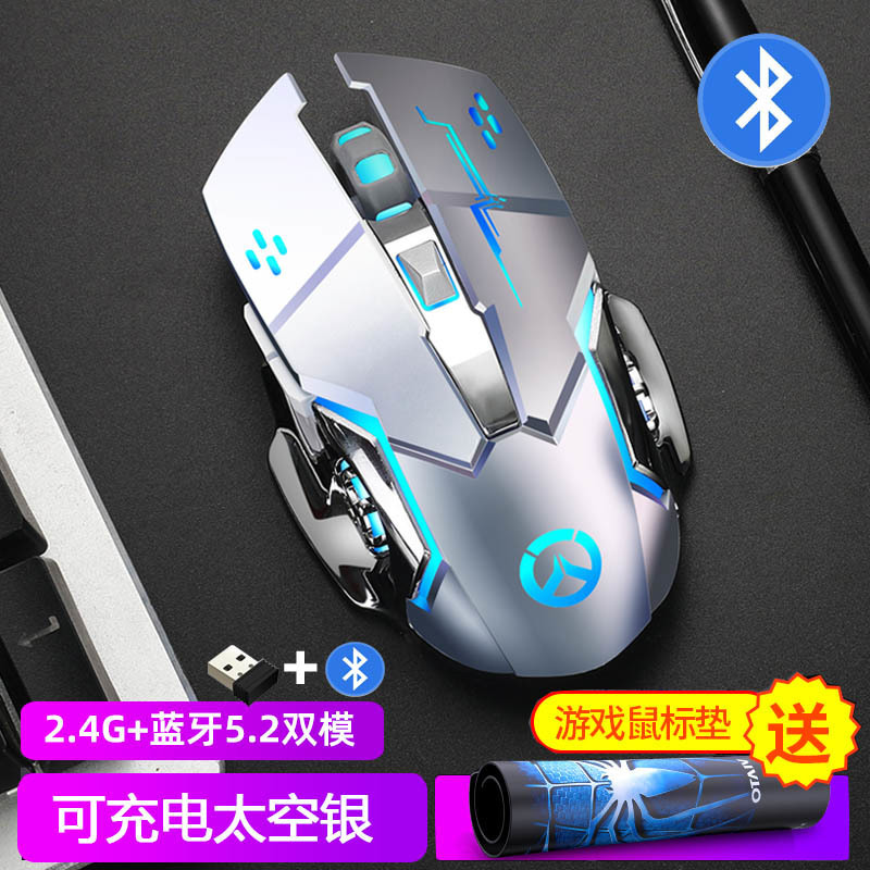 • 스페이스 실버 + 마우스 패드-[무음 충전식] 2.4G + Bluetooth 5.2 듀얼 모드 플래그십 버전