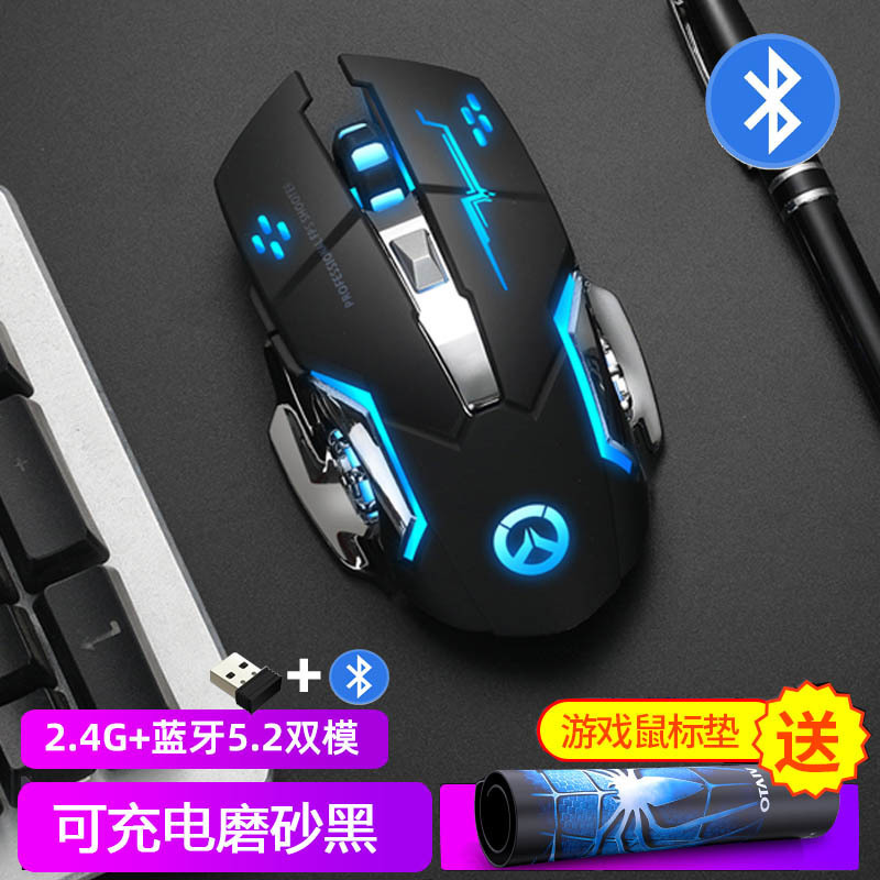 • 블랙 + 마우스 패드-[무음 충전식] 2.4G + Bluetooth 5.2 듀얼 모드 플래그십 버전