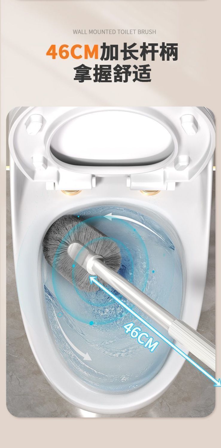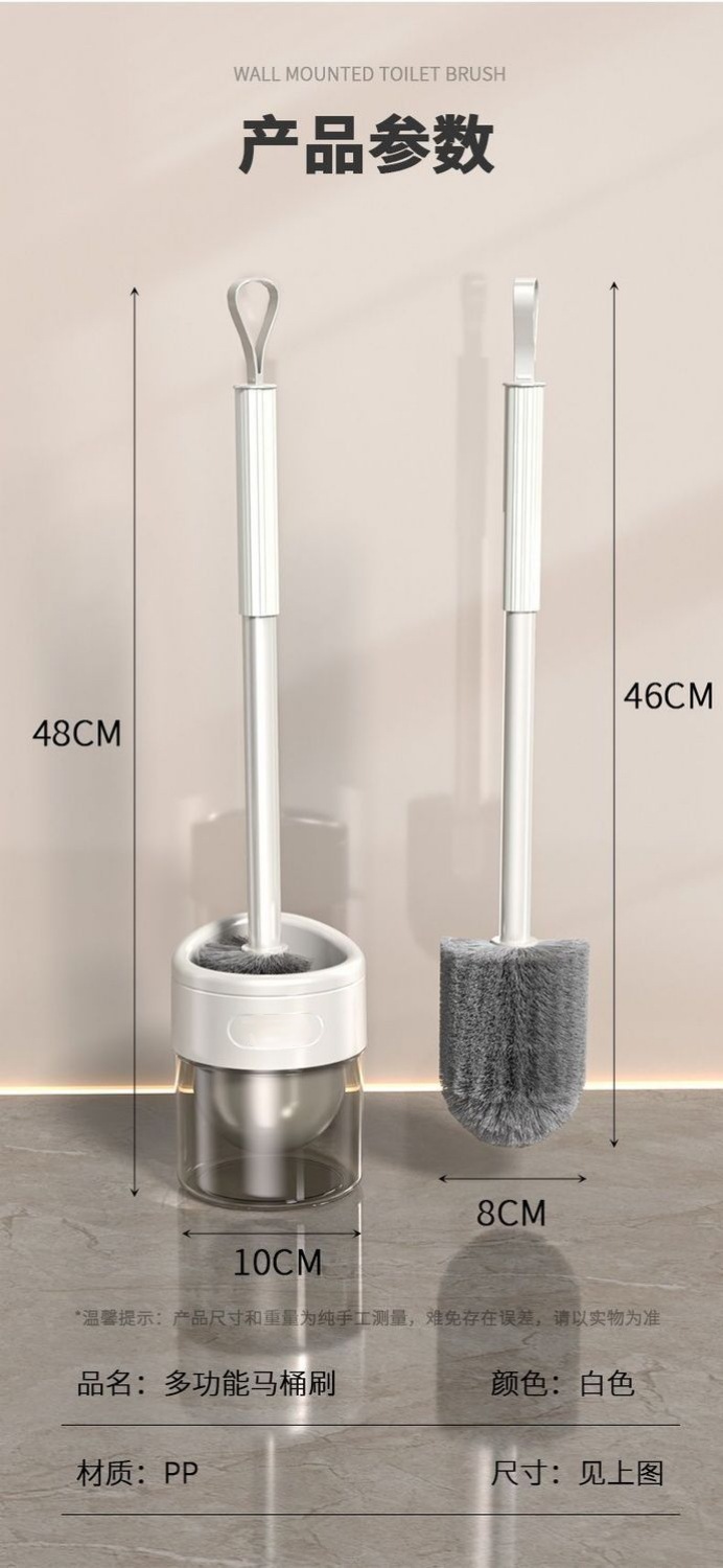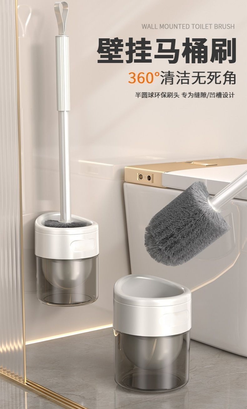 변기솔, 가정용 솔, 360도 사각청소, 욕실 긴손잡이 벽걸이형 변기 베이스 아티팩트 세트