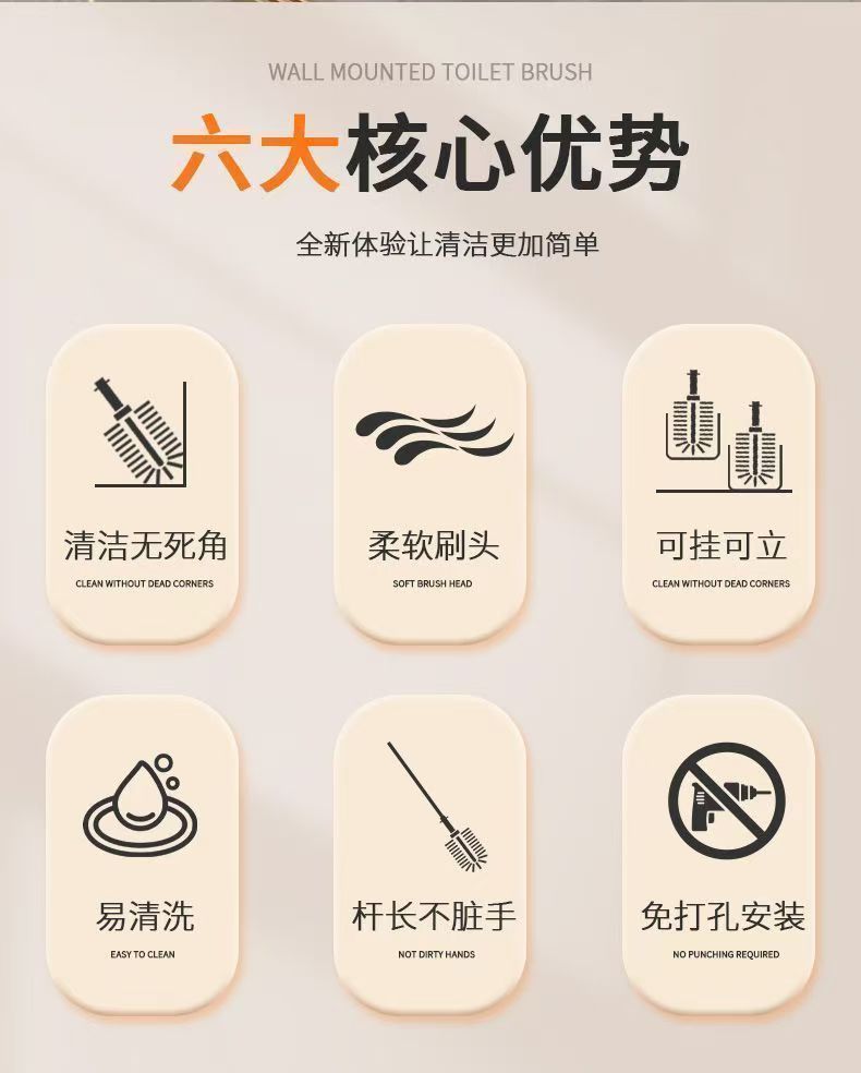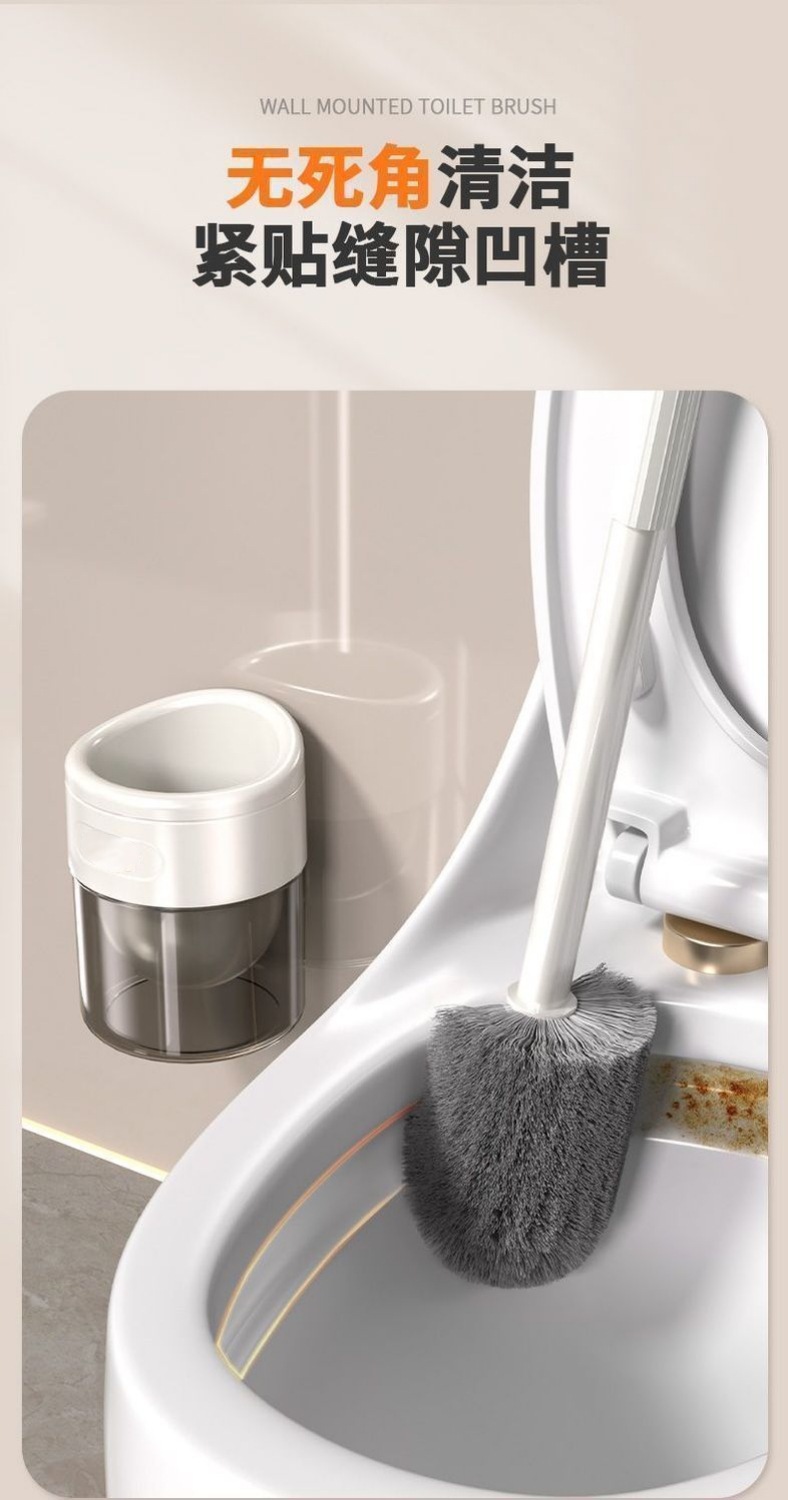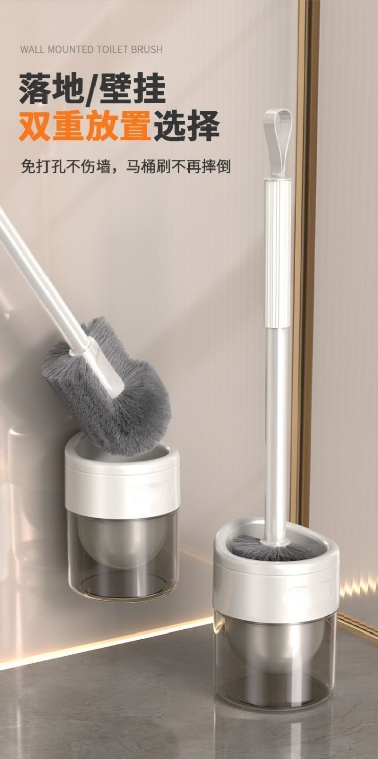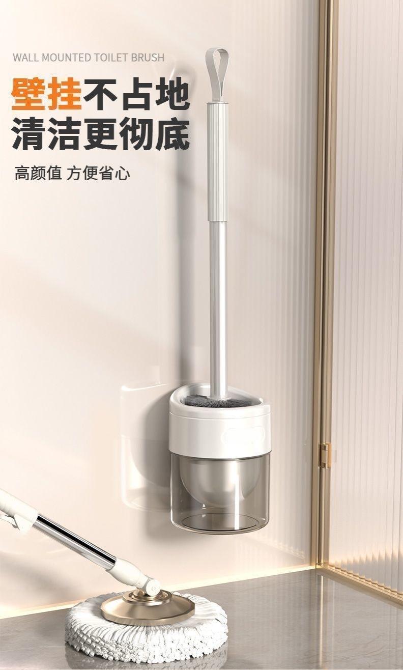 변기솔, 가정용 솔, 360도 사각청소, 욕실 긴손잡이 벽걸이형 변기 베이스 아티팩트 세트