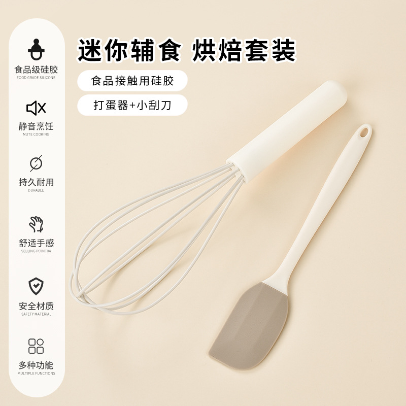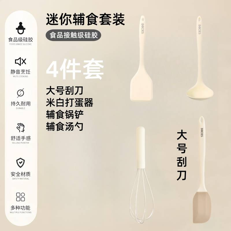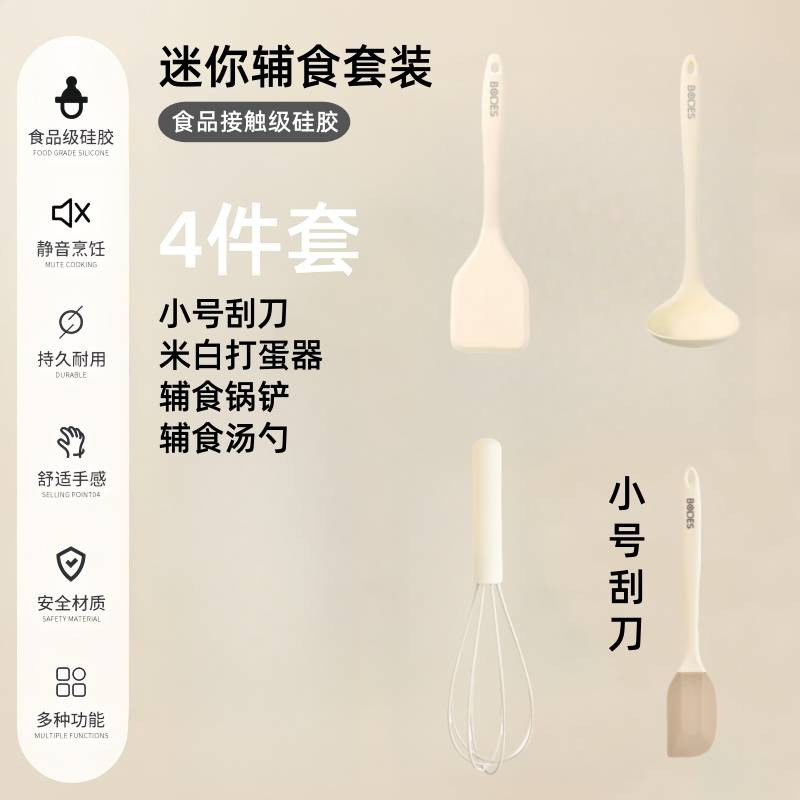 • 바우디스 밀크커피 분할대 주걱 + 쌀백색 식품보충실리콘주걱 + 쌀백색 식품보충스푼 + 쌀백색 직선손잡이 계란비터 [4종세트]