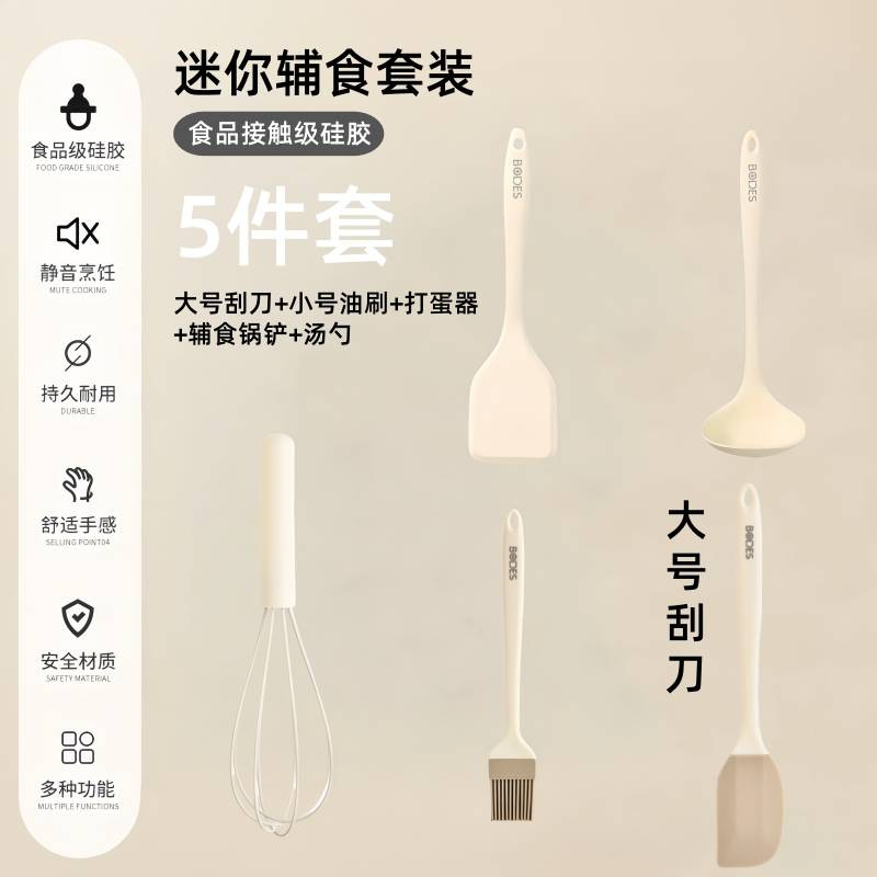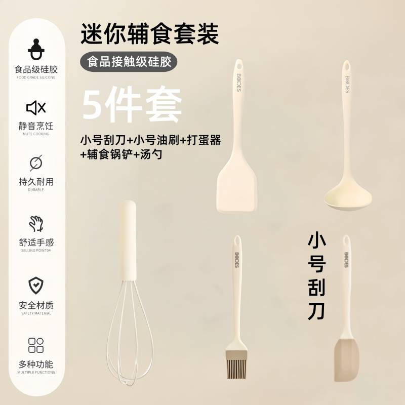 • 보디스 밀크커피 분할소형 오일브러시 + 밀크커피 분할대형 스크레이퍼 + 쌀백색 식품보충실리콘주걱 + 쌀백색 식품보충스푼 + 쌀백색 직선손잡이 계란비터 [5종세트]
