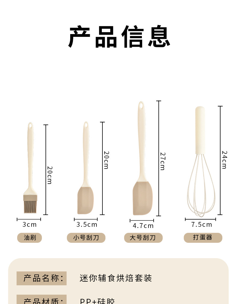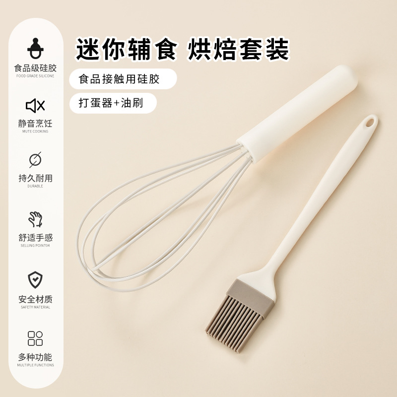 • 보디스 밀크커피 분할 소형 오일 브러쉬 + 밀크커피 분할 대형 스크레이퍼 + 황백색 직선 손잡이 계란 비터 [3종 세트]