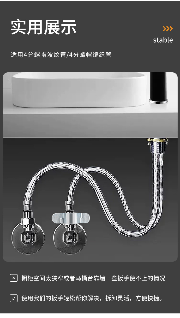 호스 렌치 4점 주름관 탈착식으로 설치가 편리한 육각 소형 렌치 온수기 수도꼭지 수리 호스