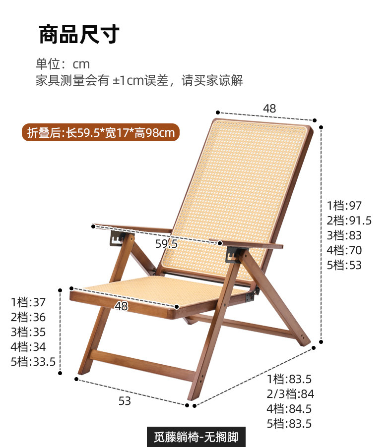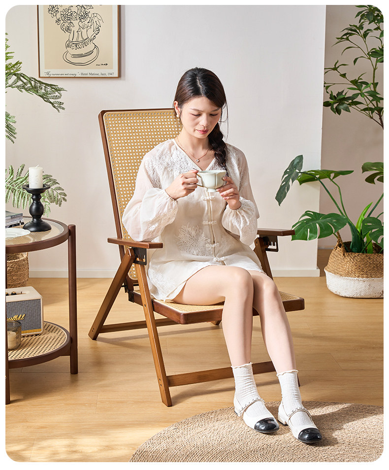 낮잠을 위한 접이식 등나무 대나무 안락의자, 앉거나 누울 수 있는 야외용 등나무 의자, 노인을 위한 튼튼하고 내구성이 뛰어난 발코니 레저 의자