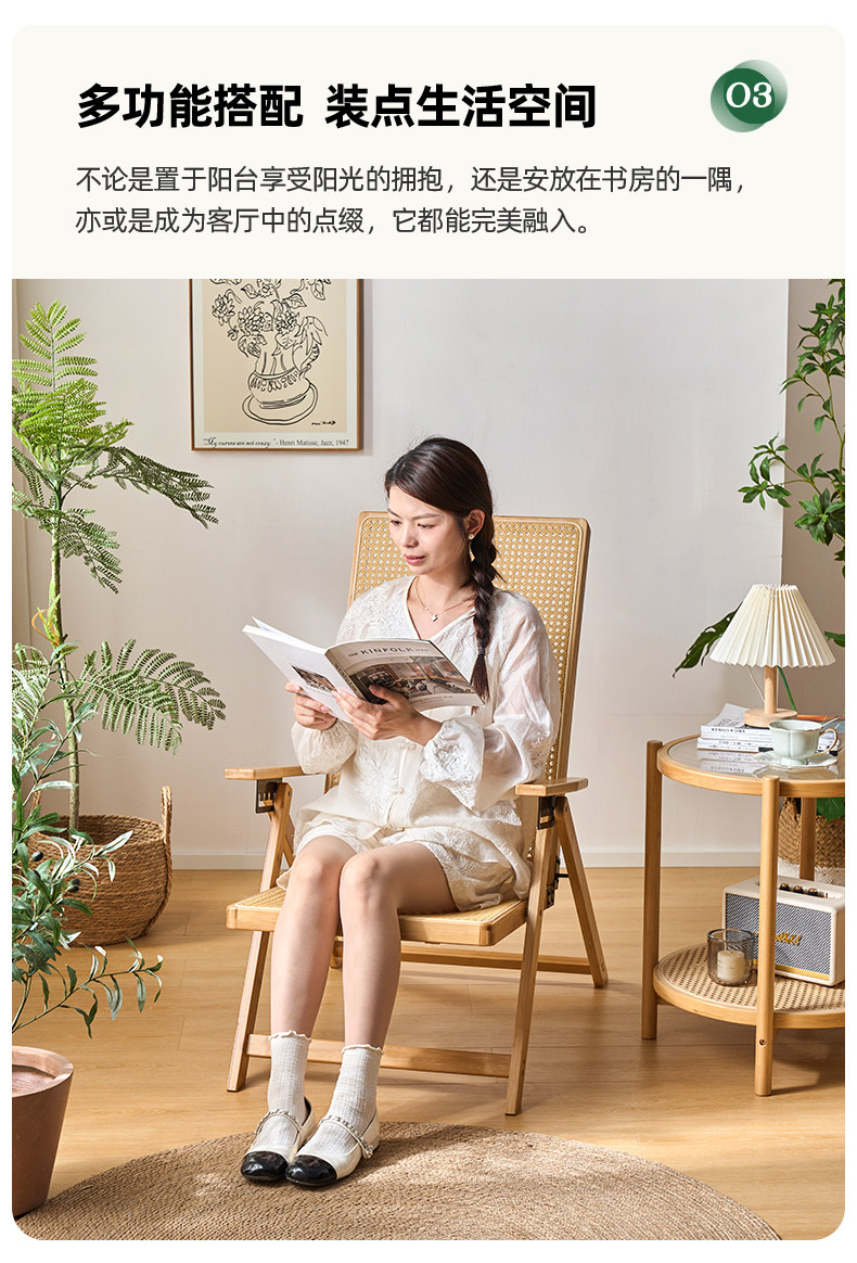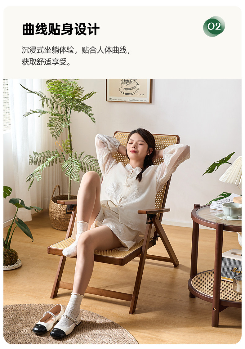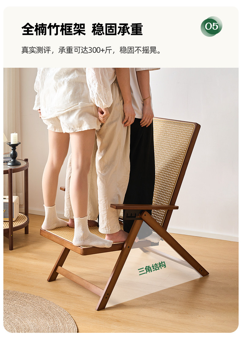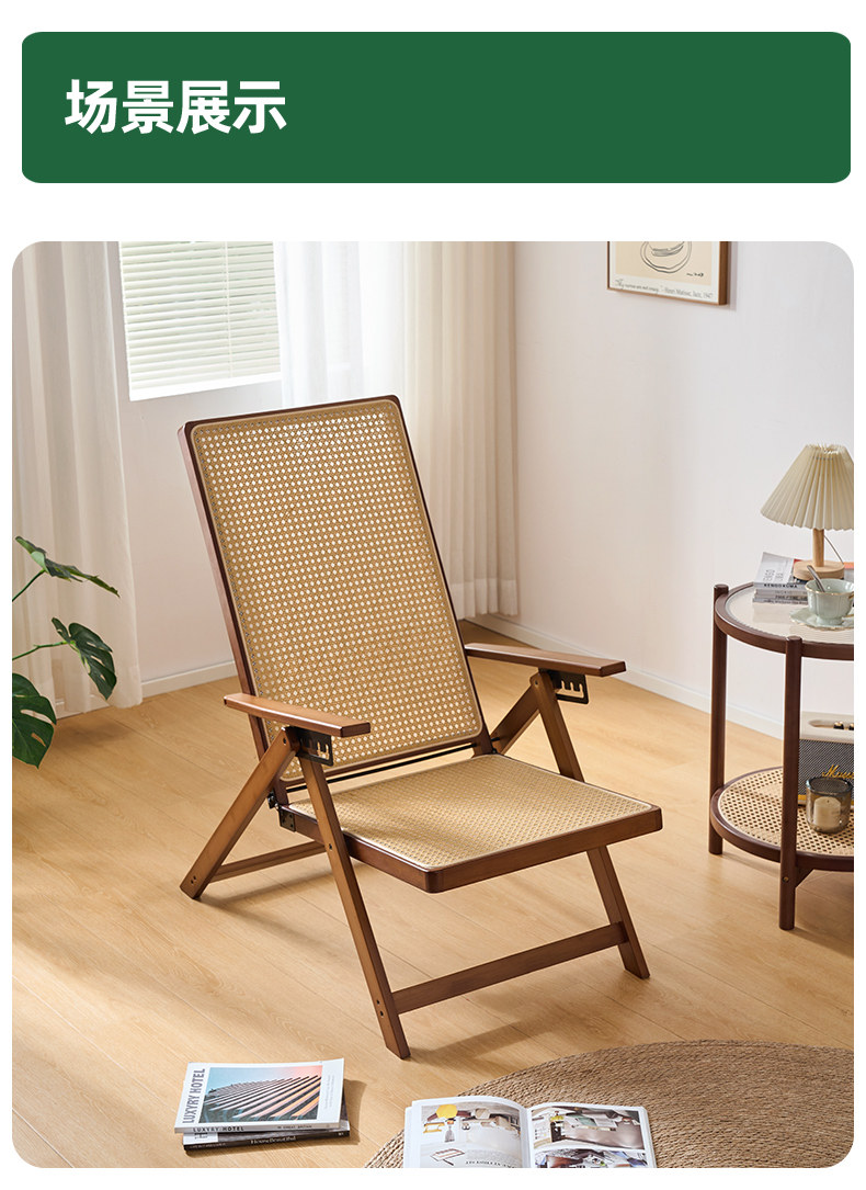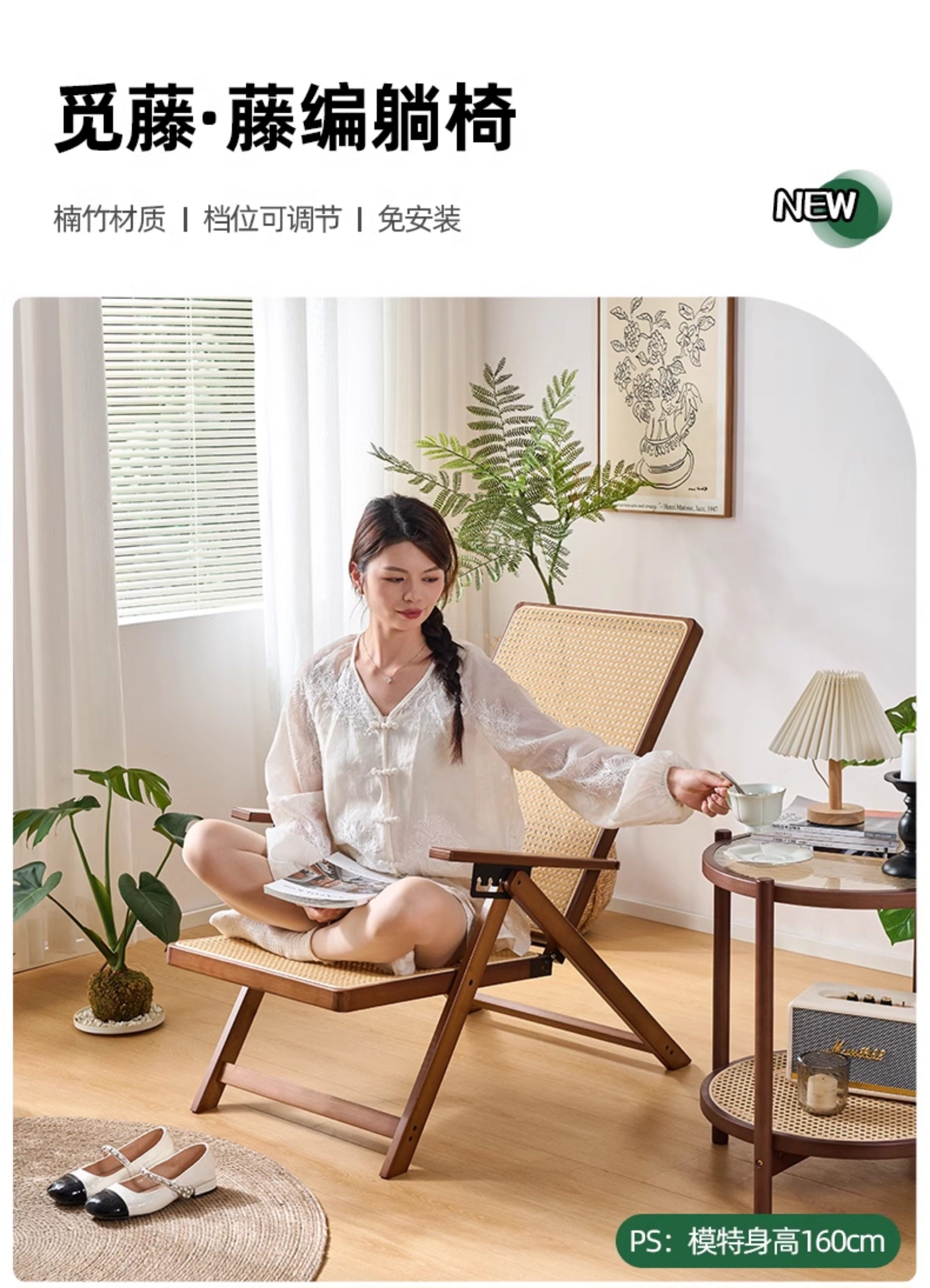 낮잠을 위한 접이식 등나무 대나무 안락의자, 앉거나 누울 수 있는 야외용 등나무 의자, 노인을 위한 튼튼하고 내구성이 뛰어난 발코니 레저 의자스토어 가기