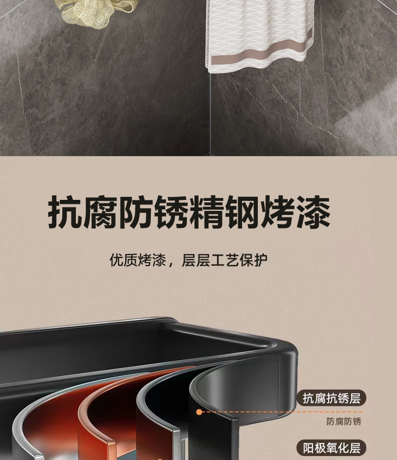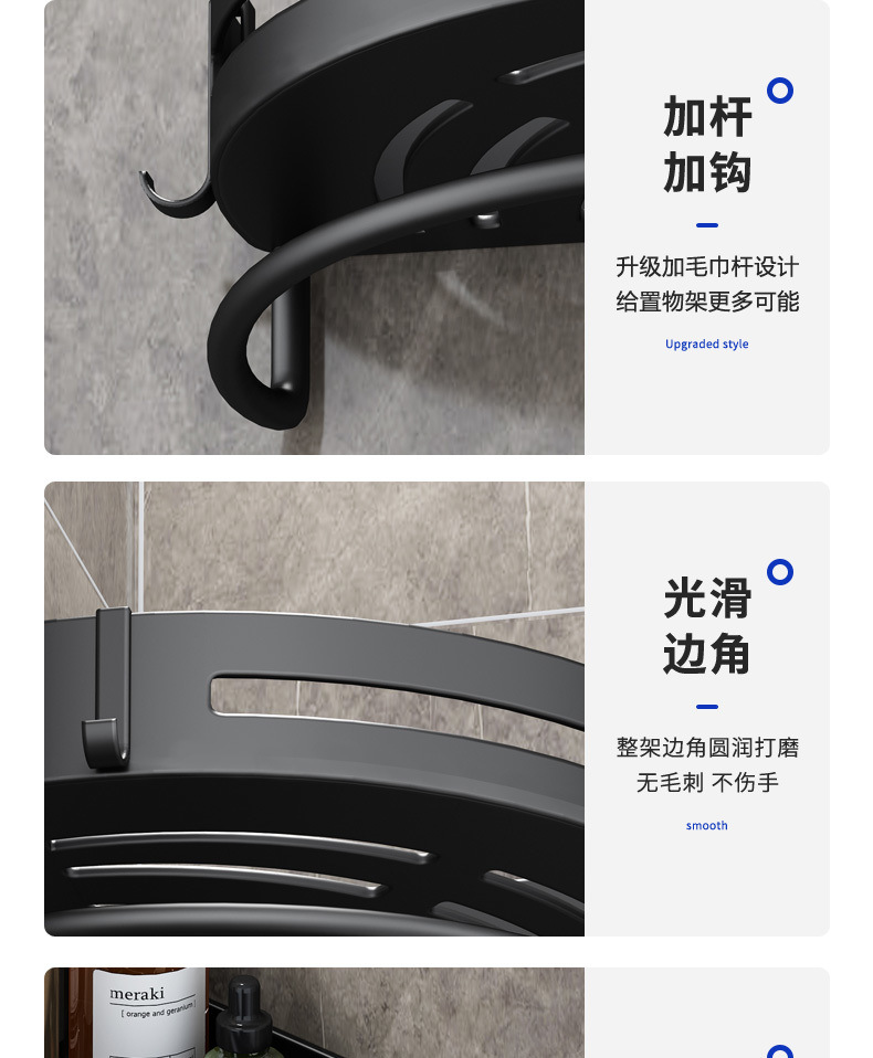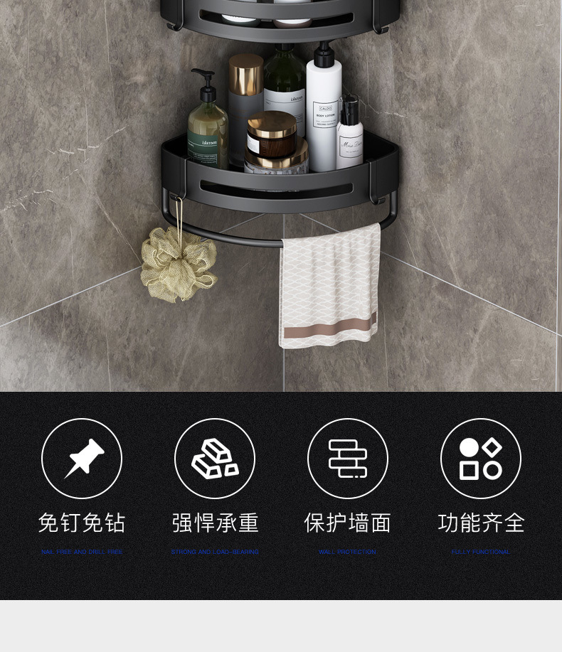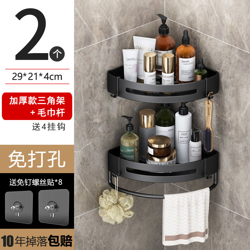 • 확대되고 두꺼워진 삼각대[1세트] + 수건걸이 - 스테인레스 스틸 페인트 공정[펀칭 없음] 수납선반