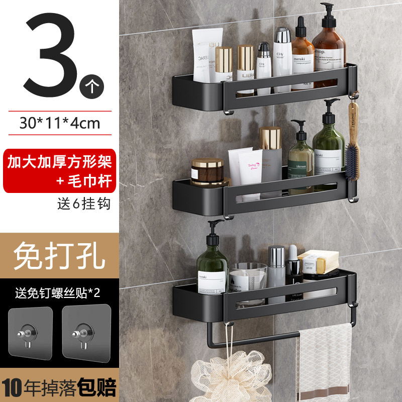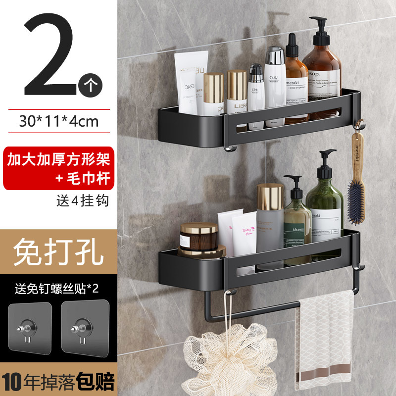 • 확대되고 두꺼워진 사각선반[1세트] + 수건걸이 - 스테인레스 스틸 도장공정 [구멍을 뚫을 필요가 없음] 수납선반