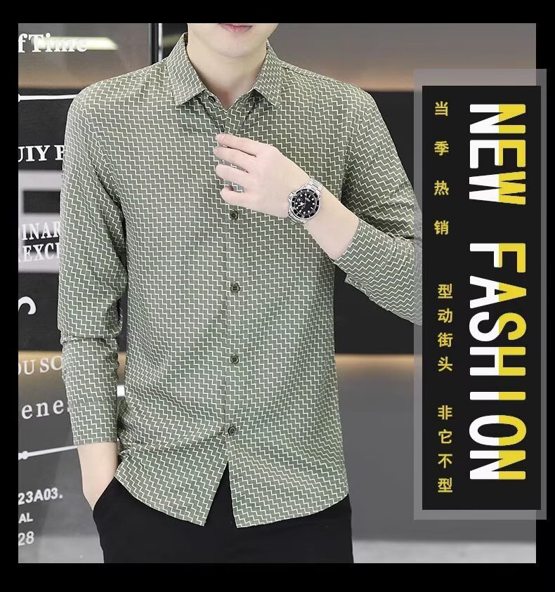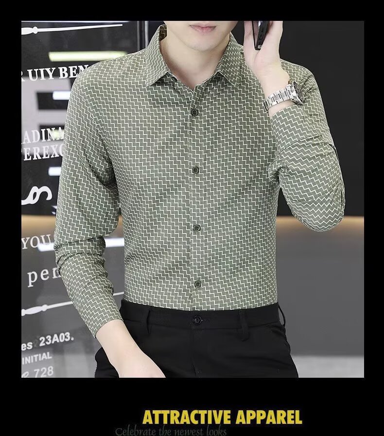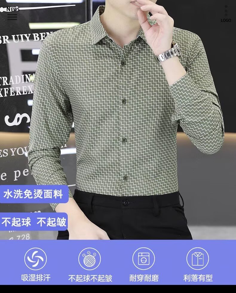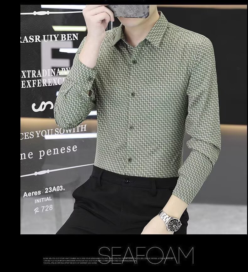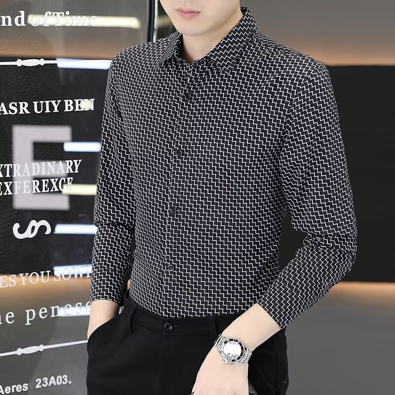 남성용 긴팔 셔츠, 노아이론 주름 방지 봄, 가을 물떼새 격자 셔츠, 비즈니스 트렌디 슬림 프린트 인치 셔츠, 남성복스토어 가기