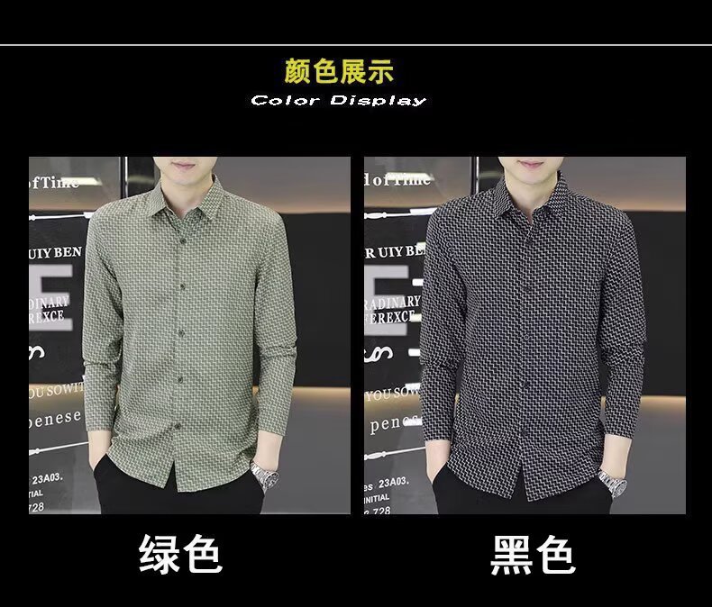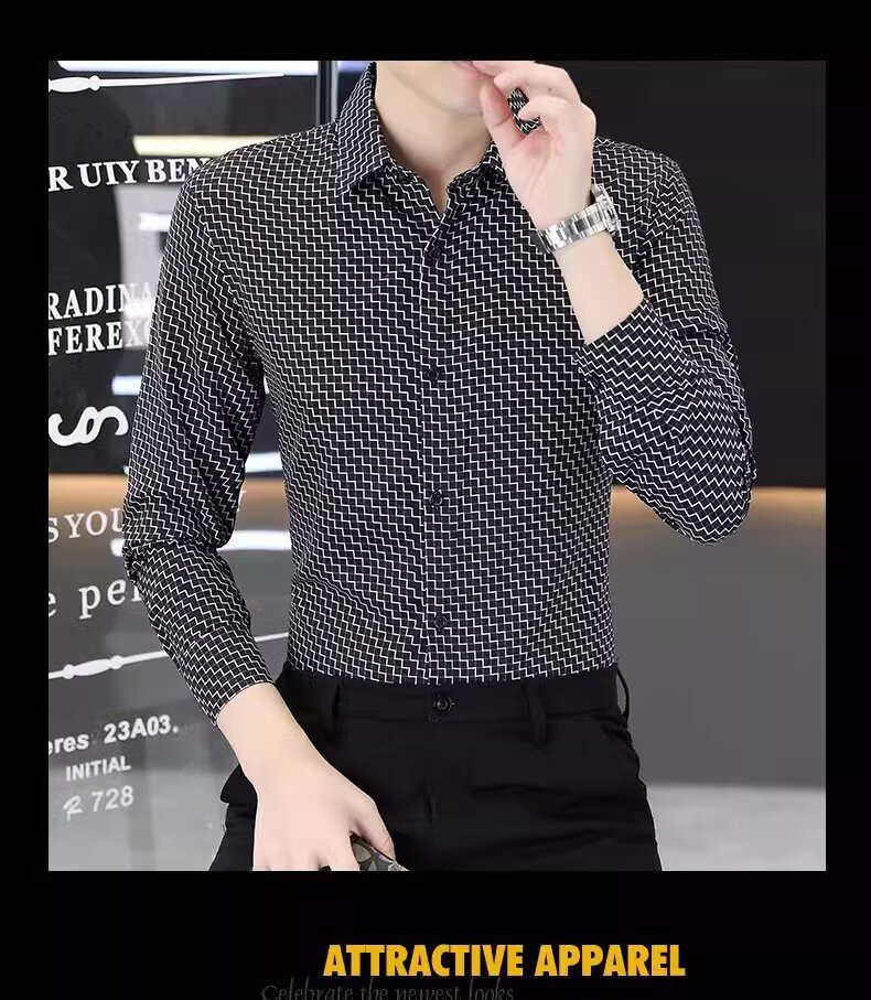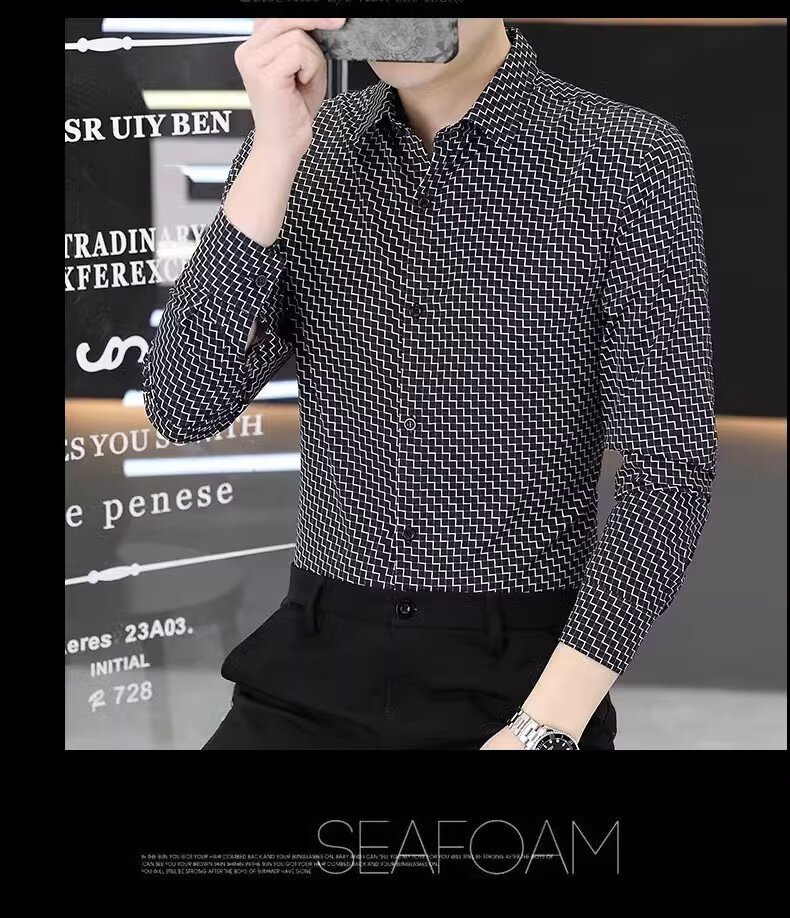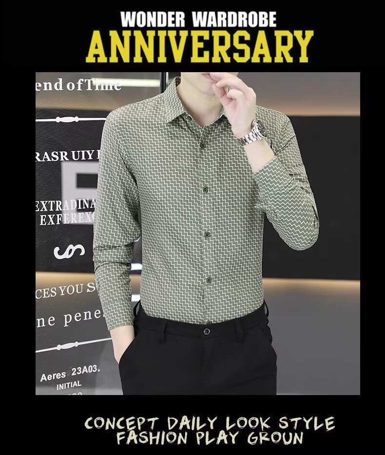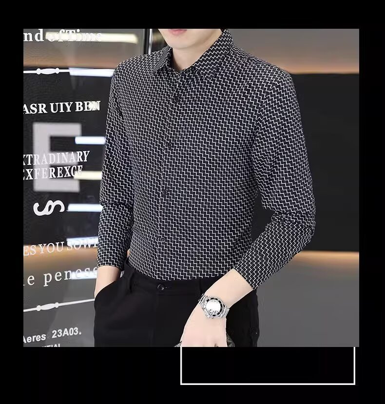 남성용 긴팔 셔츠, 노아이론 주름 방지 봄, 가을 물떼새 격자 셔츠, 비즈니스 트렌디 슬림 프린트 인치 셔츠, 남성복스토어 가기