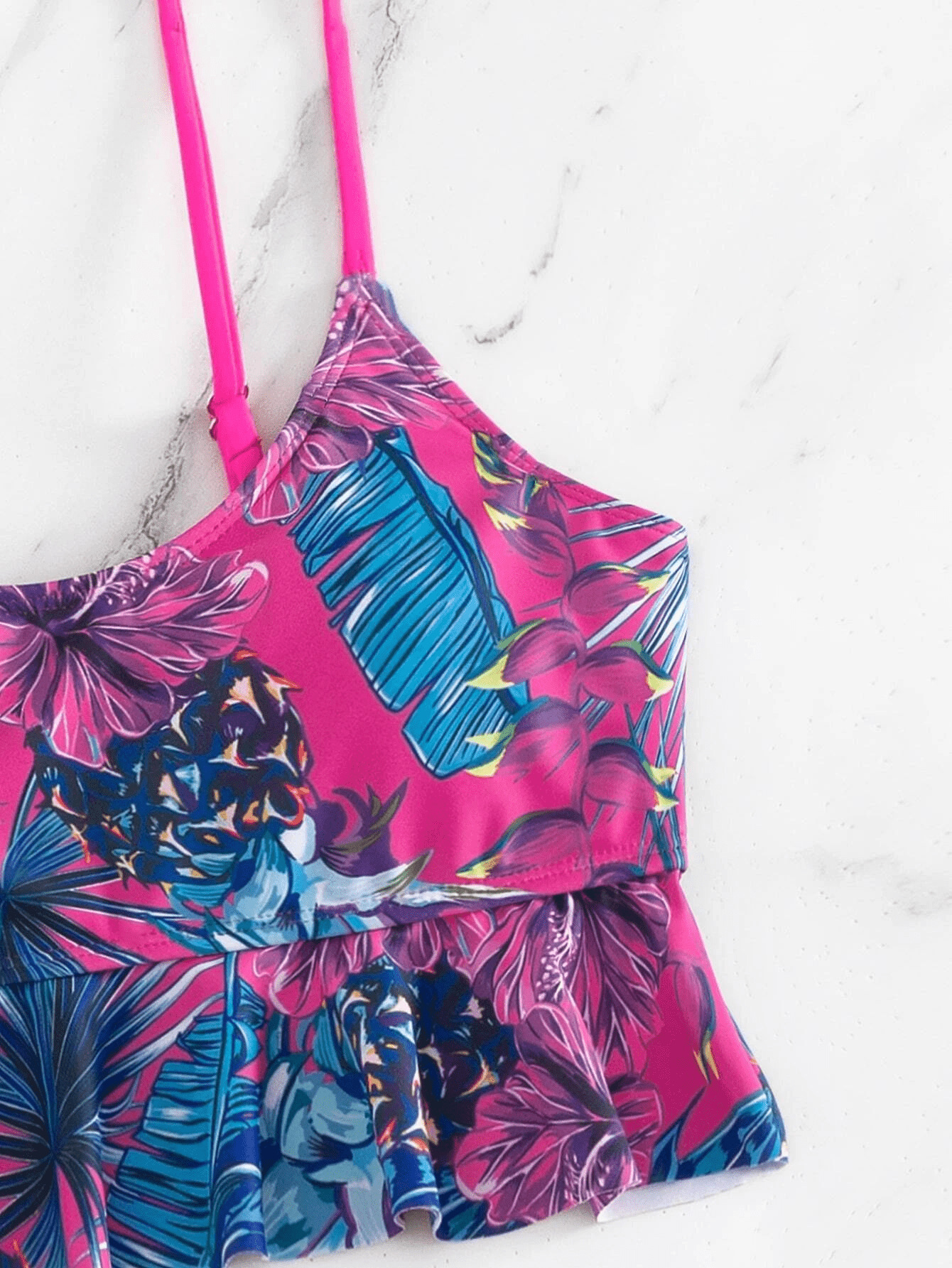 2024 유럽과 미국의 대외 무역 꽃 수영복 여성 스플릿 투피스 프린트 복서 비키니 BIKINI 크로스 보더 수영복스토어 가기