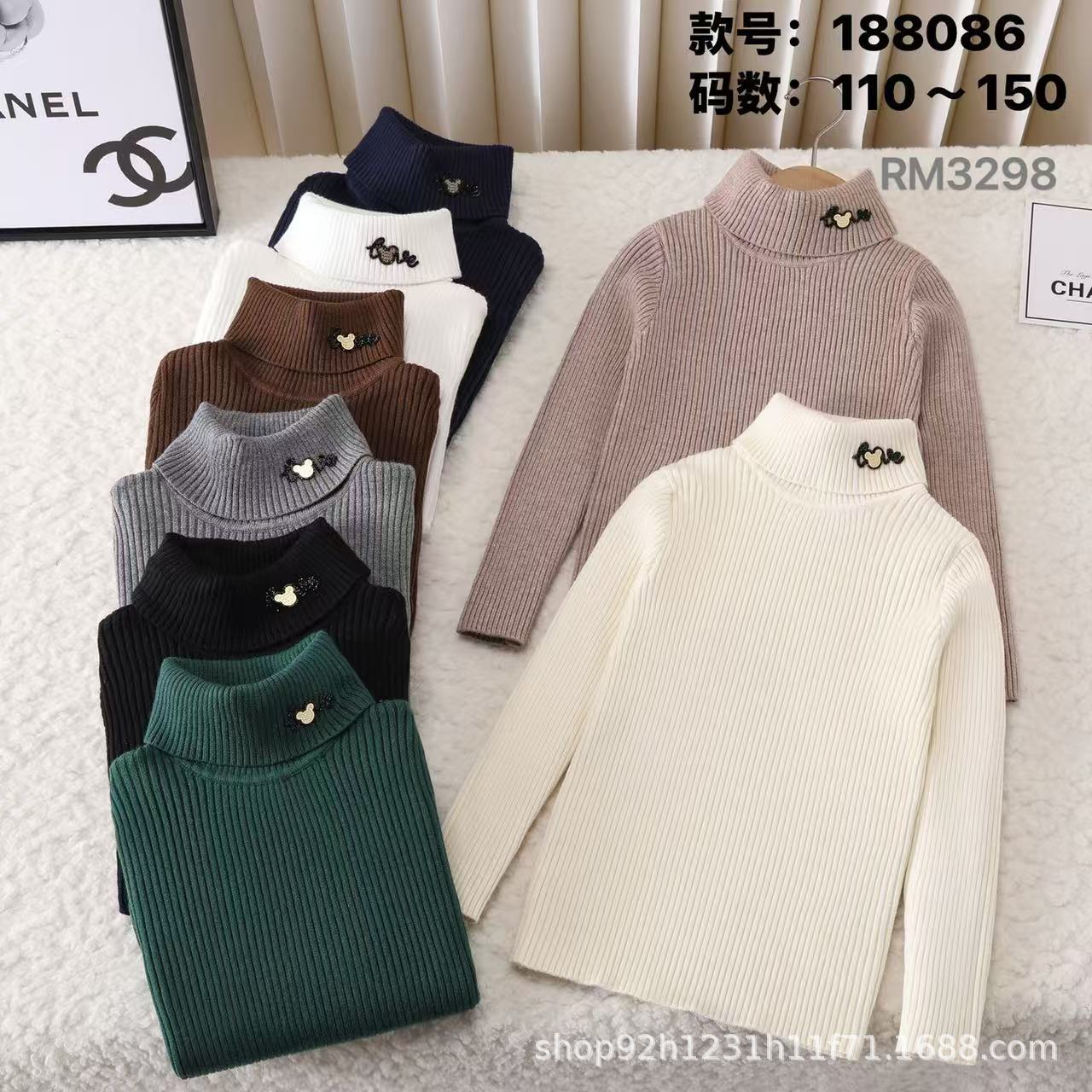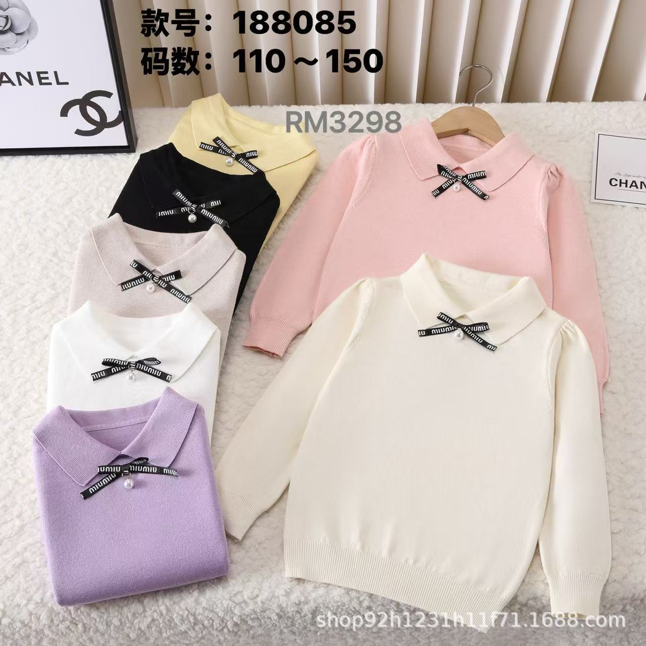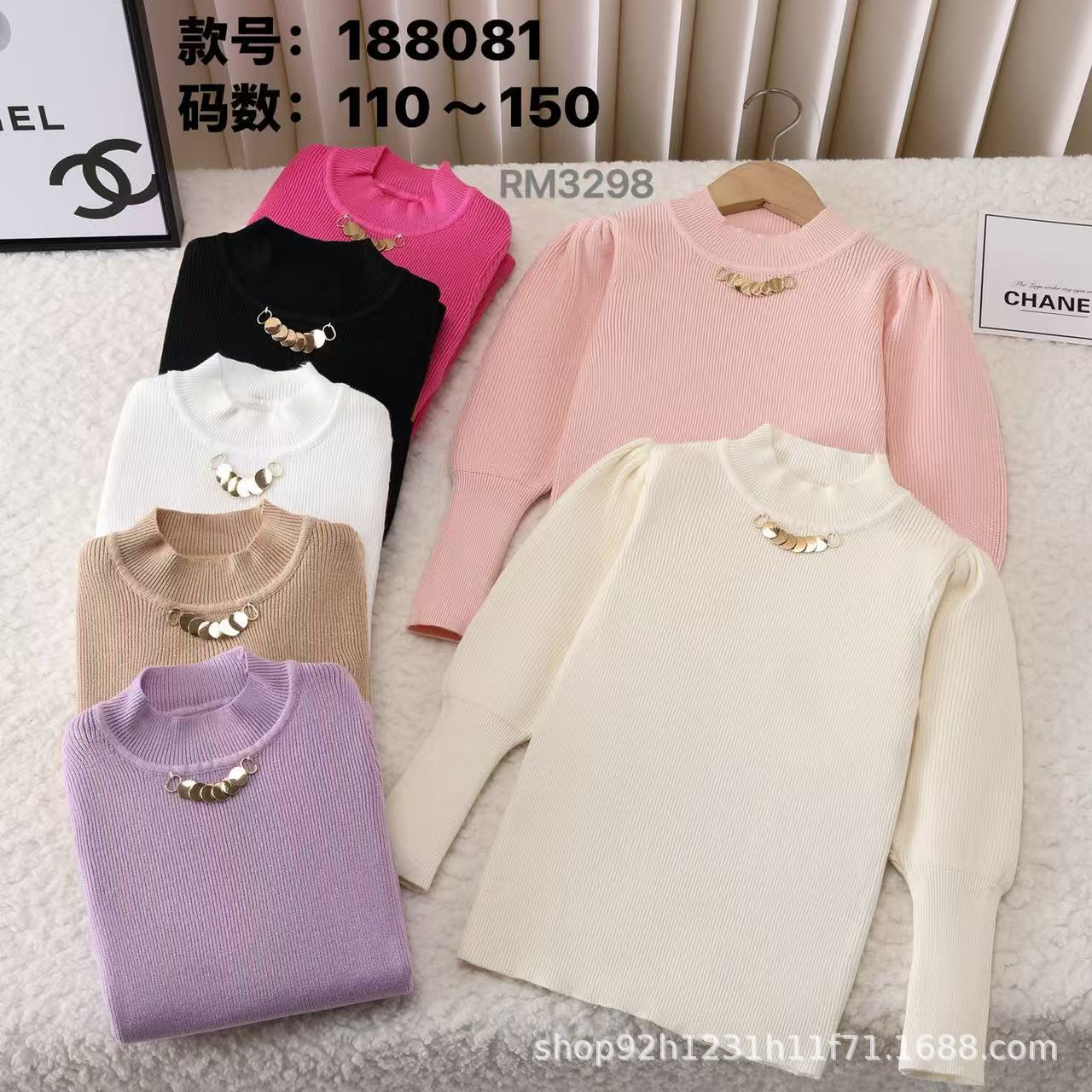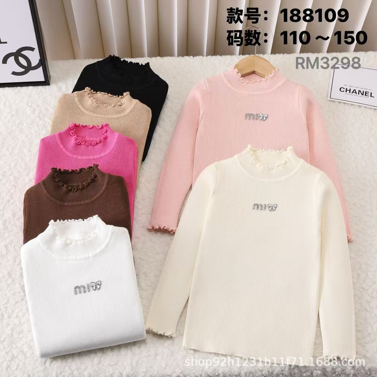 2025 중소형 여아용 단색 라운드 넥 바닥 셔츠, 단색 바닥 셔츠, 스웨터, 트렌디한 스타일, 현장 공장 직접 판매 및 도매스토어 가기