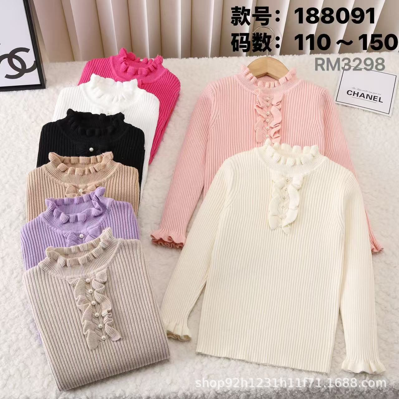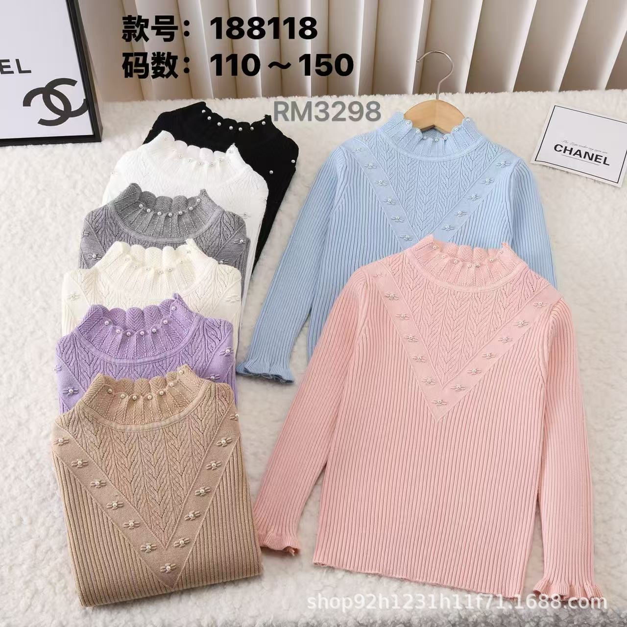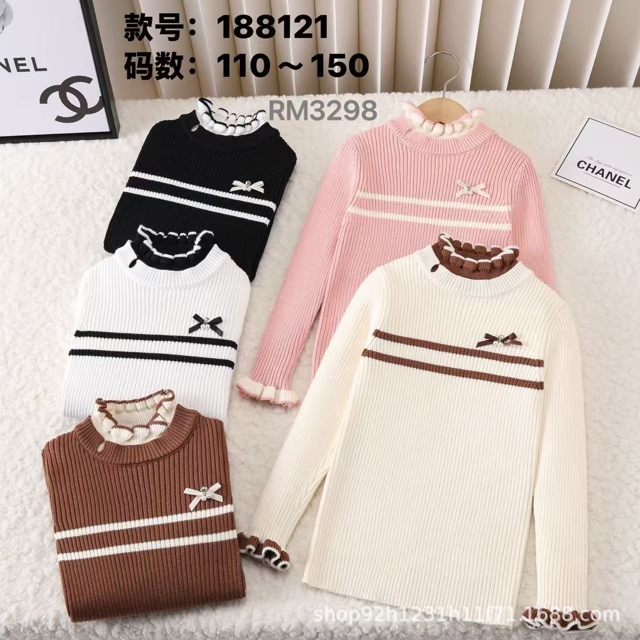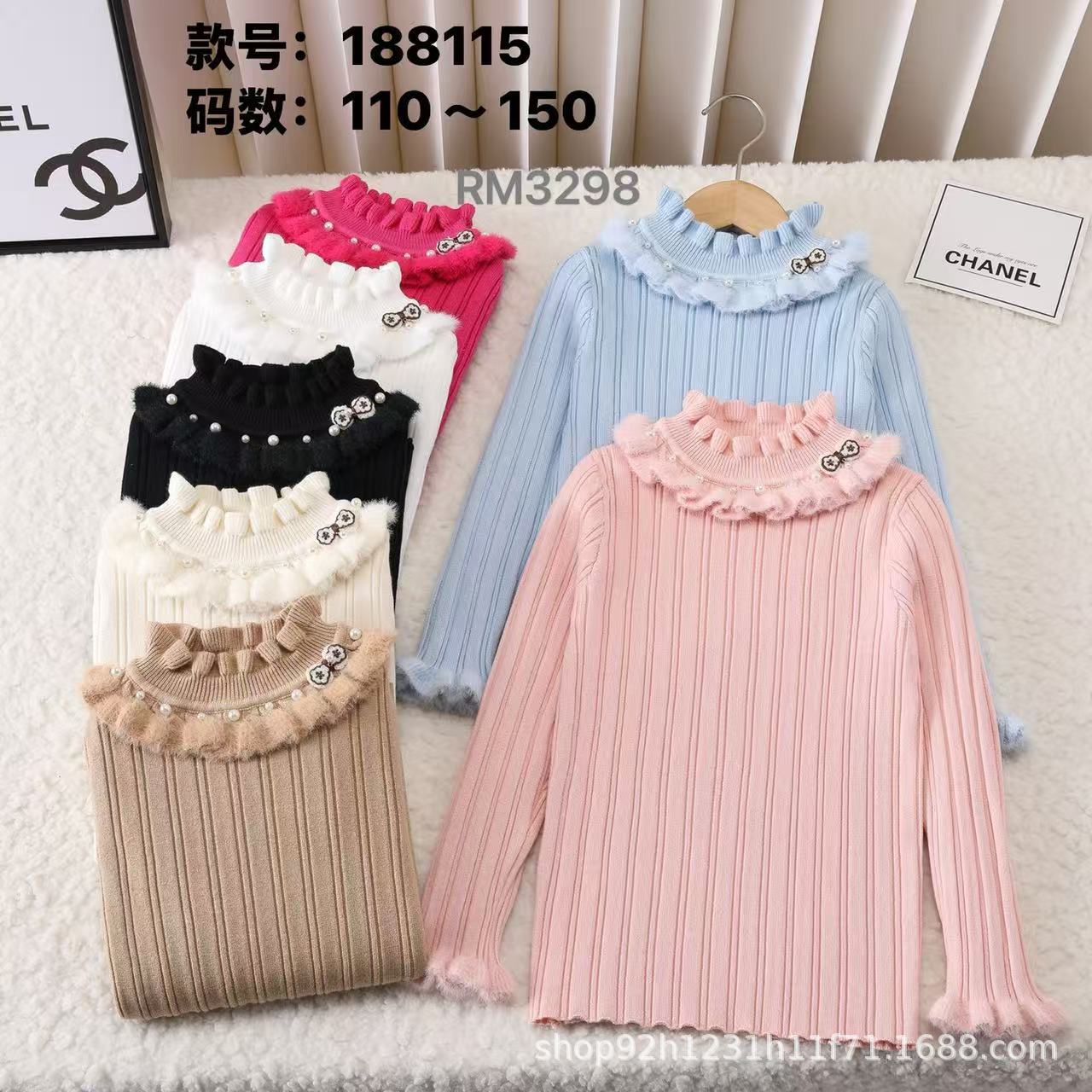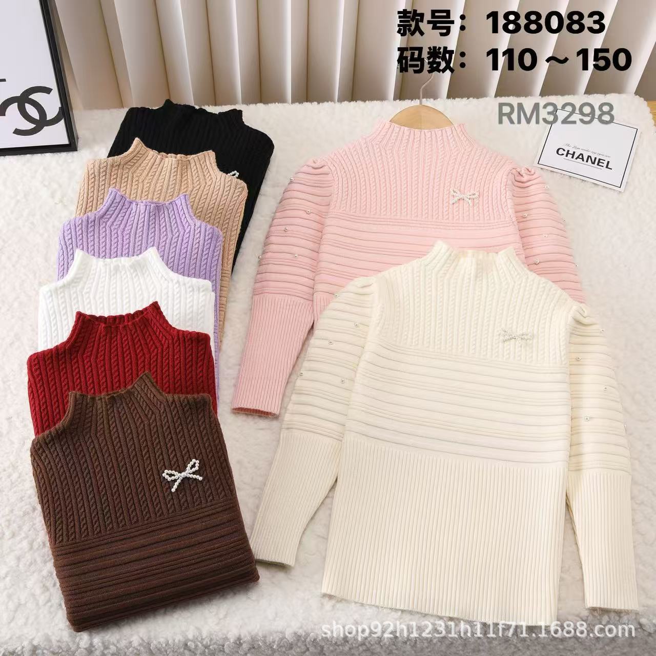 2025 중소형 여아용 단색 라운드 넥 바닥 셔츠, 단색 바닥 셔츠, 스웨터, 트렌디한 스타일, 현장 공장 직접 판매 및 도매스토어 가기
