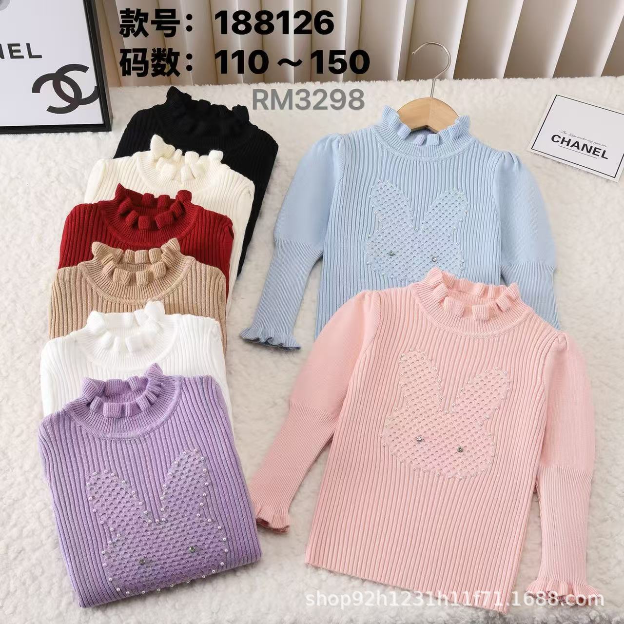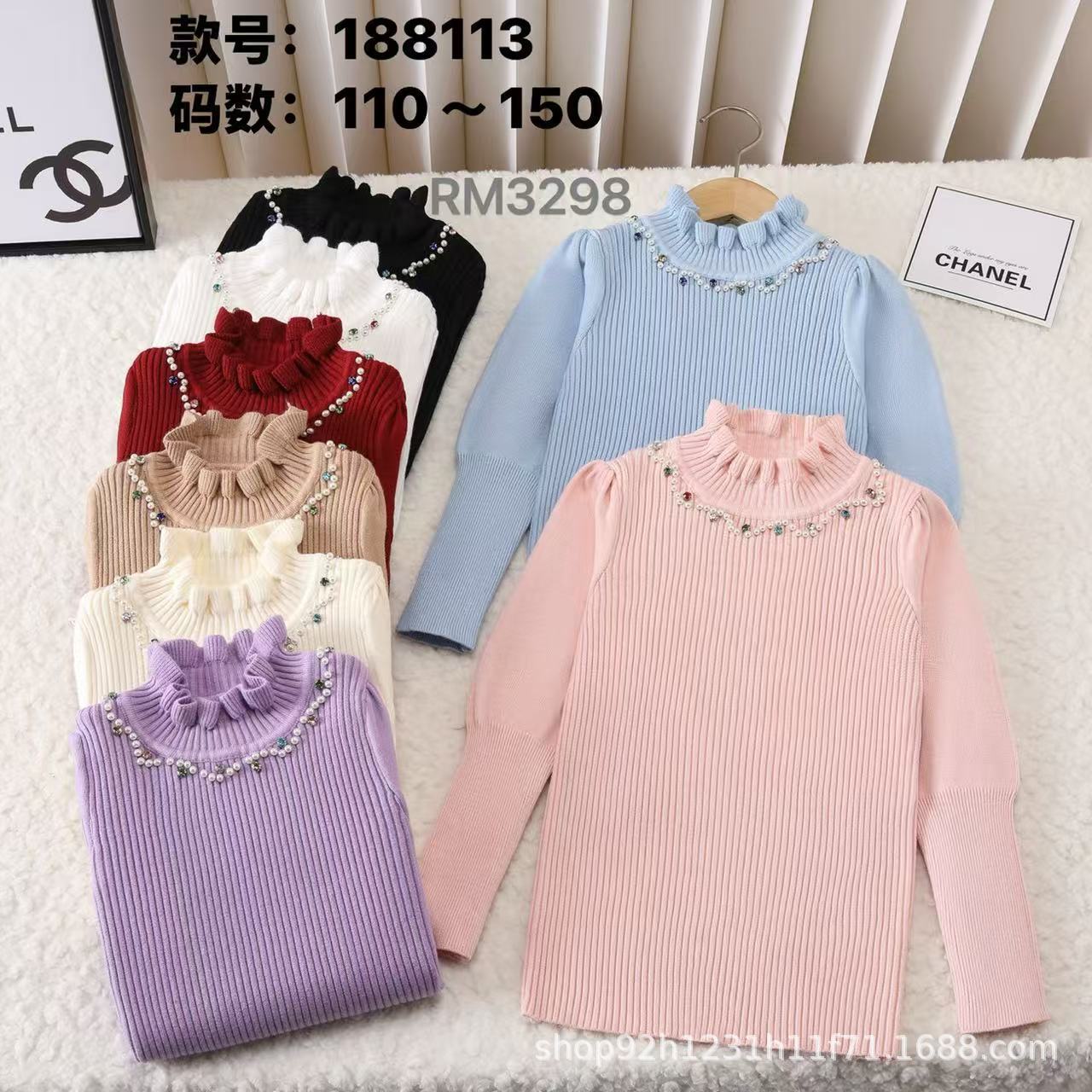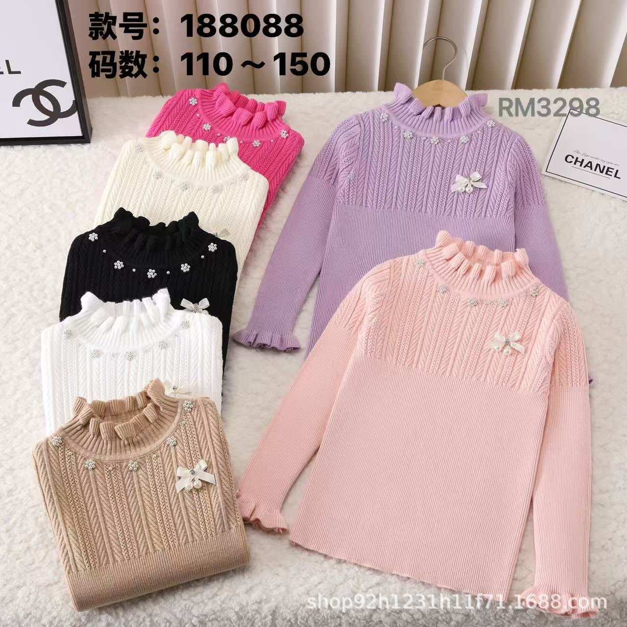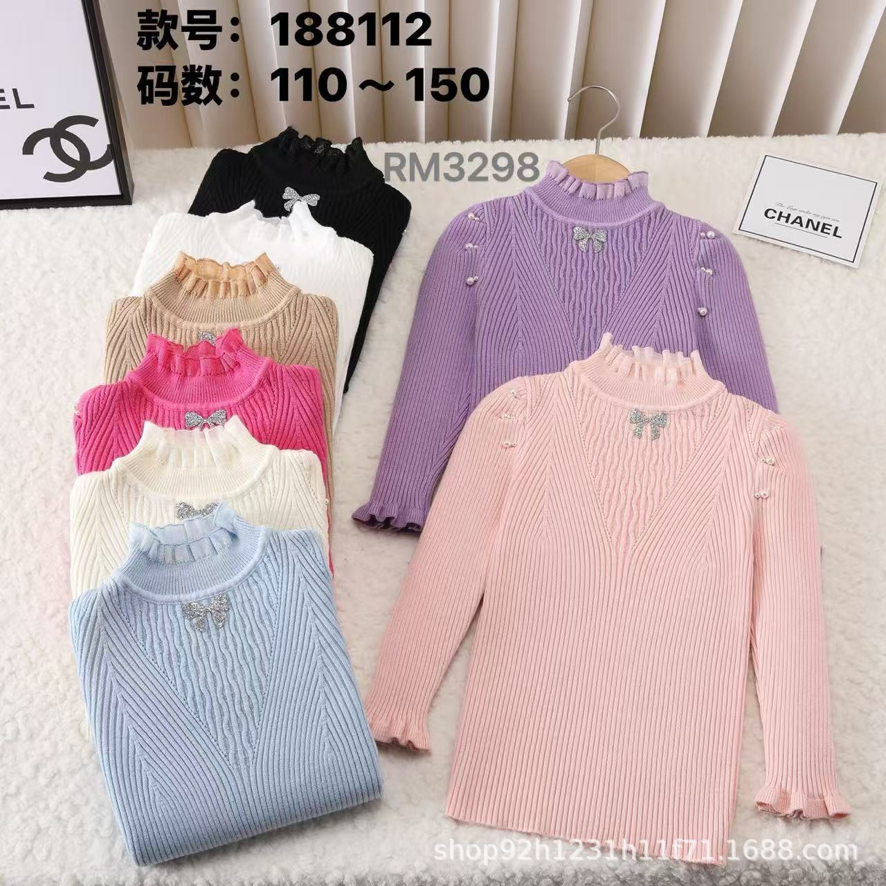 2025 중소형 여아용 단색 라운드 넥 바닥 셔츠, 단색 바닥 셔츠, 스웨터, 트렌디한 스타일, 현장 공장 직접 판매 및 도매스토어 가기