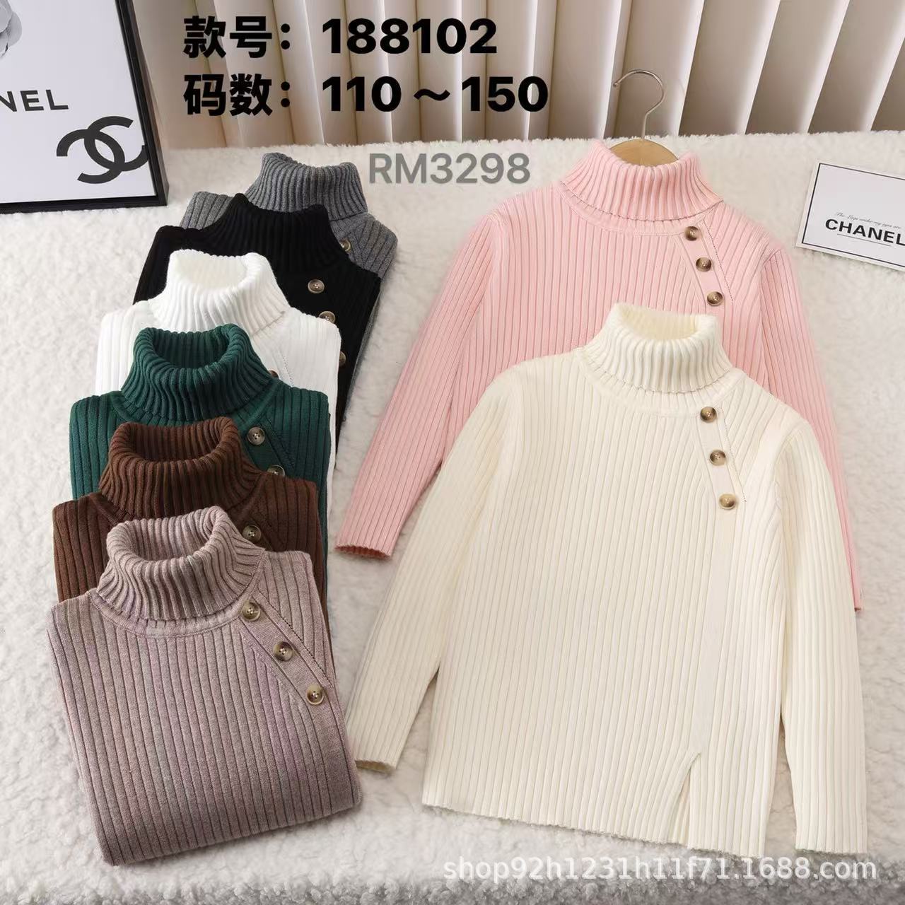 2025 중소형 여아용 단색 라운드 넥 바닥 셔츠, 단색 바닥 셔츠, 스웨터, 트렌디한 스타일, 현장 공장 직접 판매 및 도매