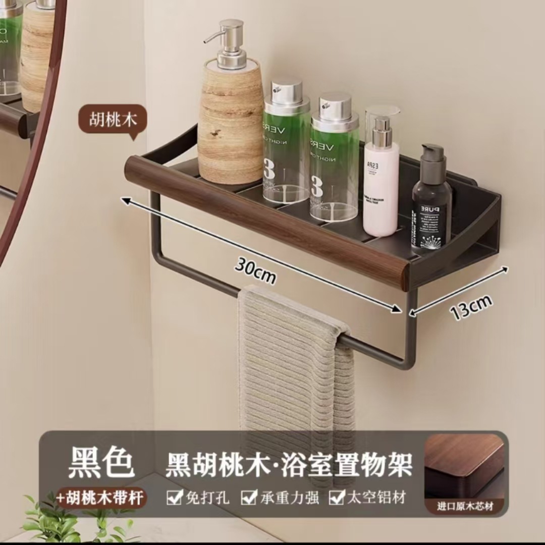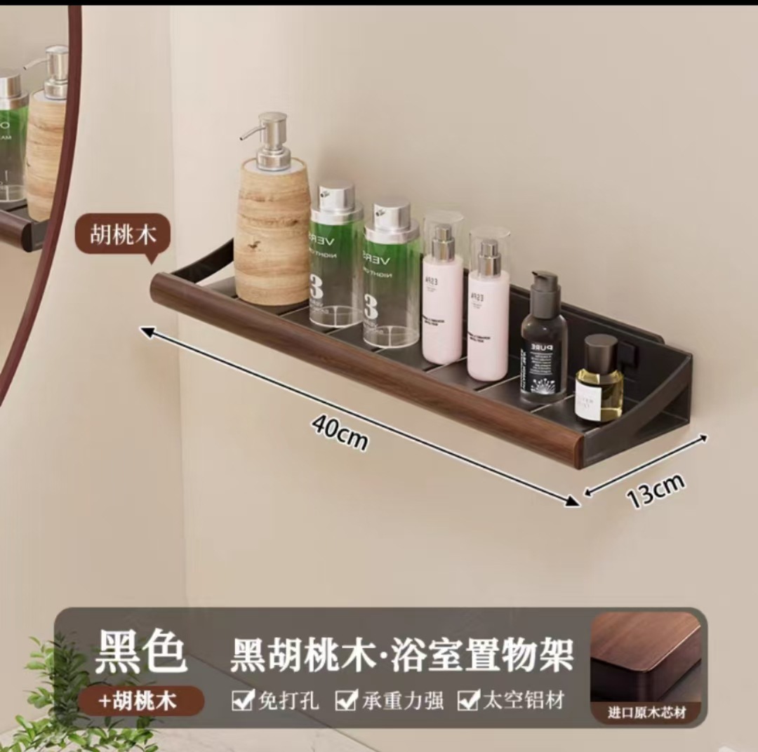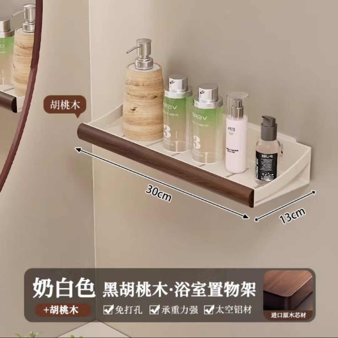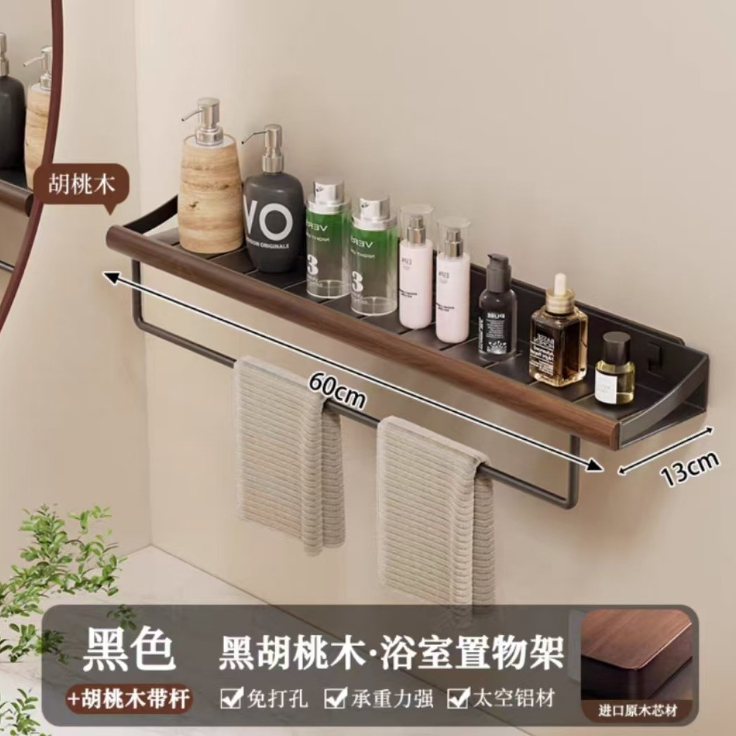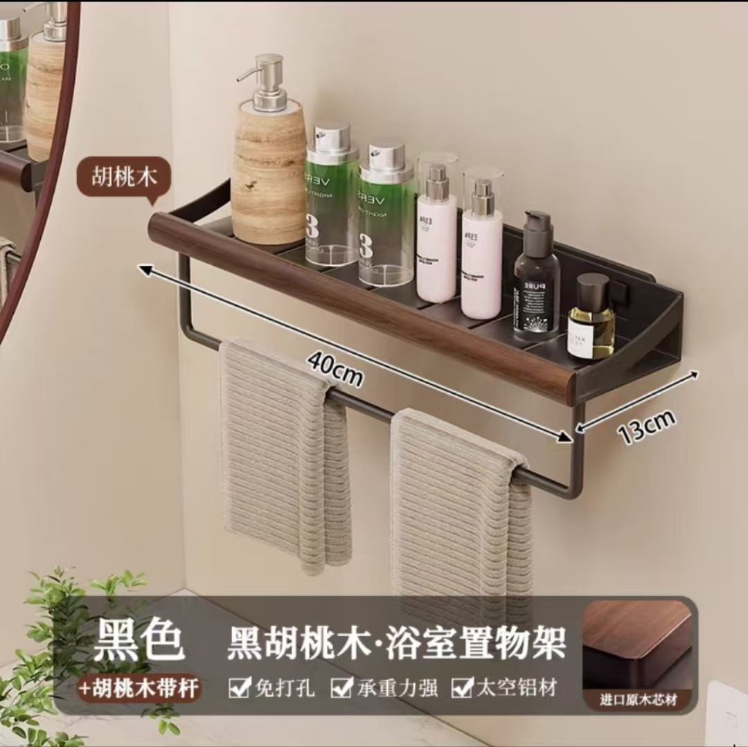 구멍이 없는 호두나무 욕실 수납 선반, 중세 스타일 욕실 세면대 수납, 욕실 벽걸이 선반스토어 가기