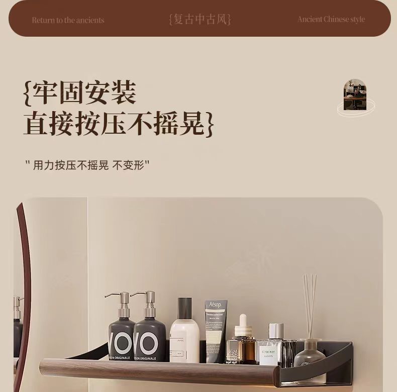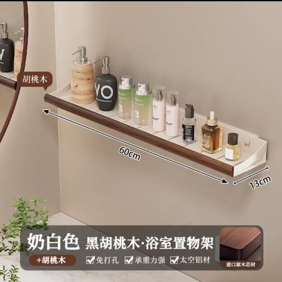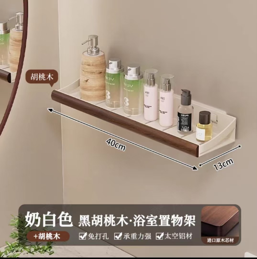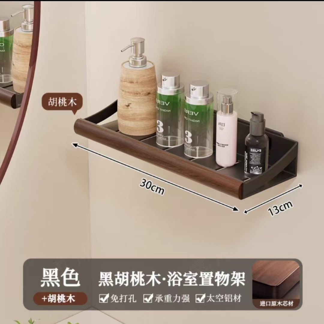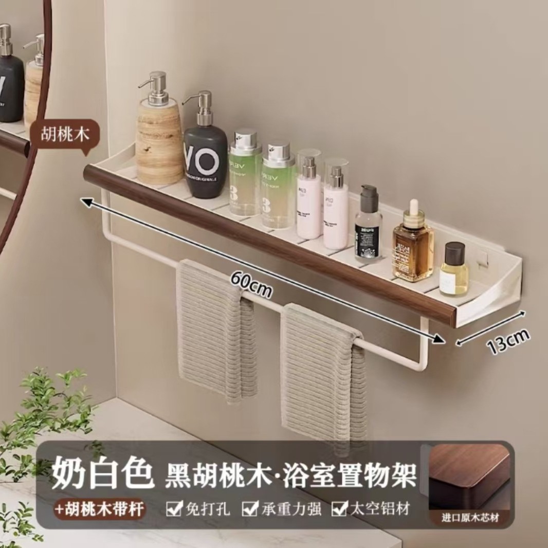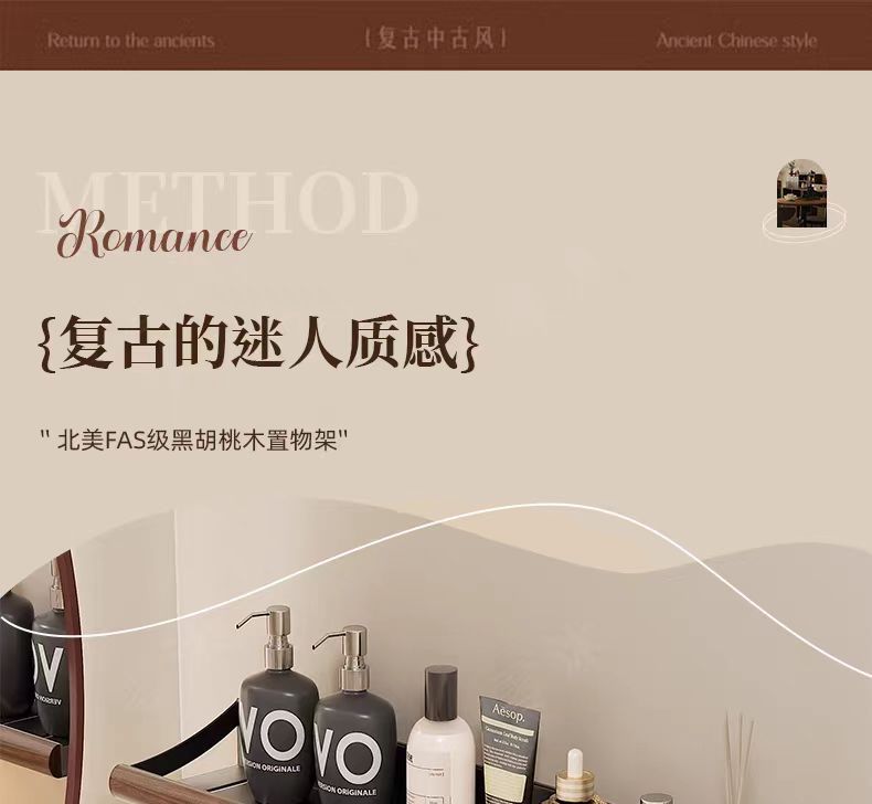 구멍이 없는 호두나무 욕실 수납 선반, 중세 스타일 욕실 세면대 수납, 욕실 벽걸이 선반스토어 가기