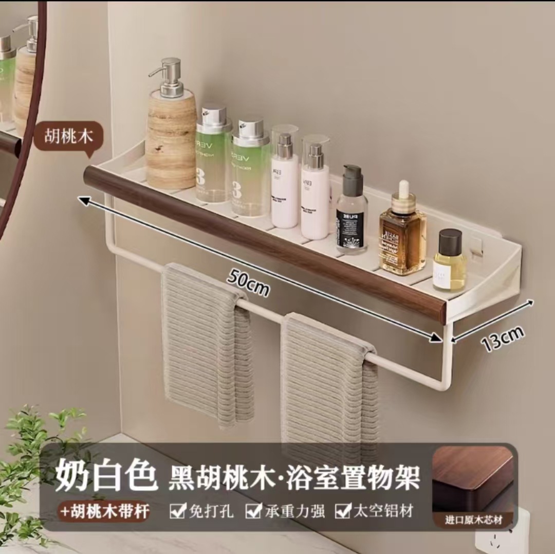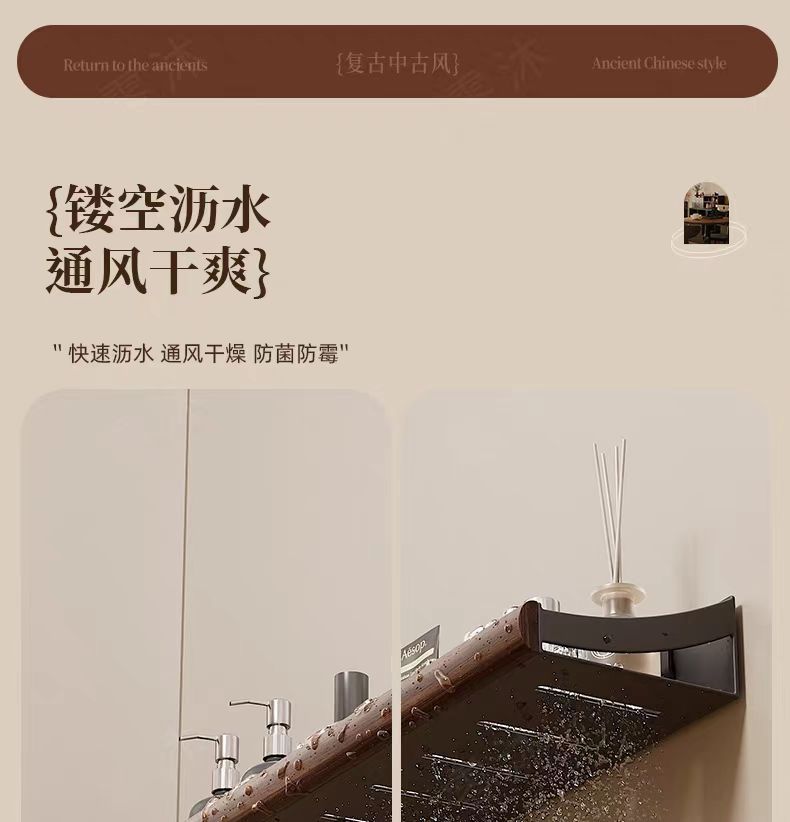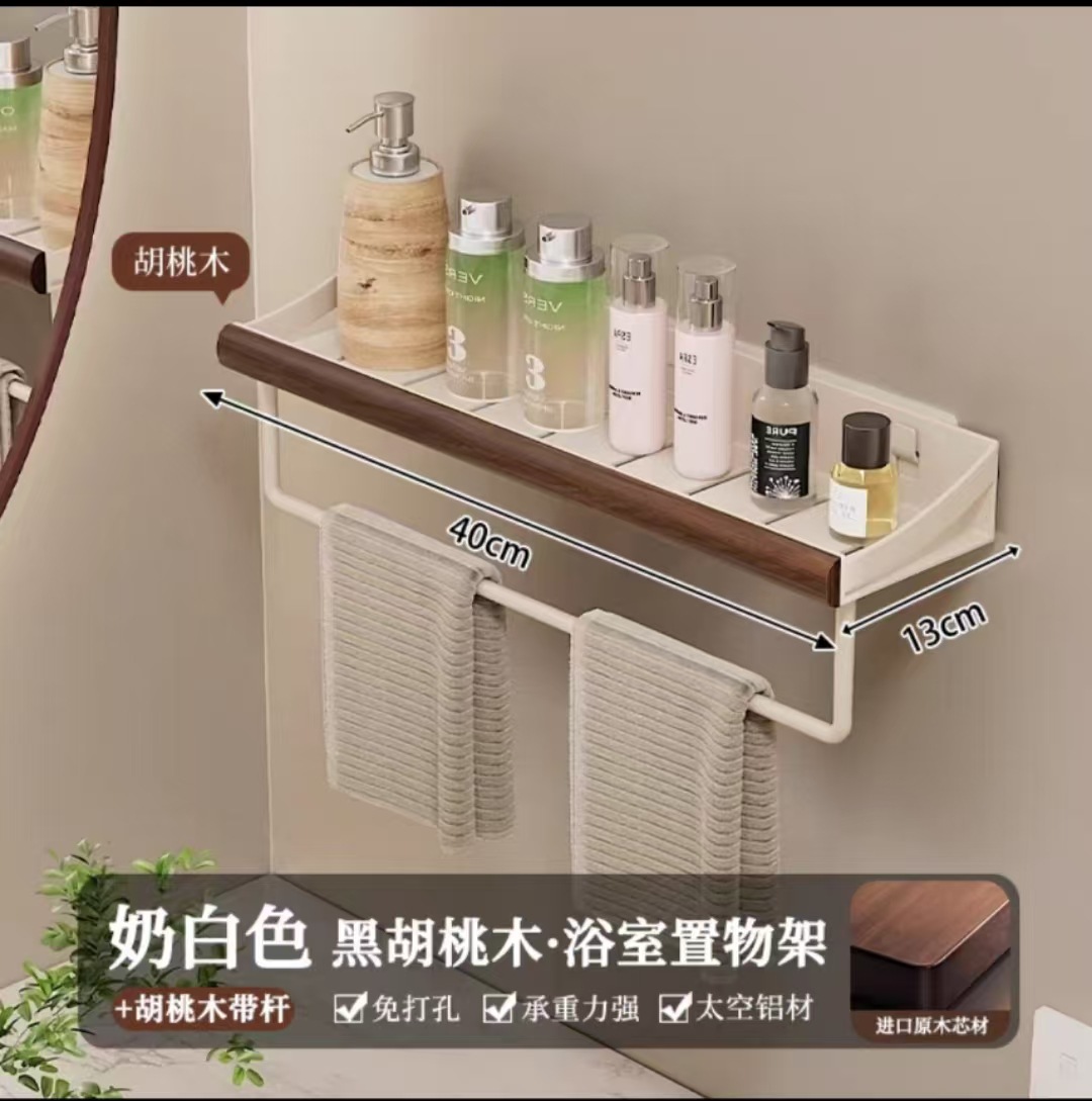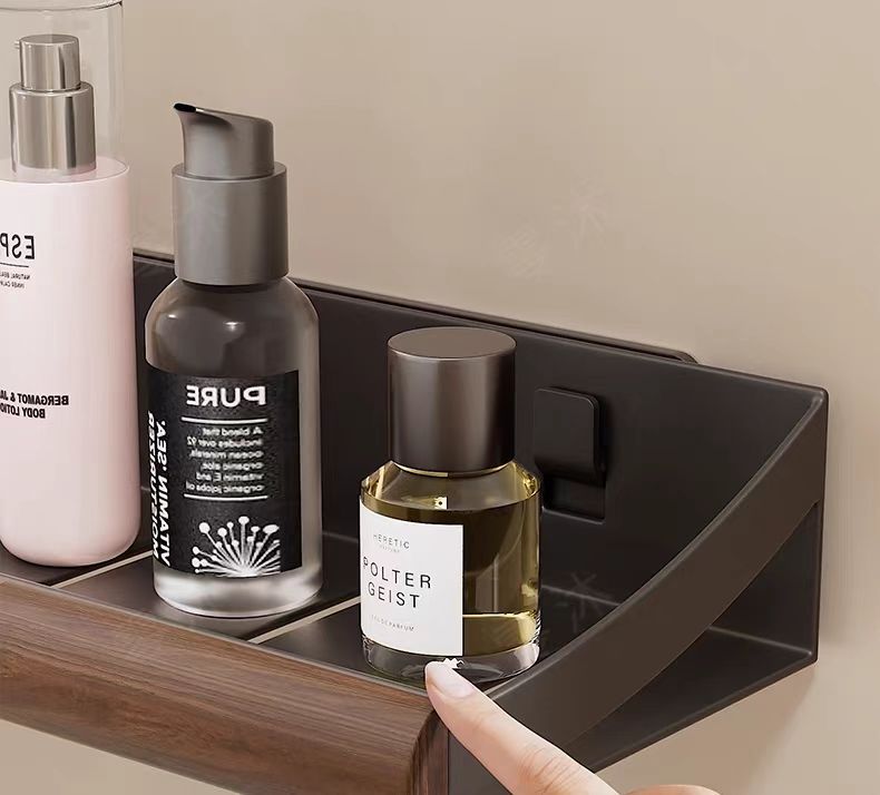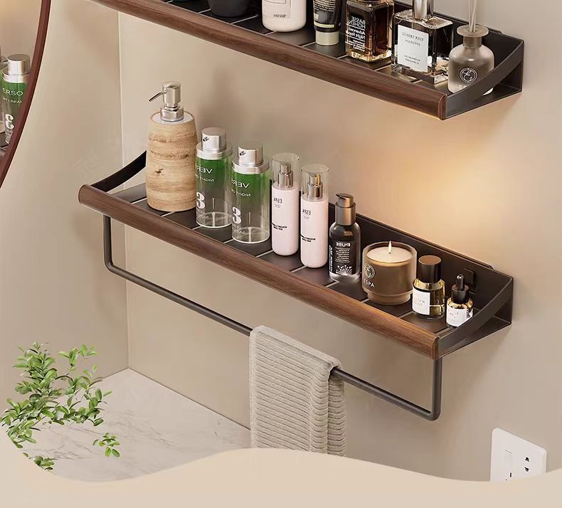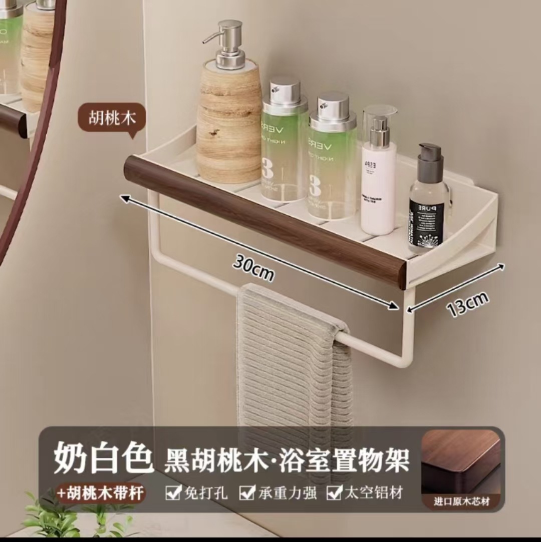 구멍이 없는 호두나무 욕실 수납 선반, 중세 스타일 욕실 세면대 수납, 욕실 벽걸이 선반스토어 가기