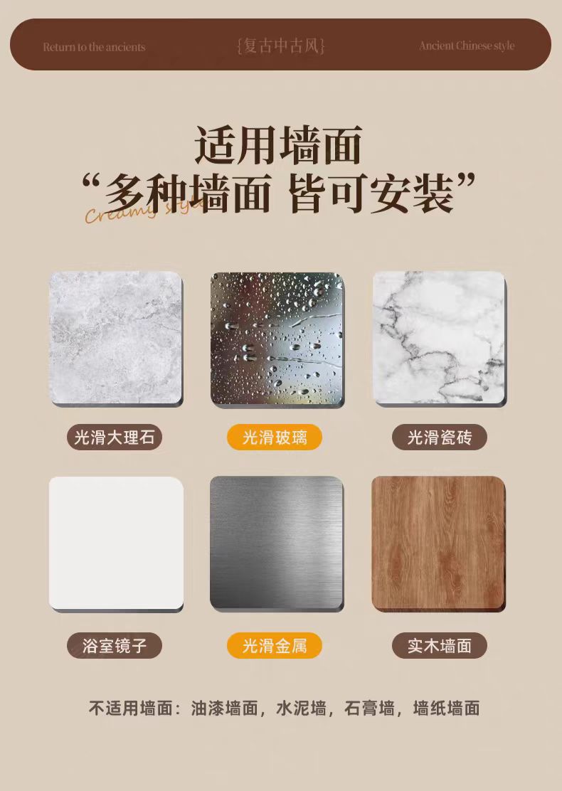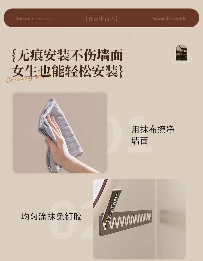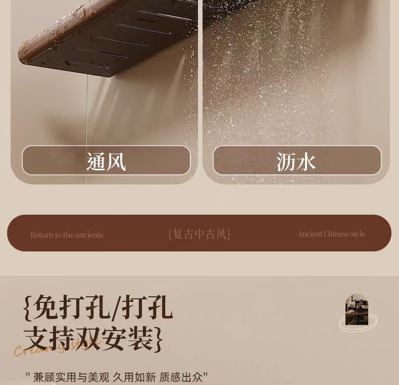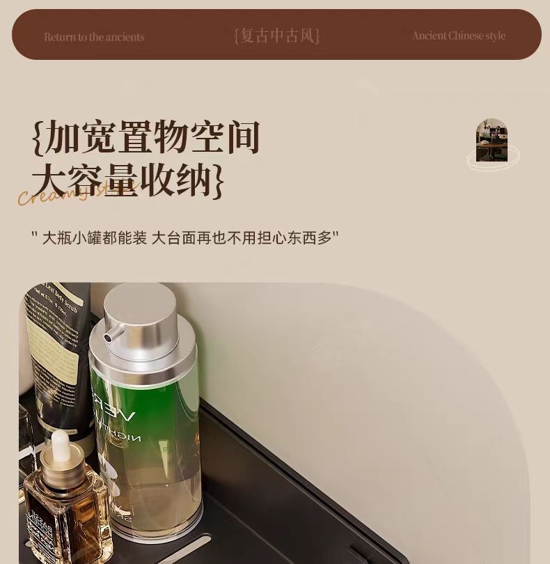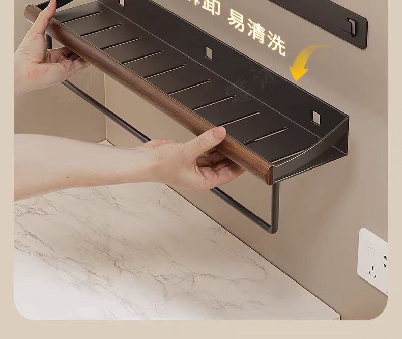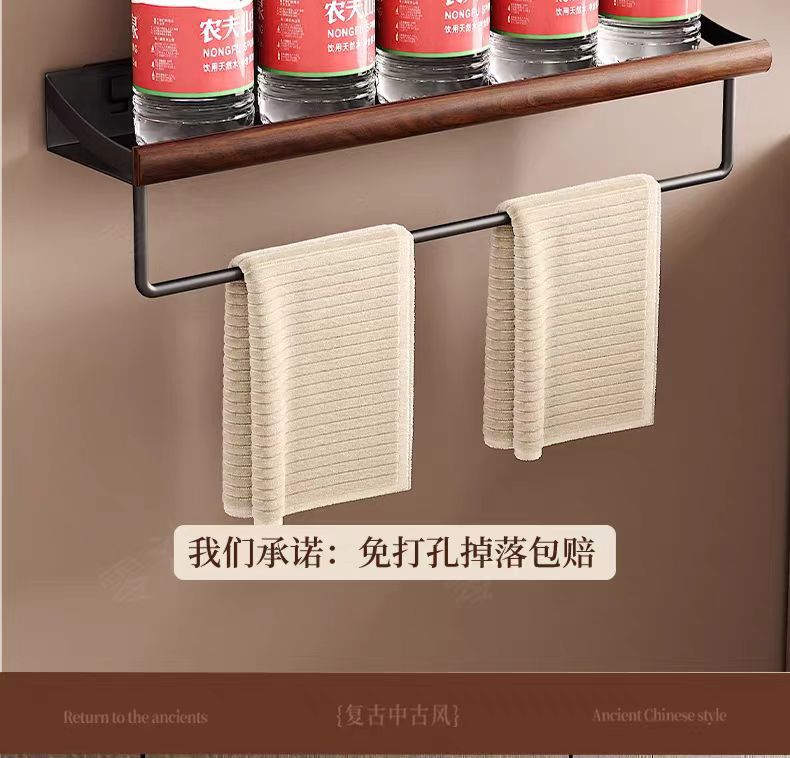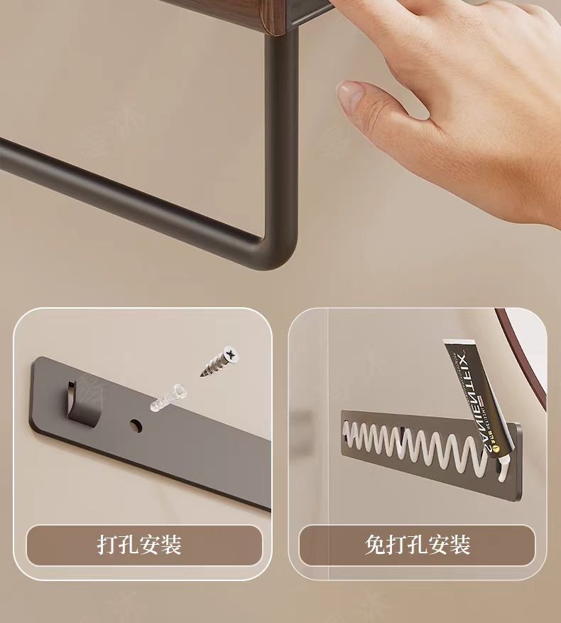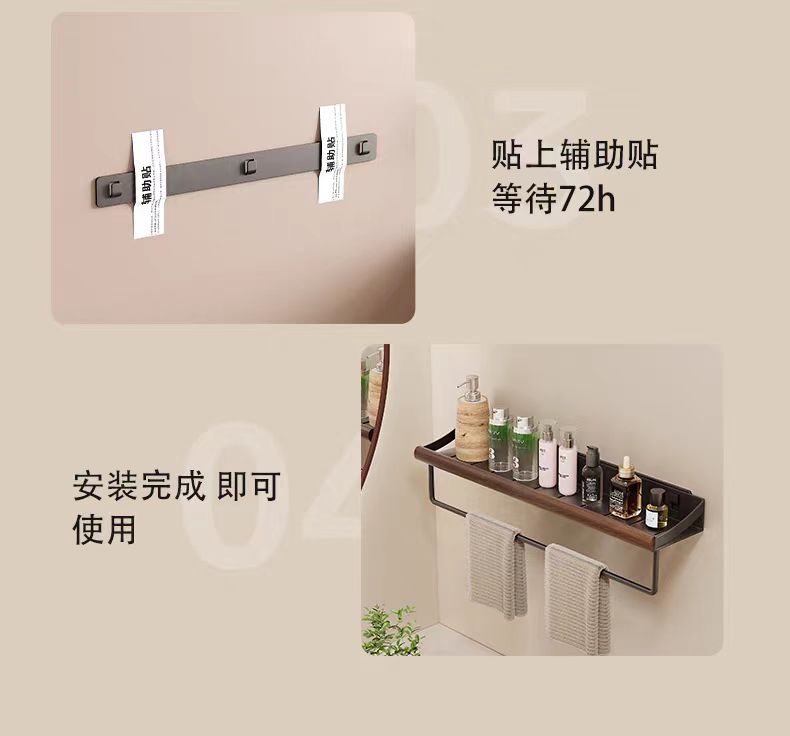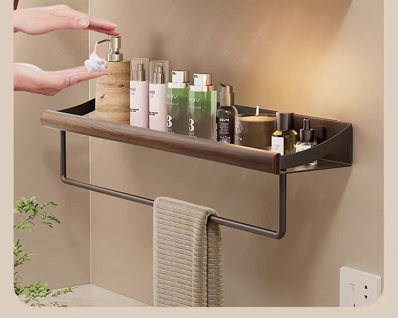 구멍이 없는 호두나무 욕실 수납 선반, 중세 스타일 욕실 세면대 수납, 욕실 벽걸이 선반스토어 가기