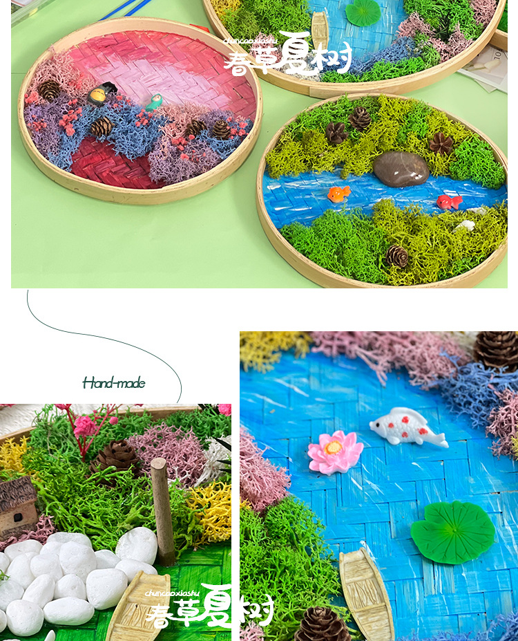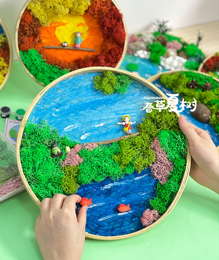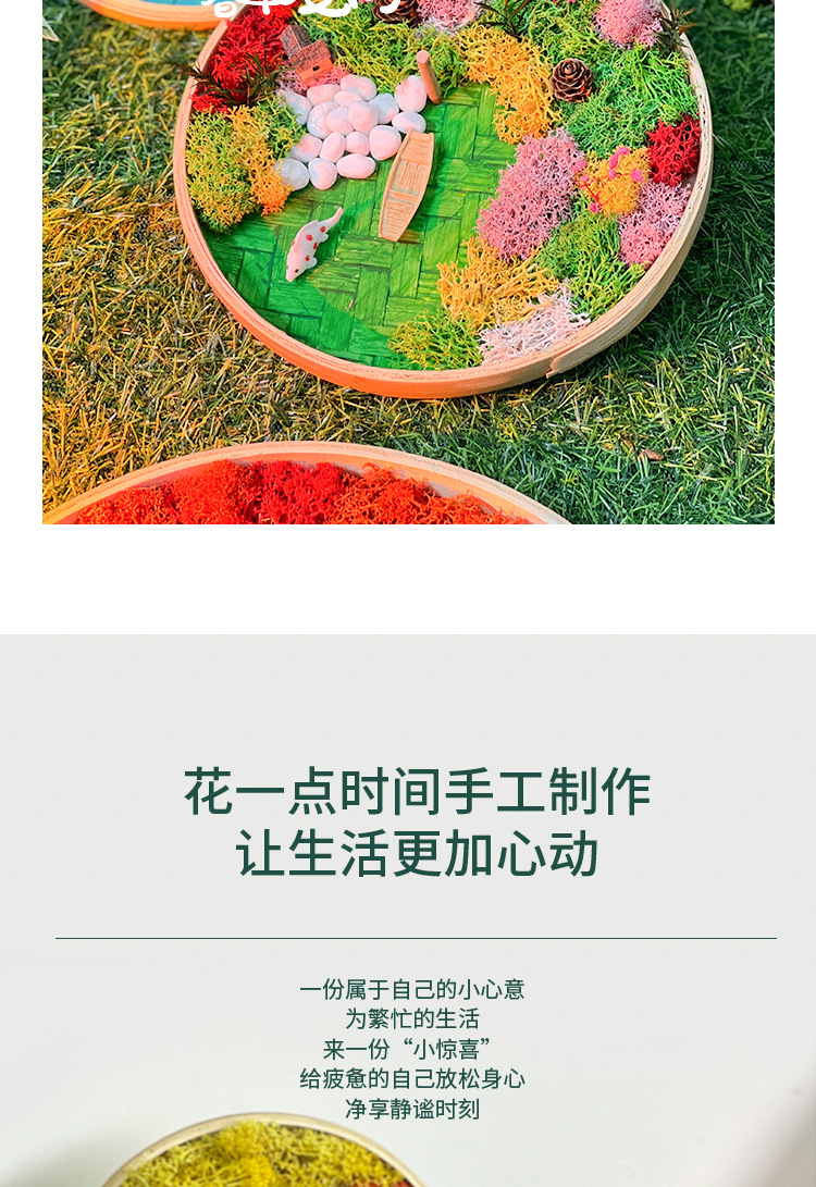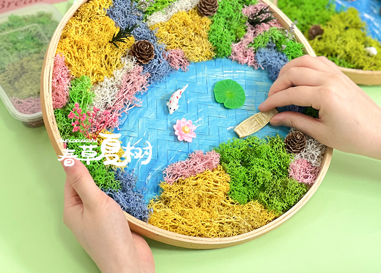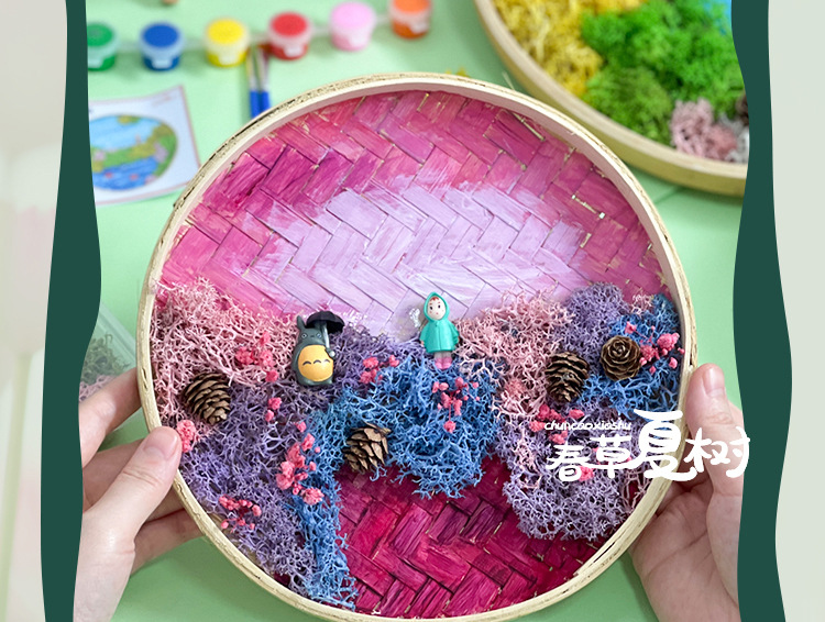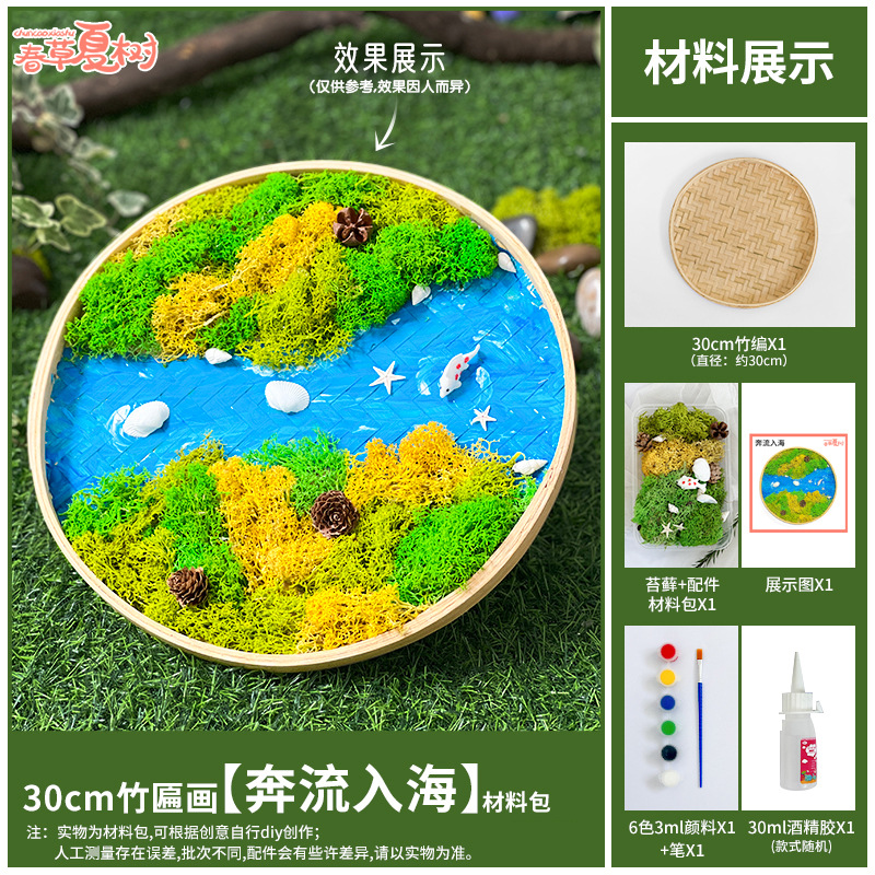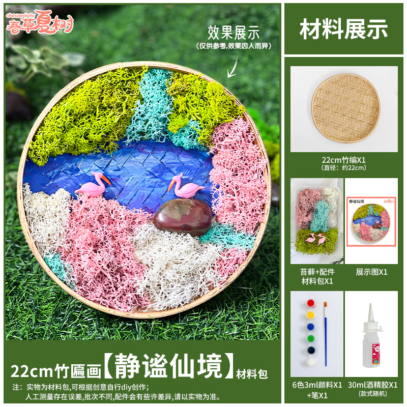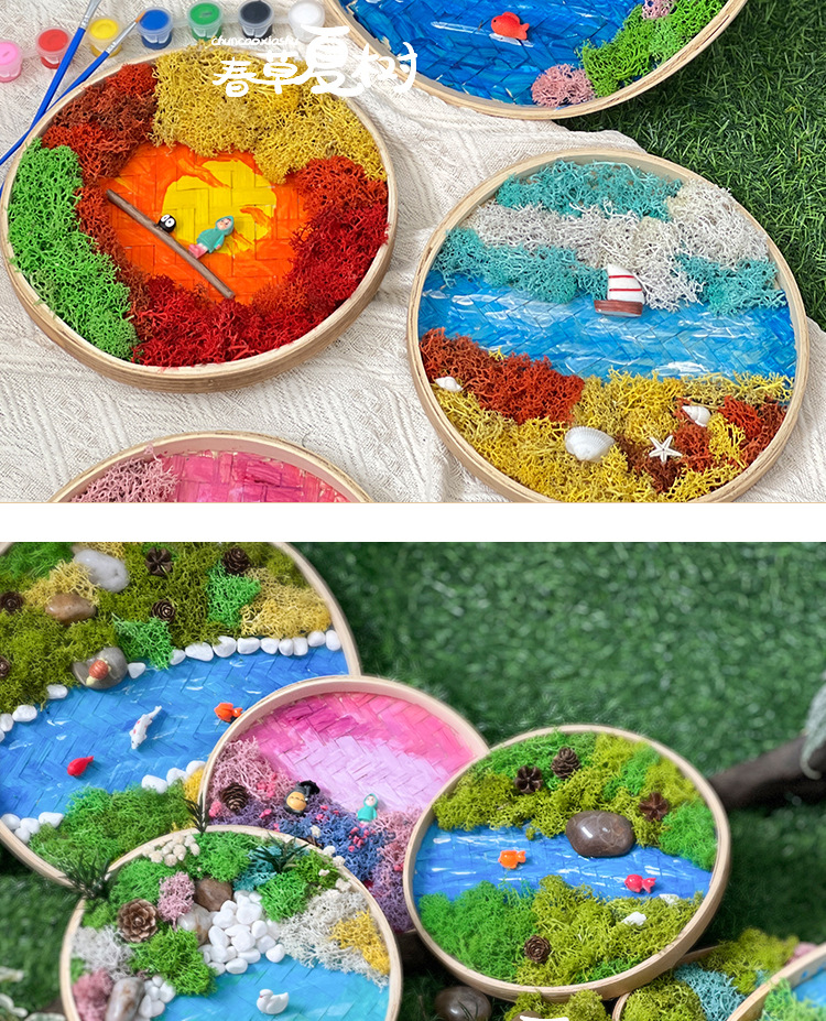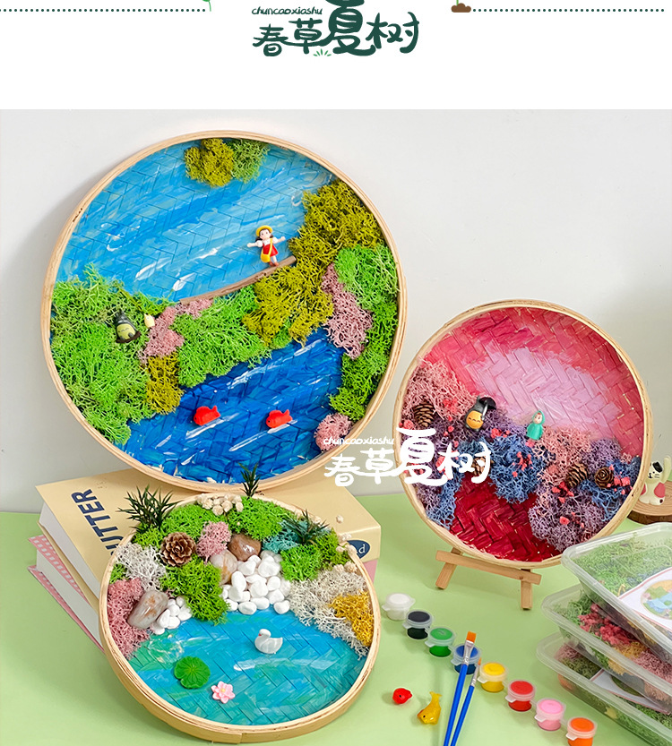 개학 선물, 이끼 그림, DIY 재료, 원형 트레이, 마이크로 조경, 녹색 식물 사진 프레임, 팀 빌딩 활동, 수제 재료스토어 가기
