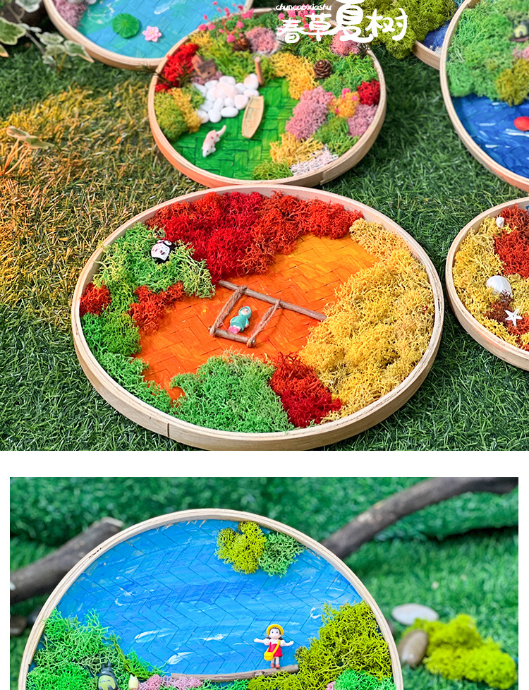 개학 선물, 이끼 그림, DIY 재료, 원형 트레이, 마이크로 조경, 녹색 식물 사진 프레임, 팀 빌딩 활동, 수제 재료
